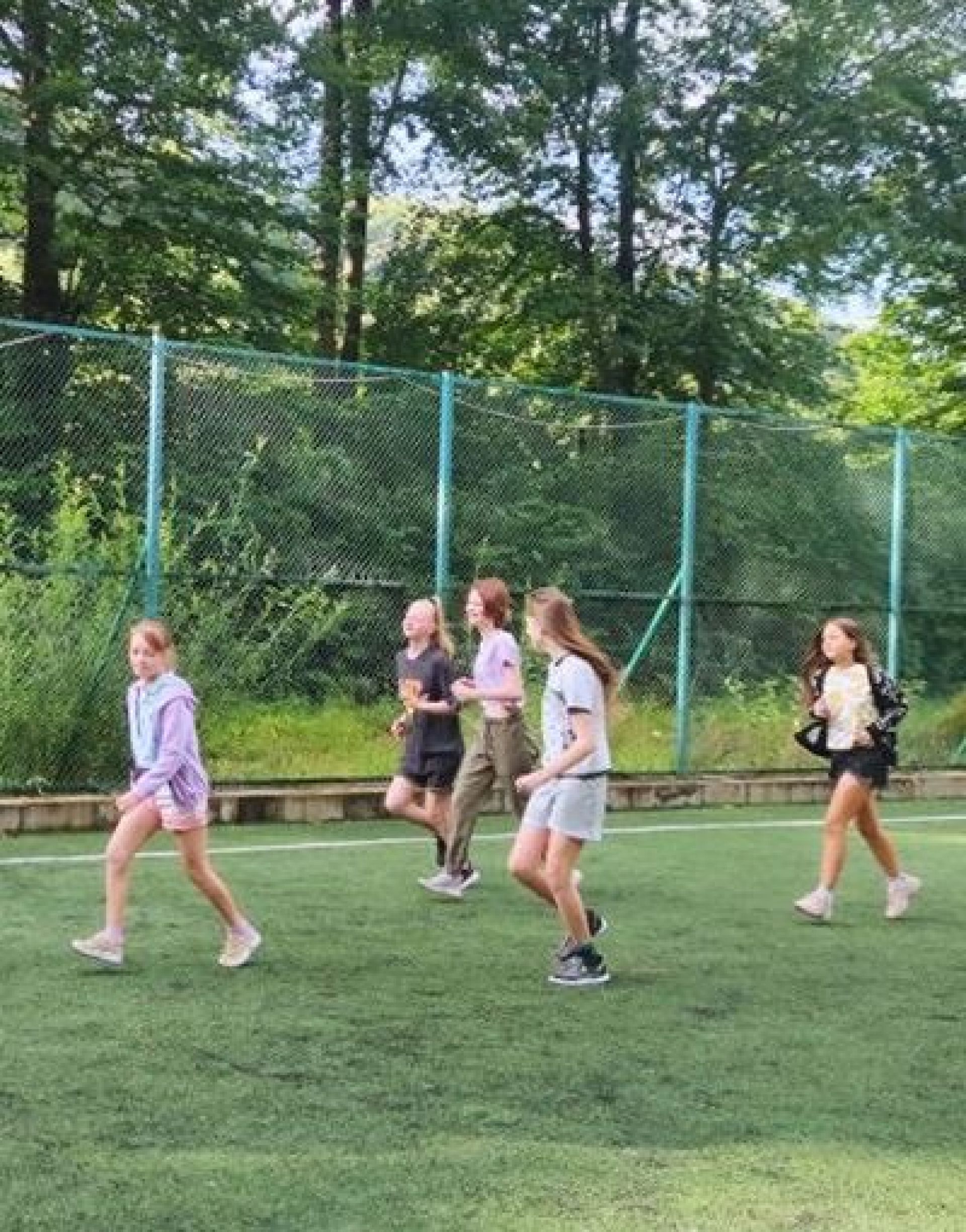 Велика територія закритого типу, укриття на території табору, діти завжди знаходяться під пильним наглядом на свіжому повітрі.