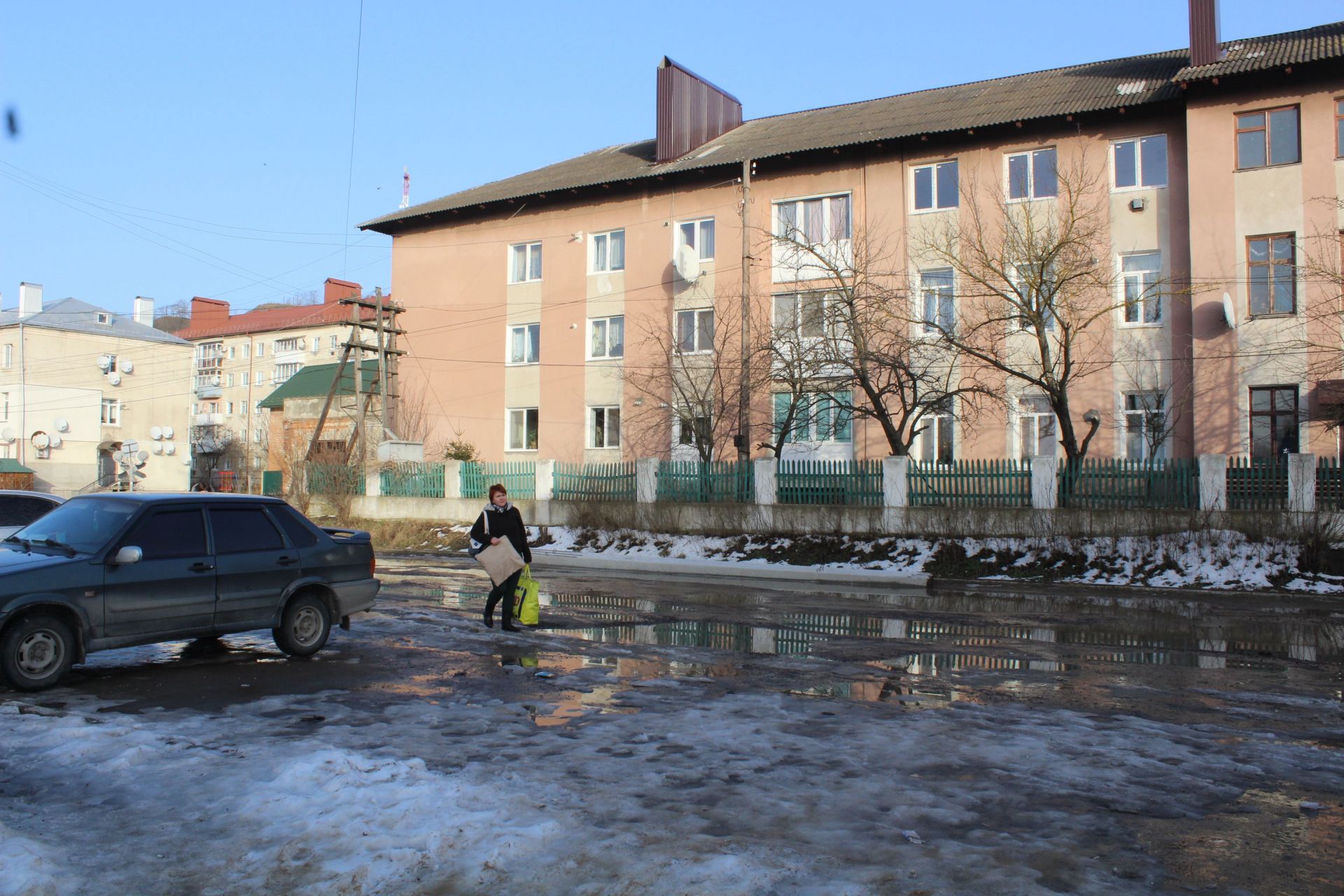 Є у місті є і багатоквартирні будинки: п’яти- та дев’ятиповерхівки. Вони в гарному стані, на відміну від доріг. Про них можна писати багато, адже доріг в місті поза Центром майже немає. Це стосується і доріг у дворах багатоквартирних будинків. Численні вибоїни, ями, а на додачу, талий сніг роблять прогулянку з дитиною чи похід на роботу – випробуванням.