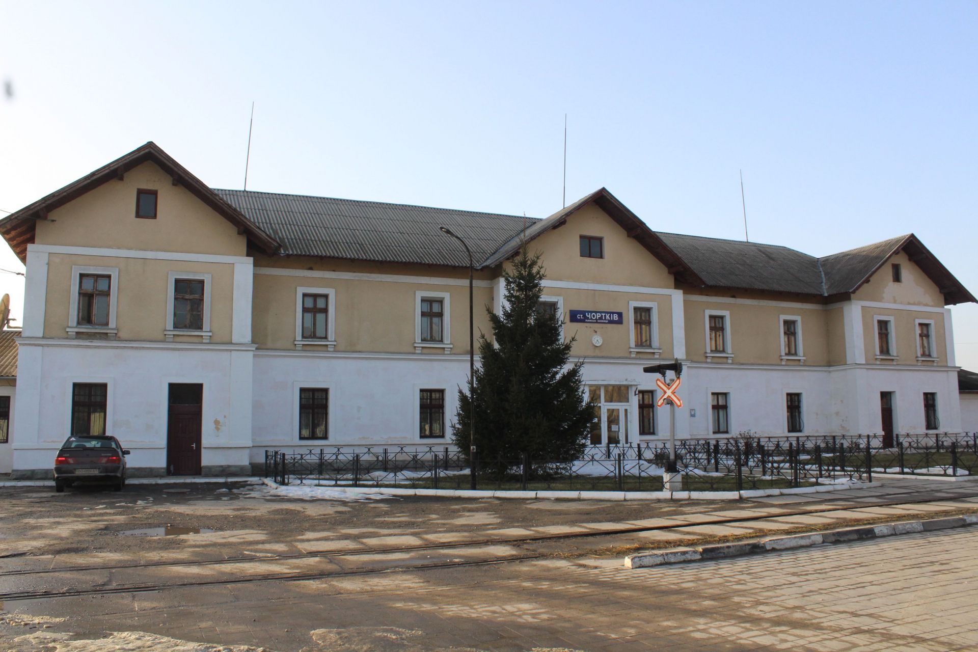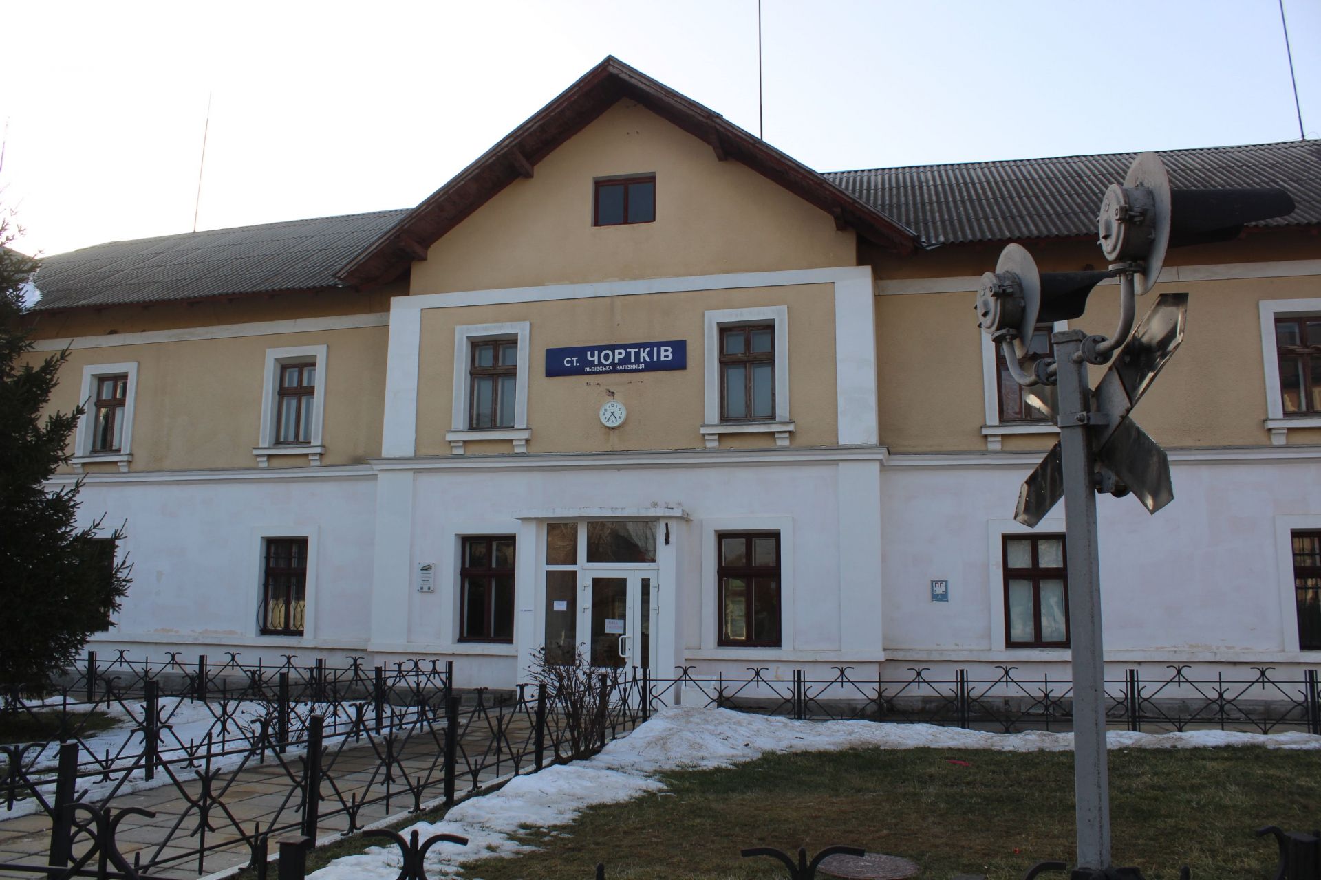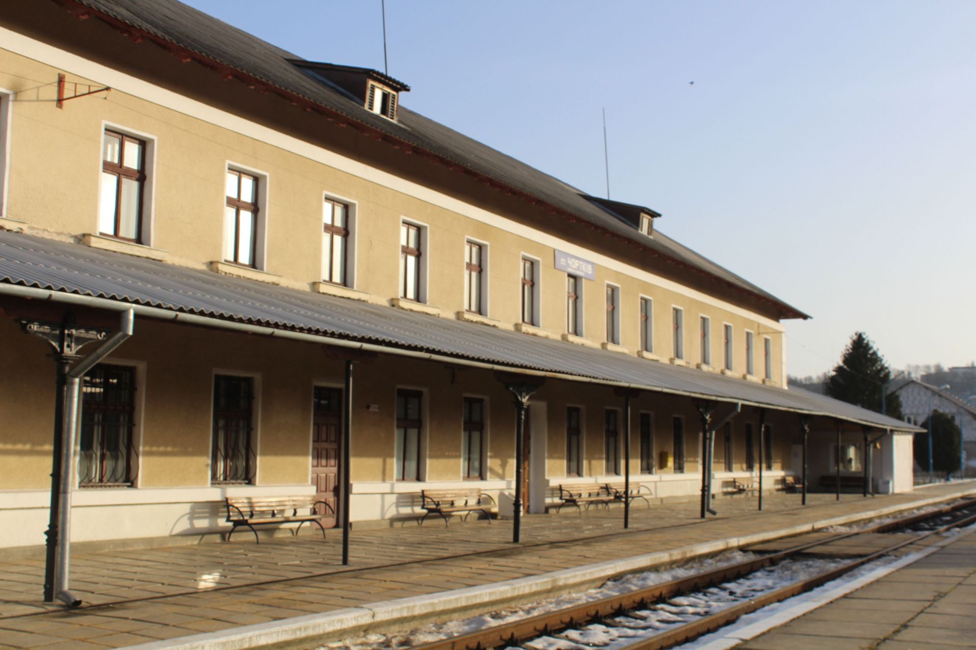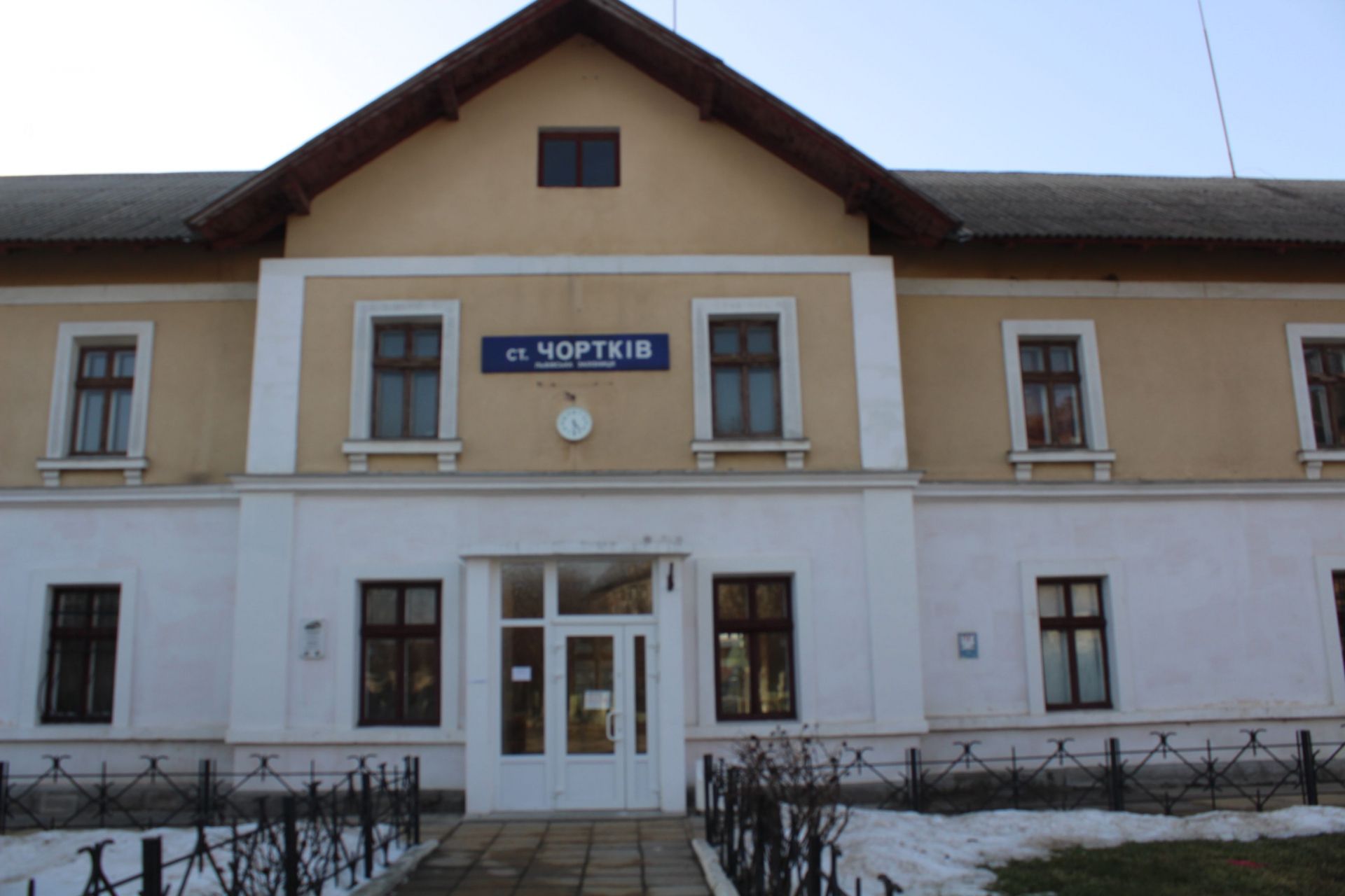 Залізничний вокзал виглядає значно новішим та чистішим, але попитом в чортківчан не користується. Як розповіла нам мешканка цього міста, що живе неподалік залізничного вокзалу, через залізничну станцію курсує лиш один потяг далекого сполучення з Києва до Рахова.