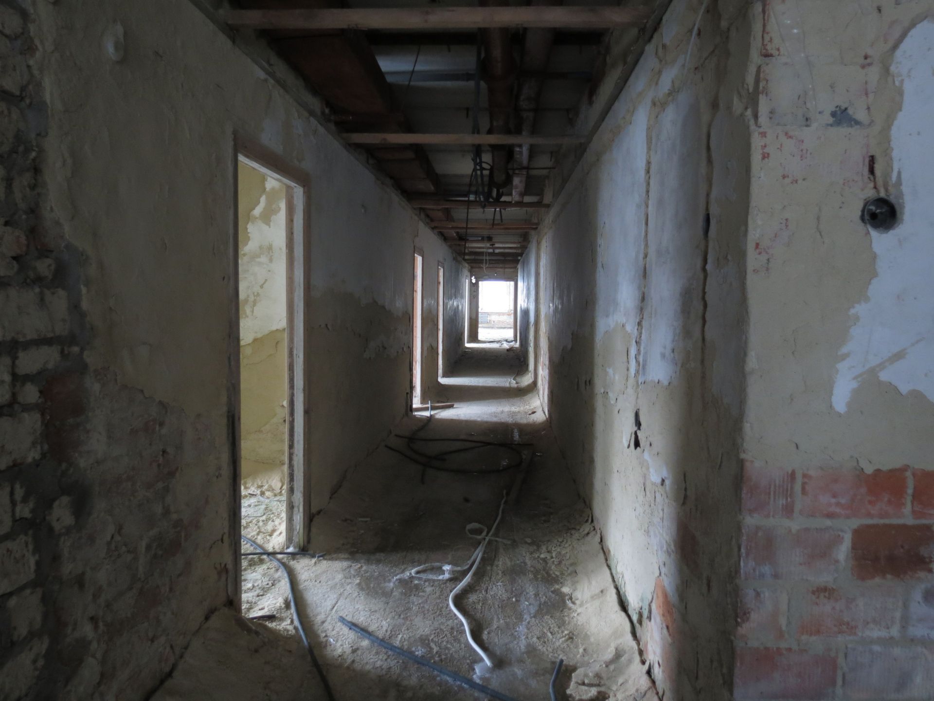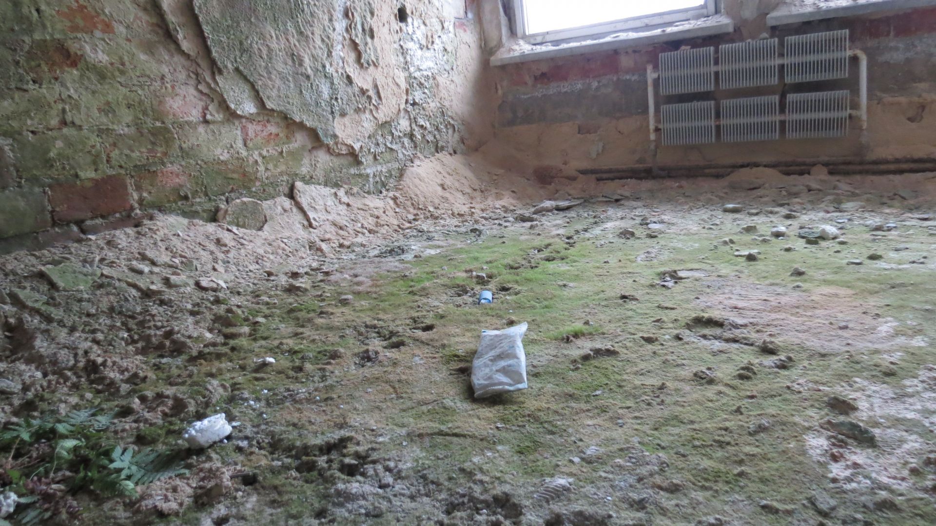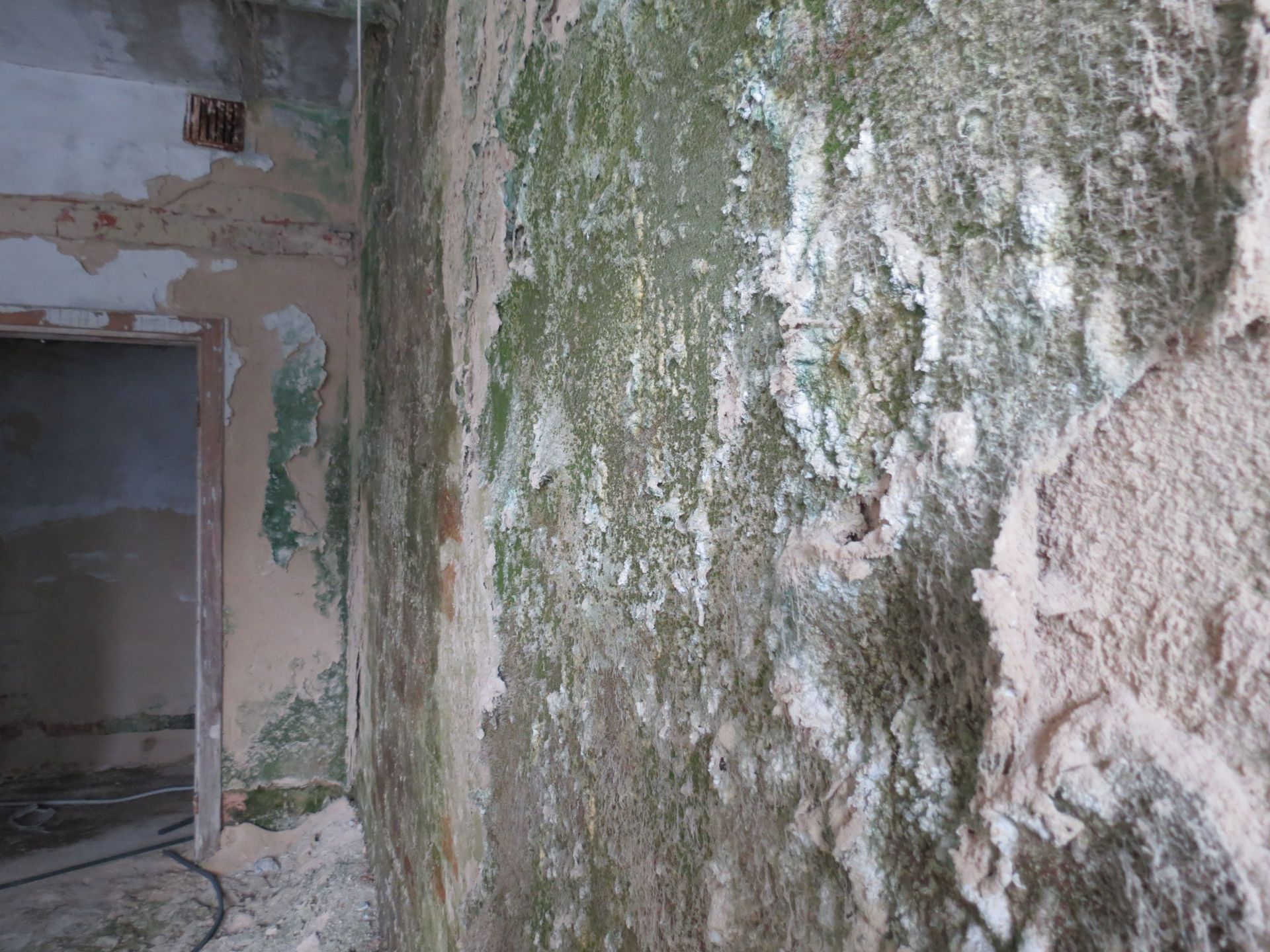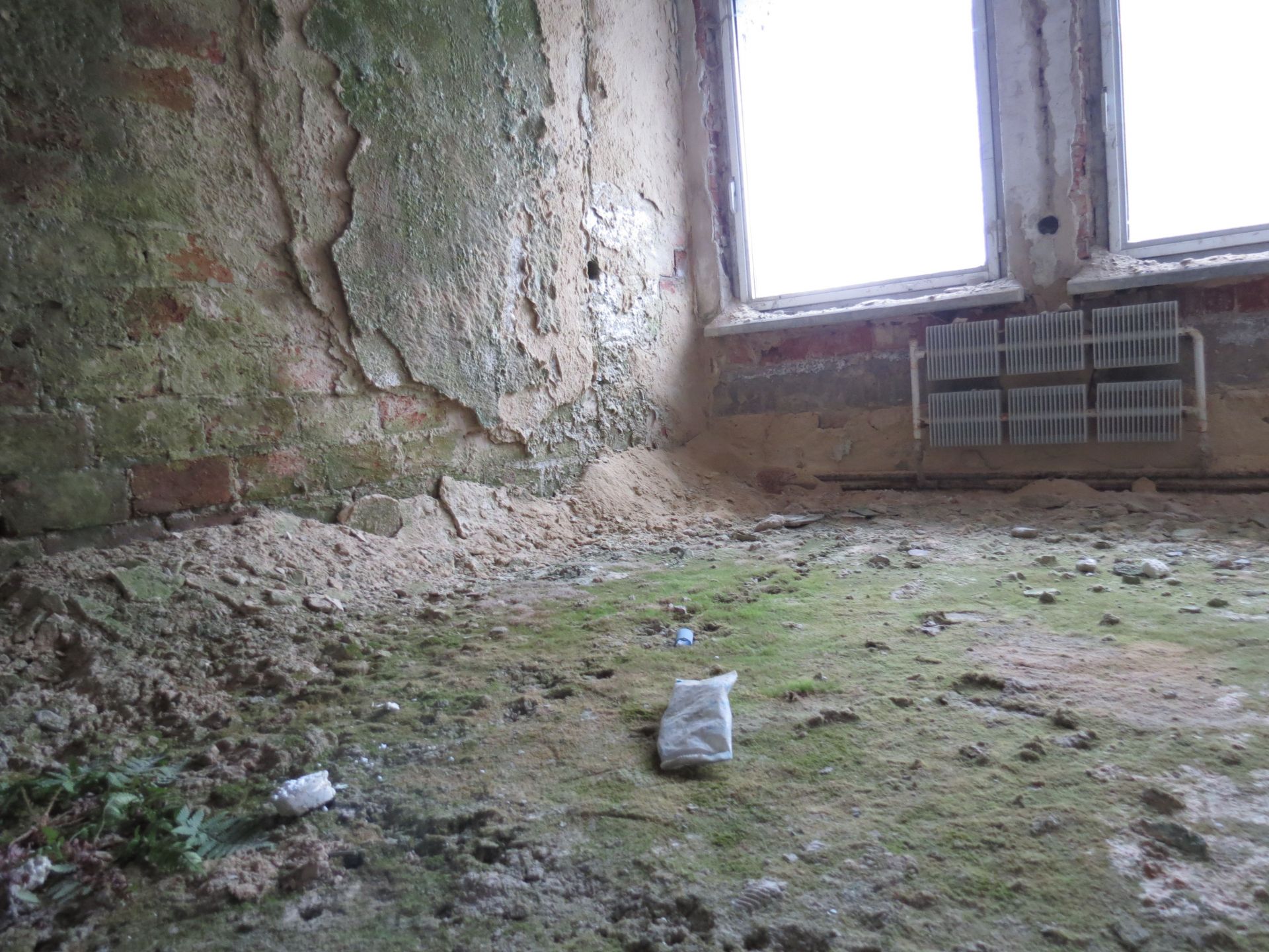 У декількох кімнатах навіть на стелі та підлозі росте мох. Кімнати дуже сирі. Подекуди з вирваними дротами, а не несучі стіни напіврозвалені.