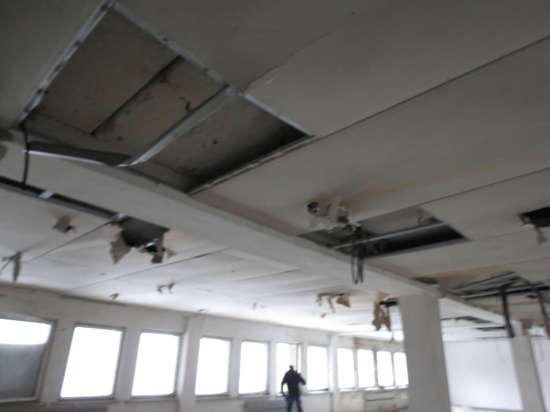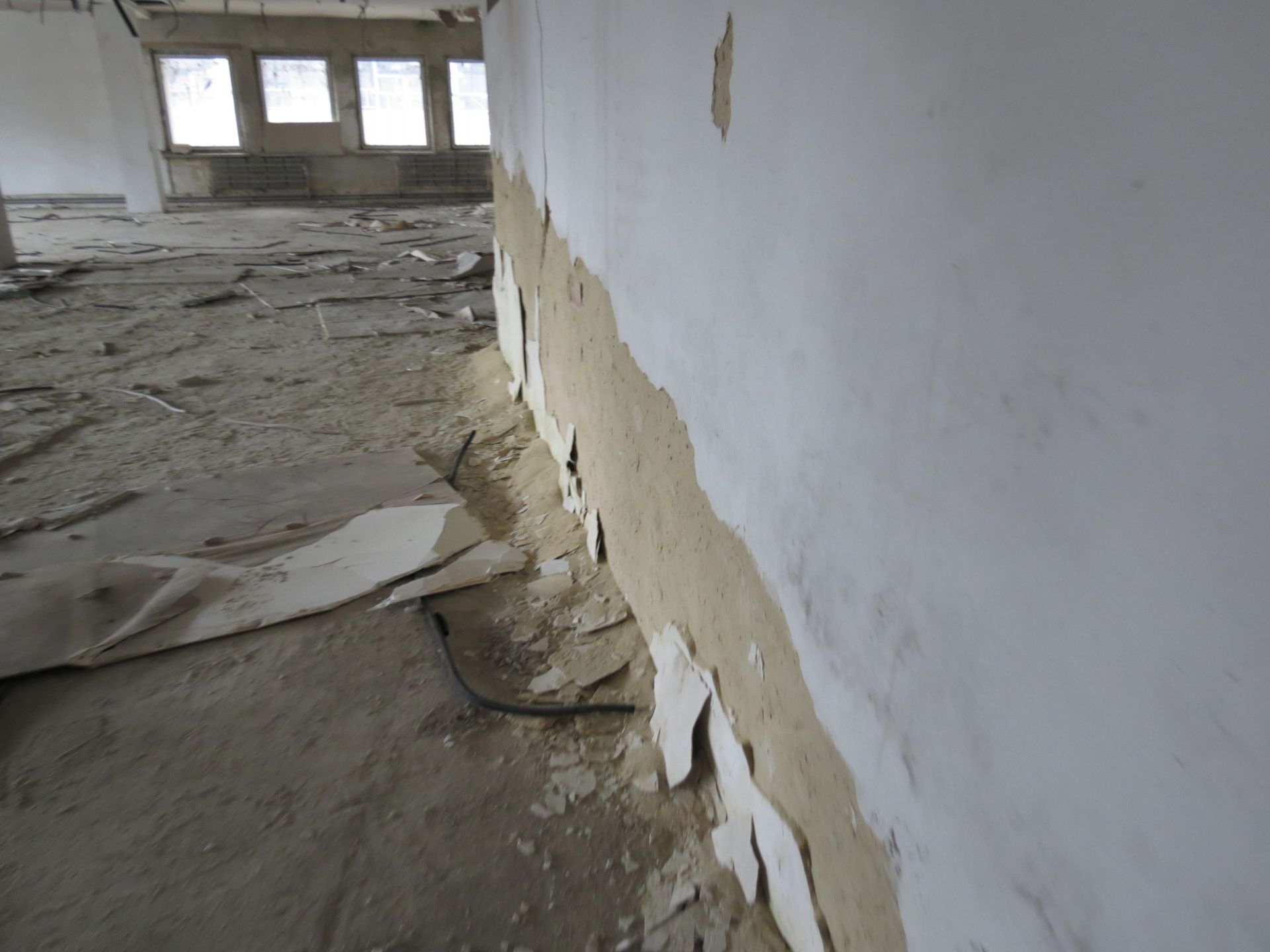 У приміщеннях на третьому та четвертому поверхах ще більше сирості, подекуди зі стелі ллється вода прямо на підлогу. У деяких місцях видно шматки льоду.