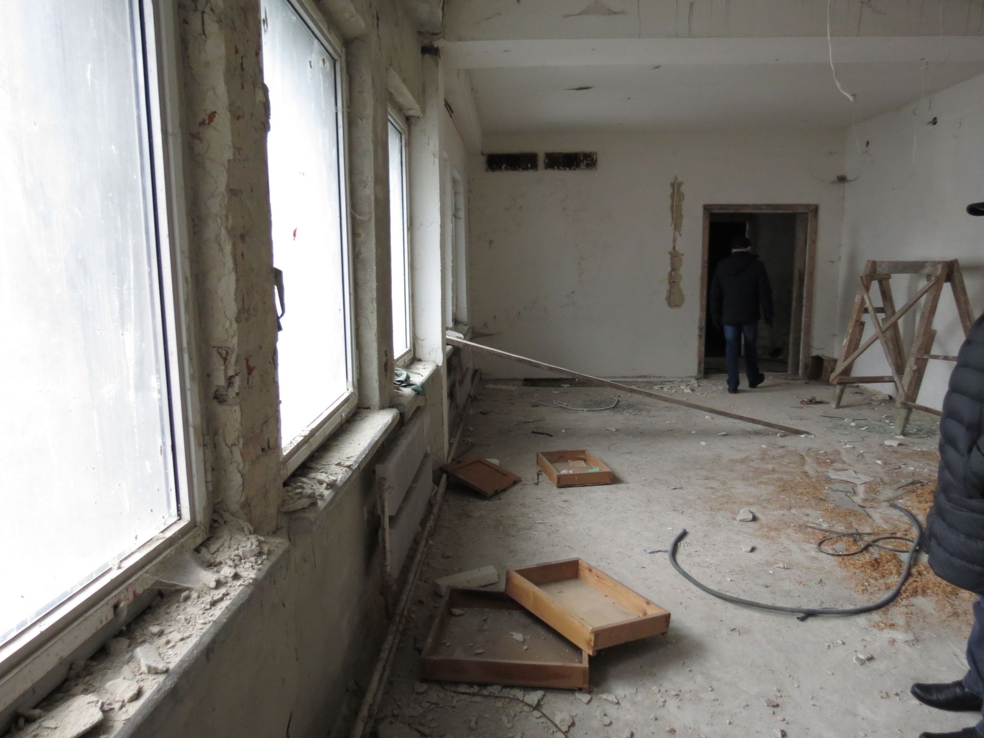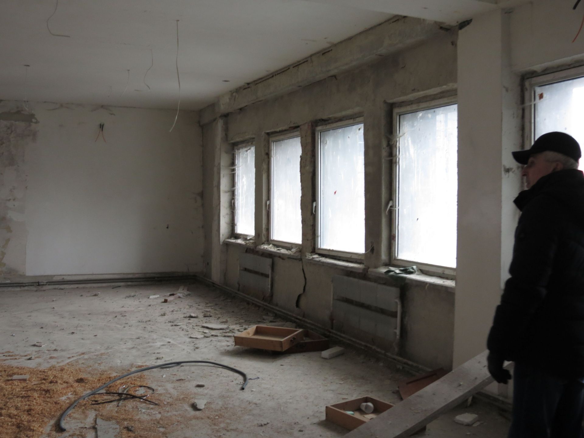 Вранці 7 лютого начальник управління обліку та контролю за використанням комунального майна ТМР Сергій Ковдриш провів невелику екскурсію кімнатами довгобуду та показав реальний стан справ будівлі, яку отримала міська рада.
