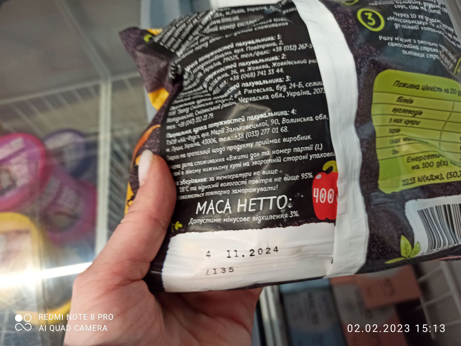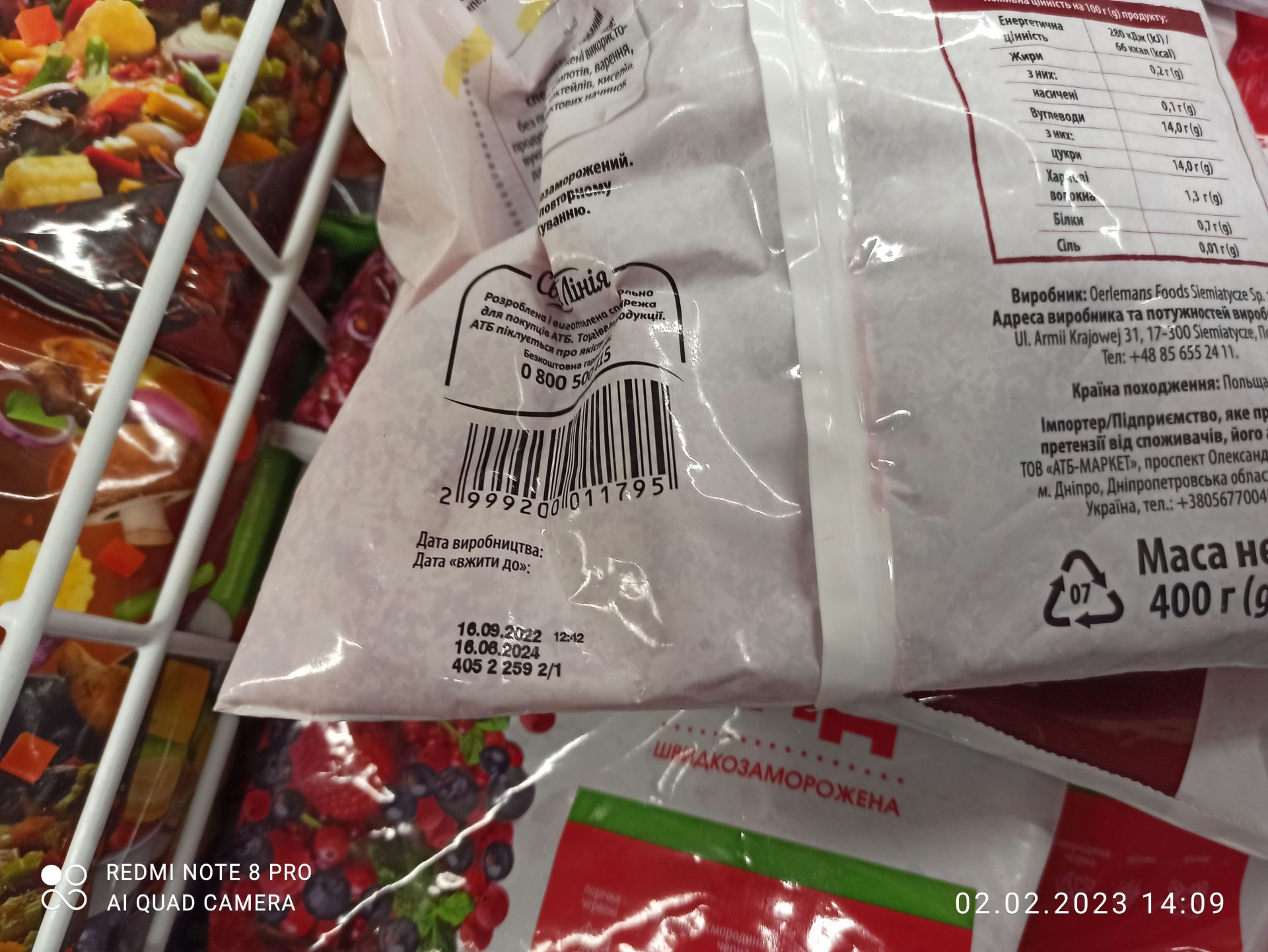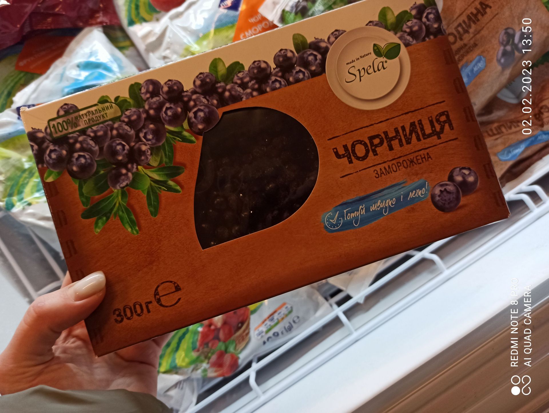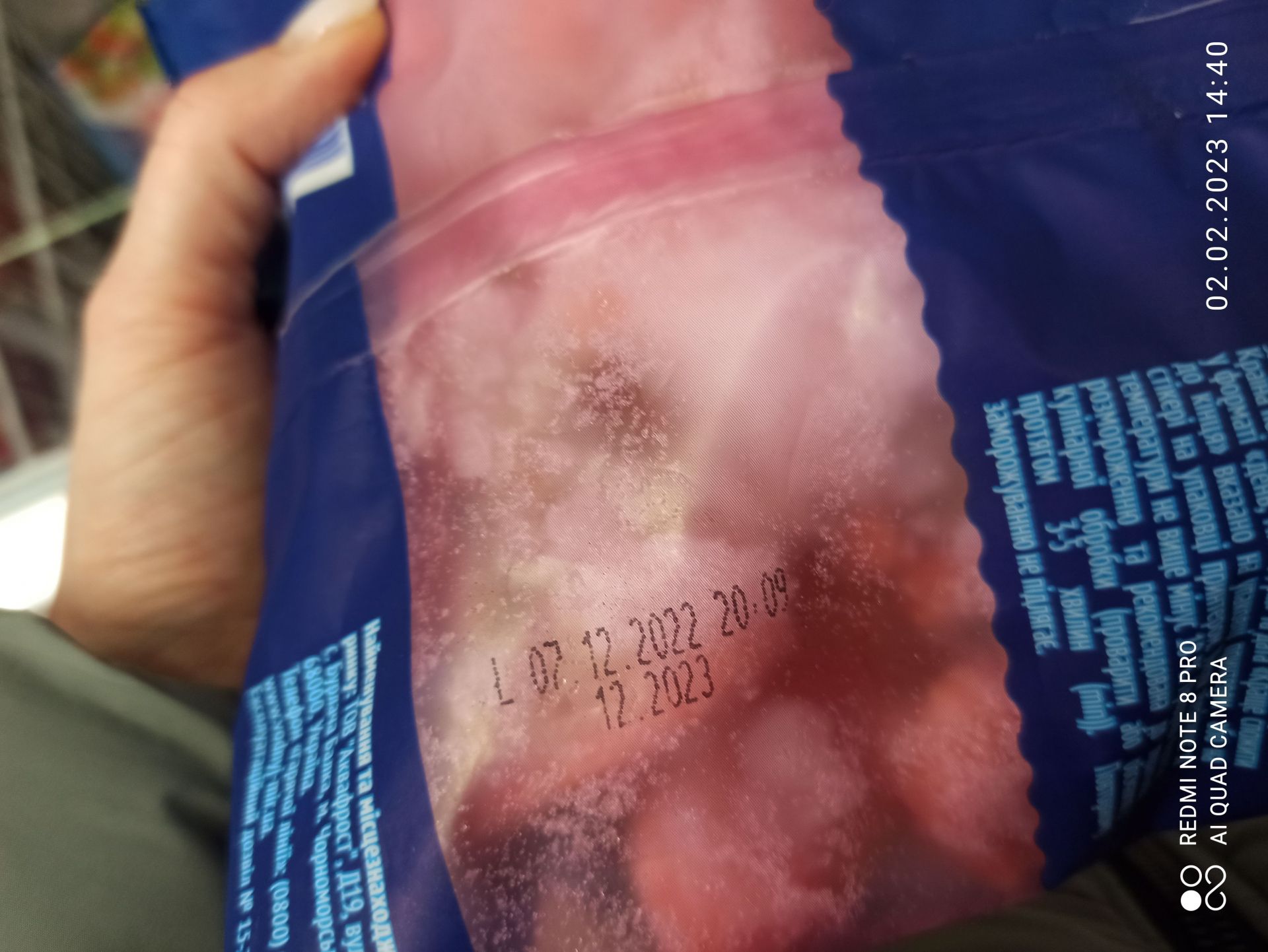 А от із замороженими ягодами проблема. Наприклад, «Вишня без кісточки швидкозаморожена» була напів розмерзла. Ми взяли пачку до рук, і вони залишились мокрими. Теж саме з чорною смородиною, полуницею і журавлиною. При цьому термін придатності ягід цілком нормальний.