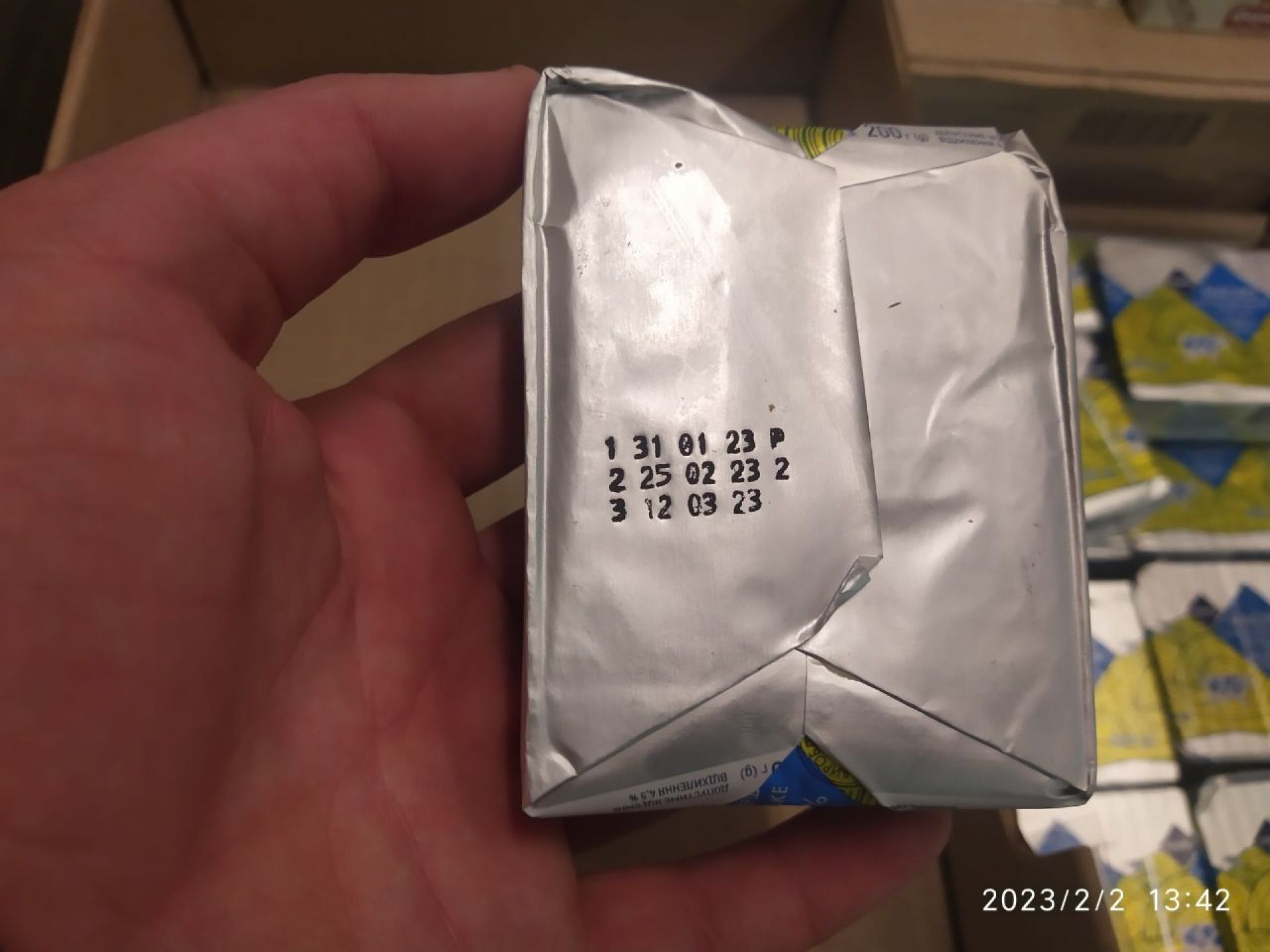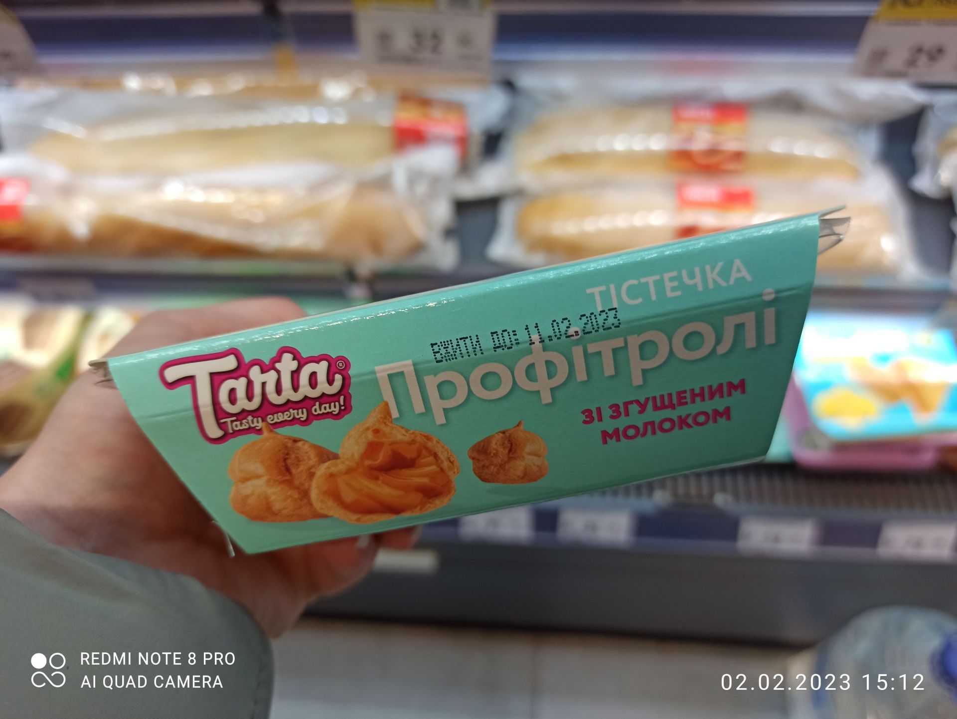 Але ми знайшли у «Рукавичці» протерміновану продукцію. Це кілька упакувань тістечок «Еклер білий». Їхній термін придатності вийшов за день напередодні, тобто 1 лютого 2023 року. Та солодощі досі лежали на полиці і їх звідти не забрали.