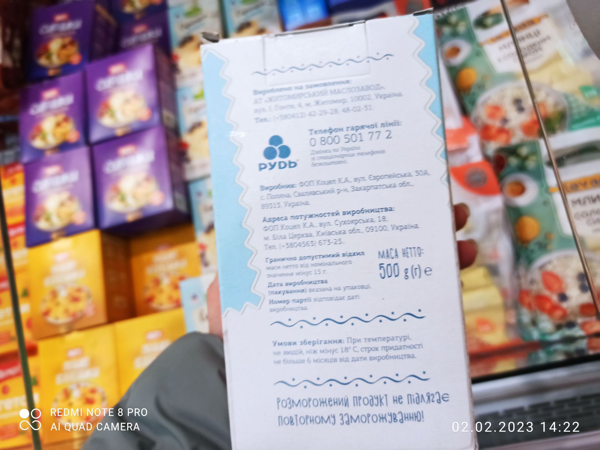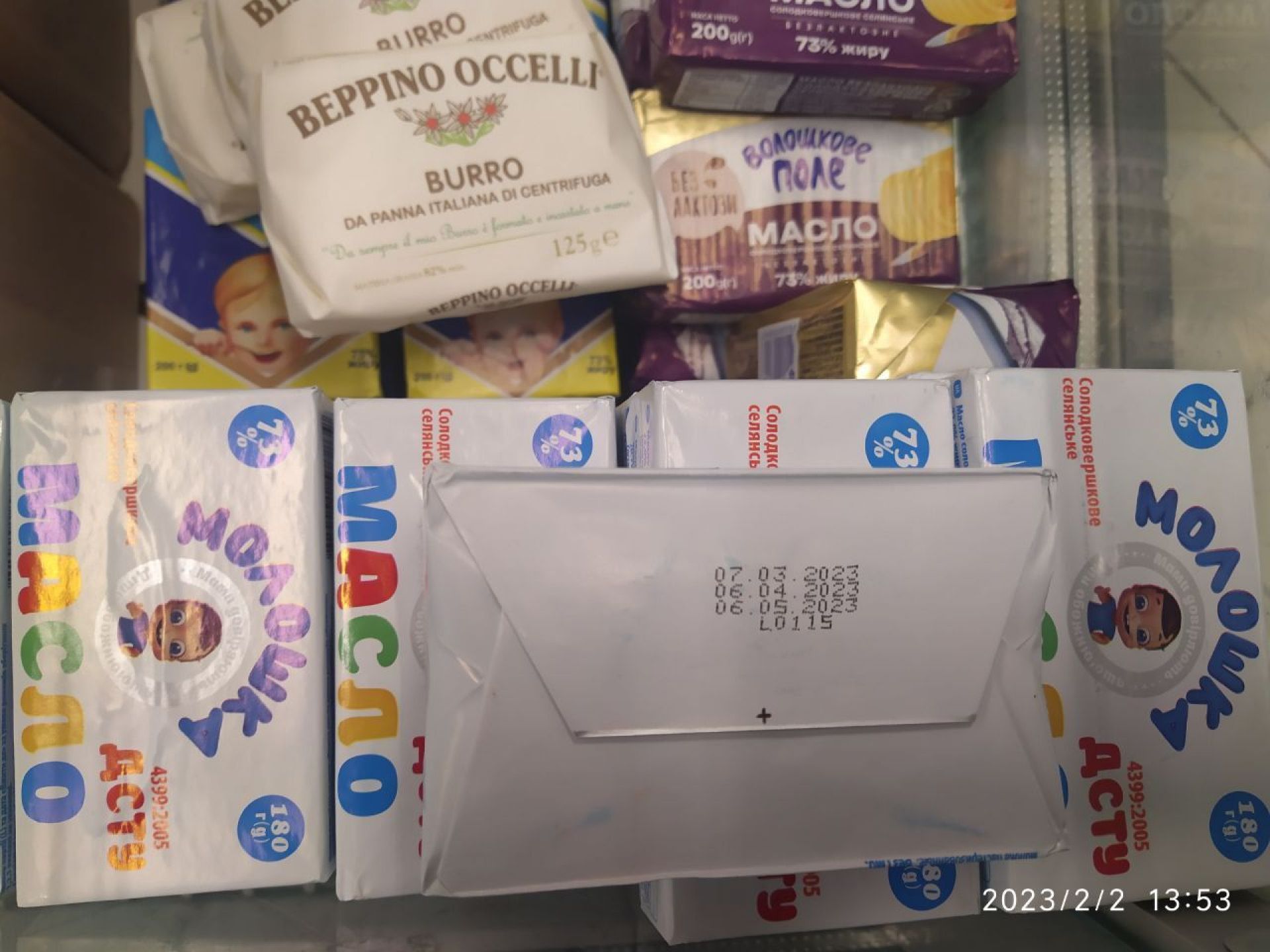 А от з маслом не все так просто. Масло кисловершкове «Селянське», 73% жиру, має три терміни зберігання за різних температур: до 22 грудня 2022 року за температури зберігання від 0 °C до -6 °C включно; до 21 січня 2023 року за температури зберігання -6 °C до -10 °C включно; до 21 квітня 2023 року за температури зберігання від -10 °C до -15 °C включно. Така ж історія і з маслом селянським «Клуб сиру», що має 73% жиру. Терміни придатності такі: 16.12.2022; 15.01.2023; 15.04.2023. Чи за належної температури зберігали цей молочний продукт – нам невідомо.