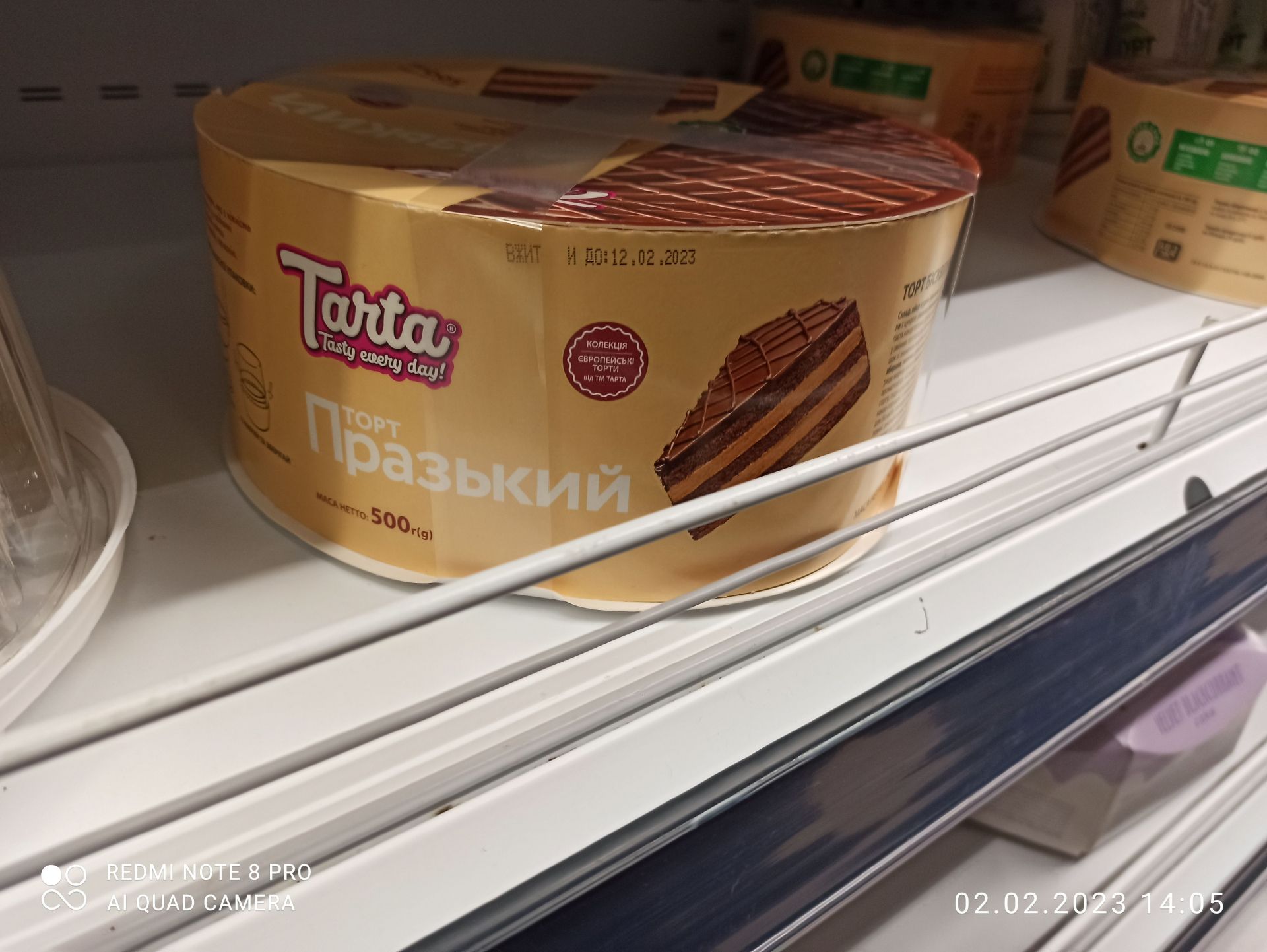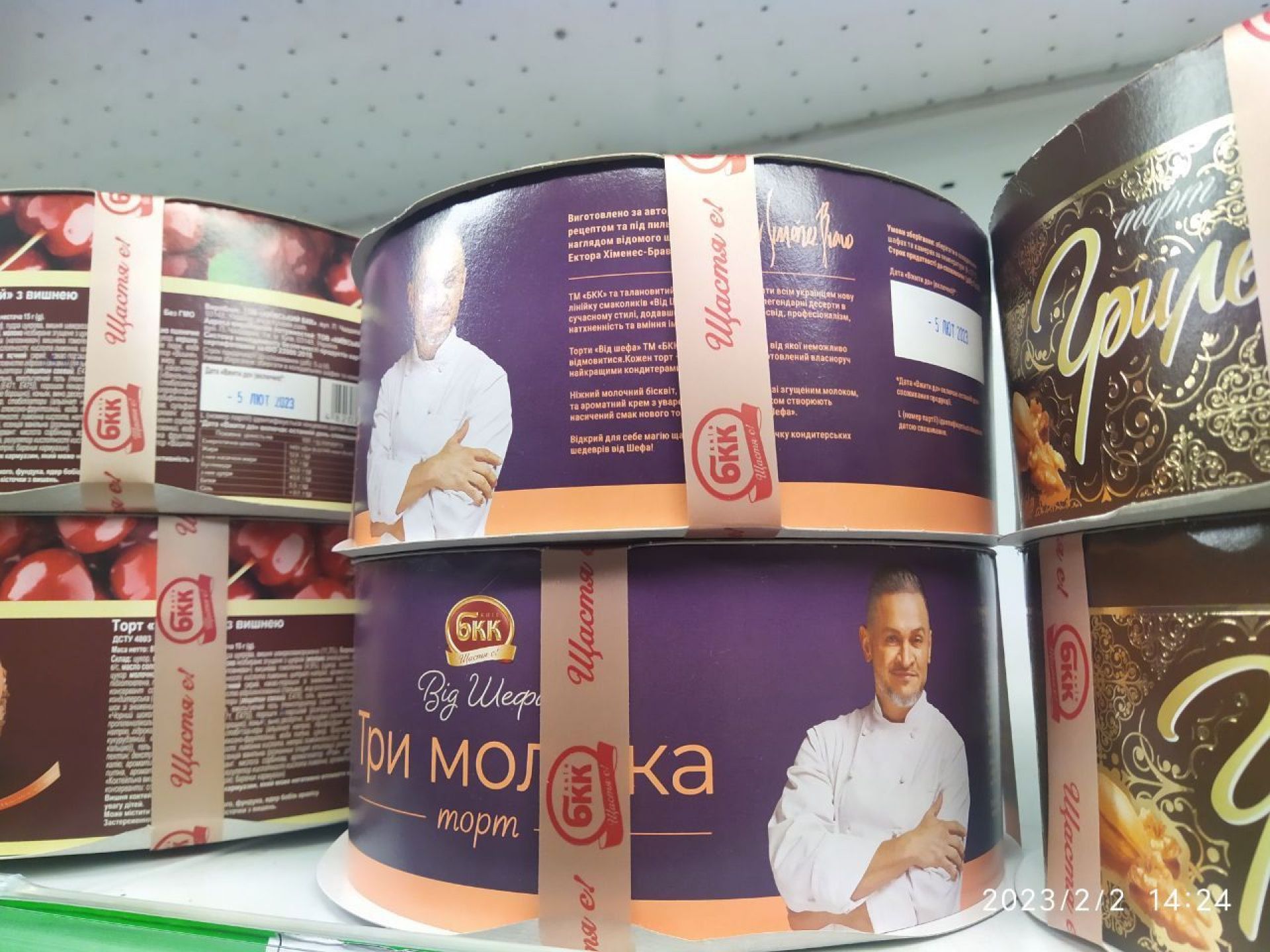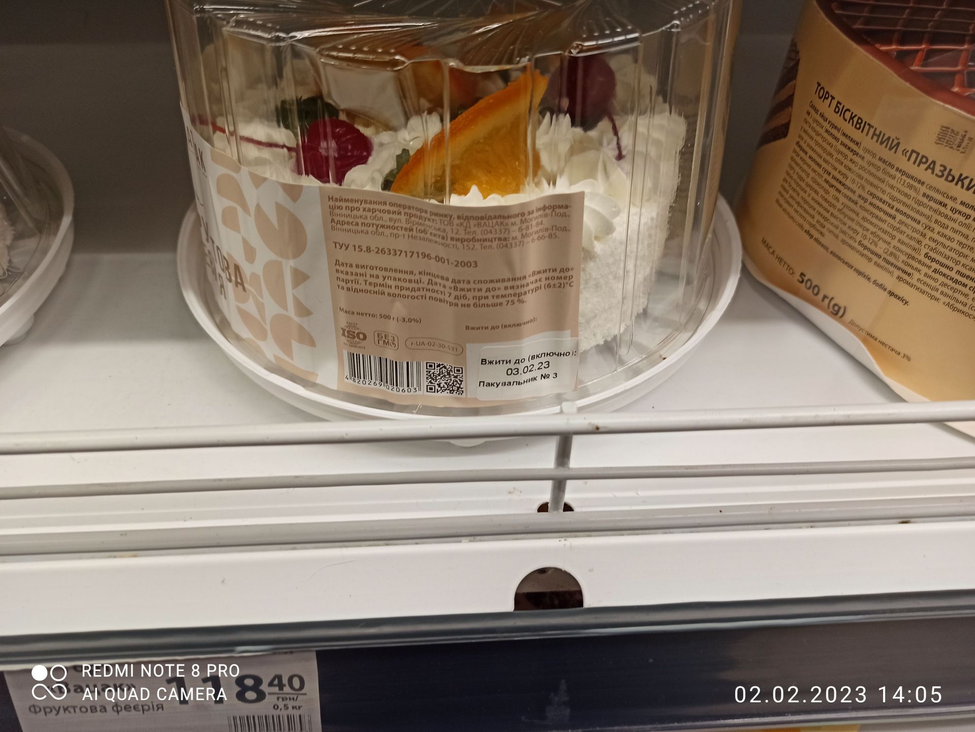 Ще ми перевірили стан солодких виробів у холодильнику (торти, тістечка, еклери). Термін придатності тістечок «Еклери французькі» і тістечок «Заварні з кремом» від ТОВ «КИЇВСЬКИЙ БКК» до 3 лютого (на момент перевірки все свіже). Торти від ТОВ «КИЇВСЬКИЙ БКК» «Три молока» та «Празький» з вишнею, придатні до 5 лютого. Тож порушень ми не побачили.