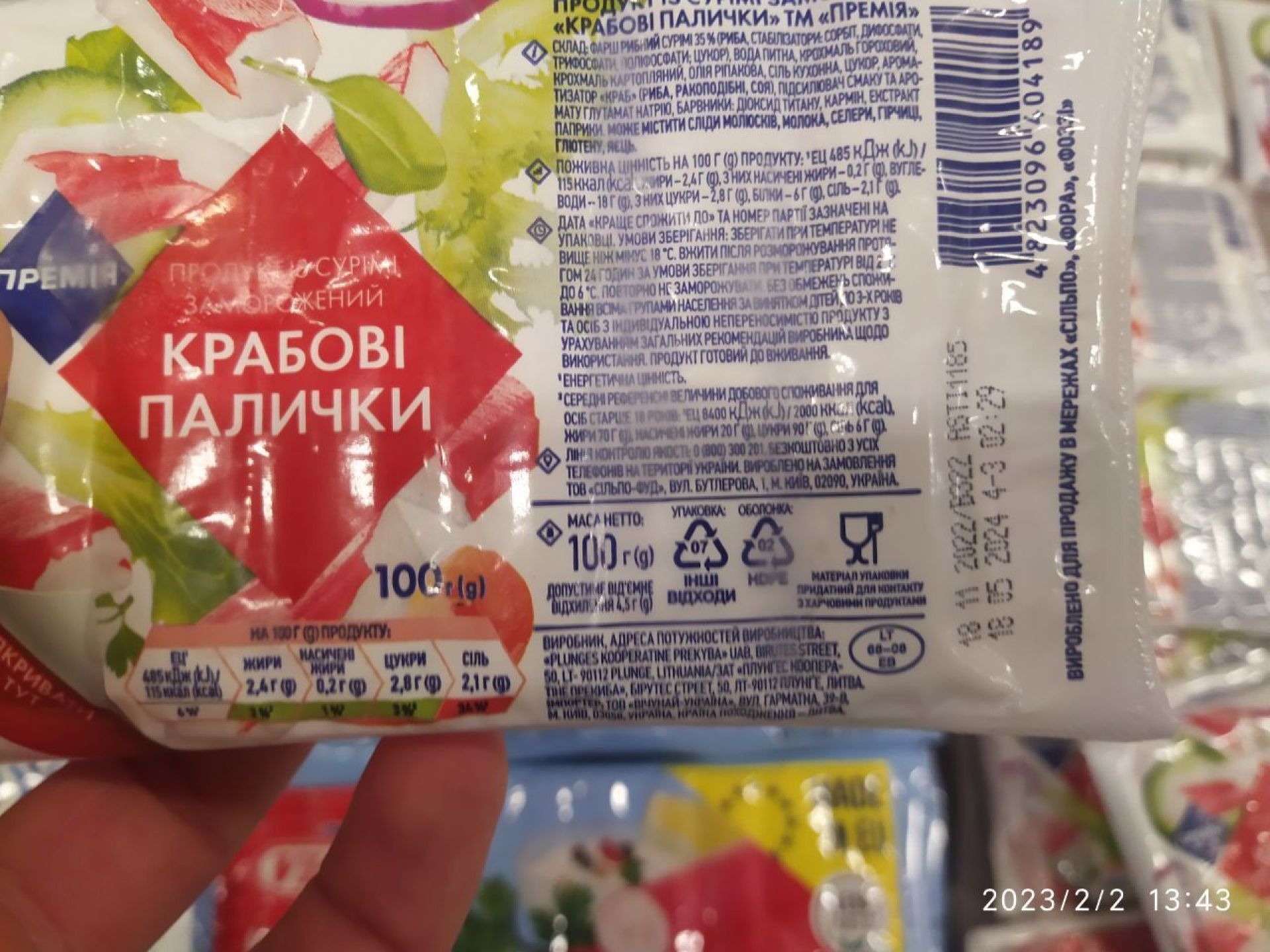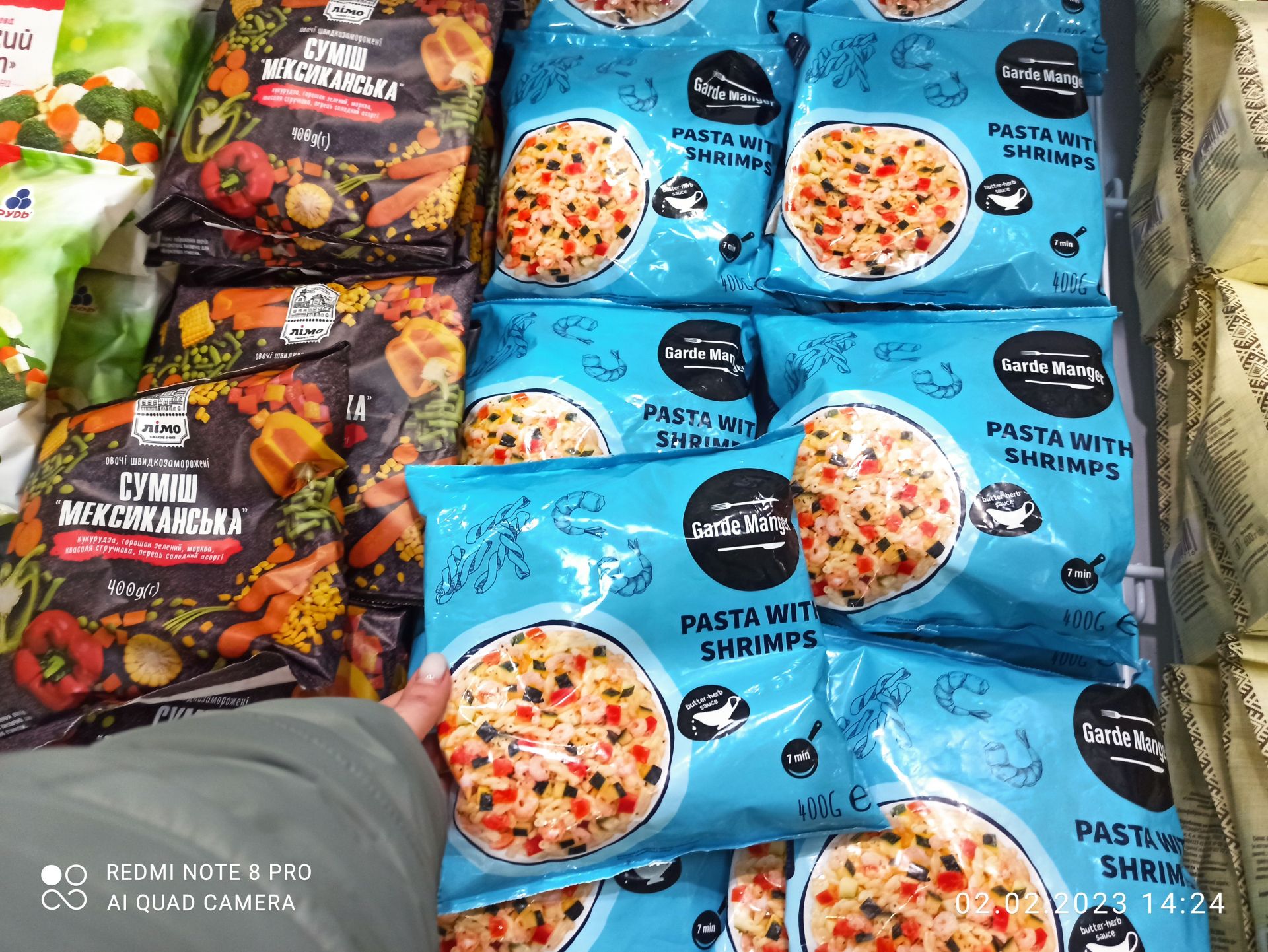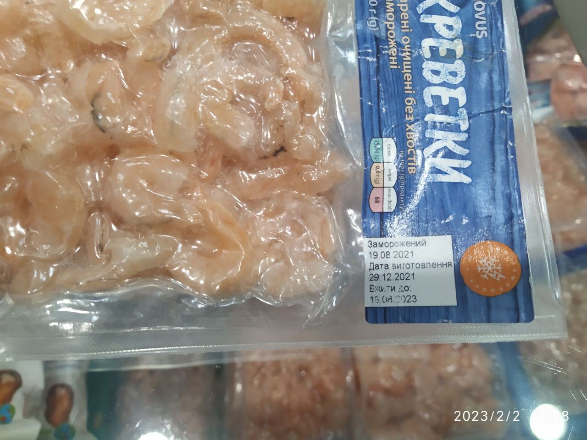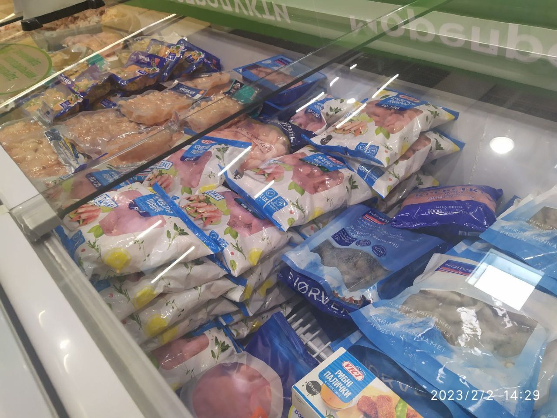 Рибні продукти (рибні палички, креветки, крабові палички, мідії, філе, цілі шматочки риби) теж не протерміновані, замерзлі й виглядають акуратно.