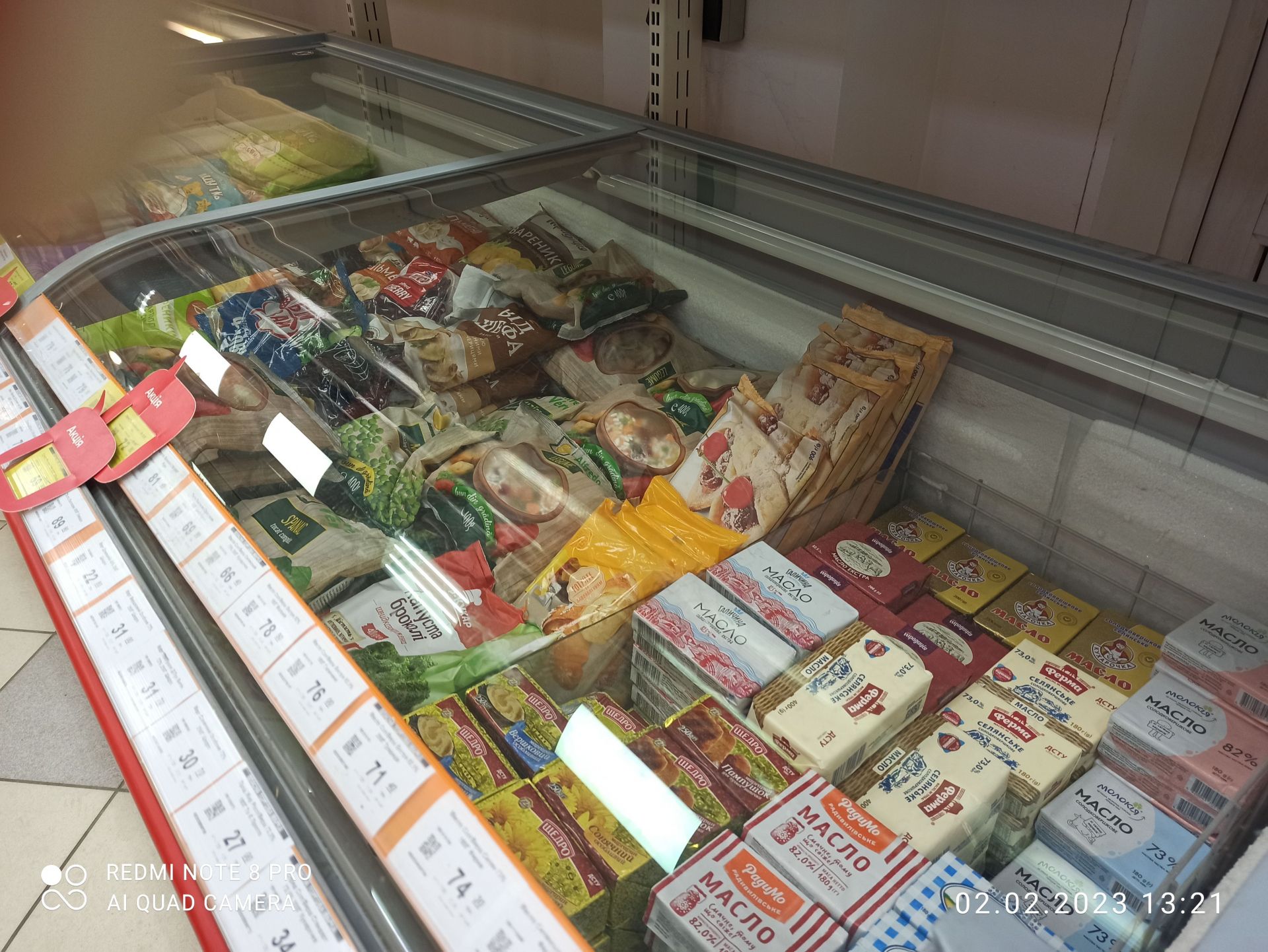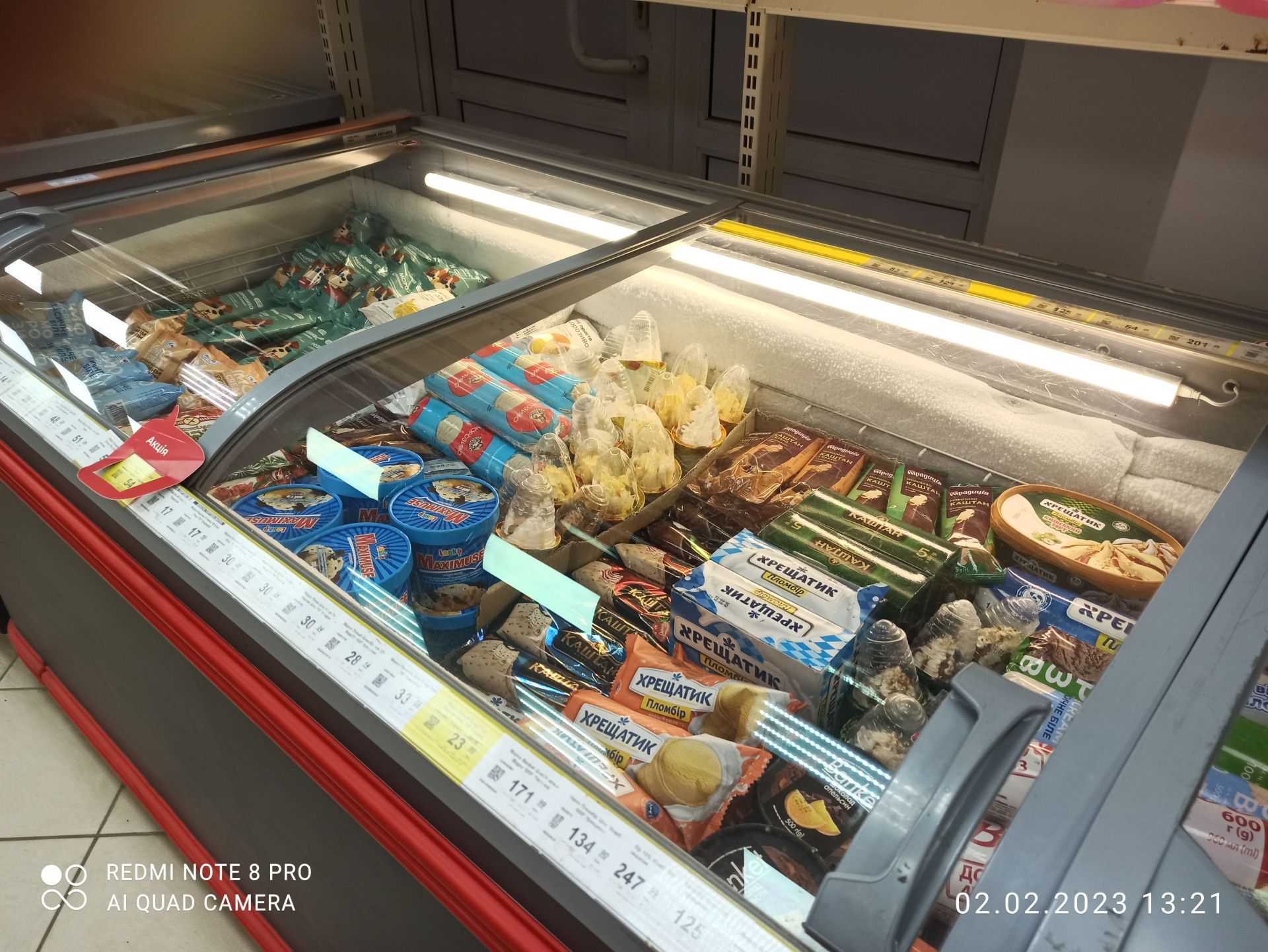 У магазині було дуже мало замороженої продукції – всього одна вітрина, де лежало трохи масла, кілька пачок овочевих сумішей і морозиво. Асортимент невеликий. На стінках холодильника багато «льоду», він повноцінно працює. Видно, що продукція тут немає ознак розмороження.