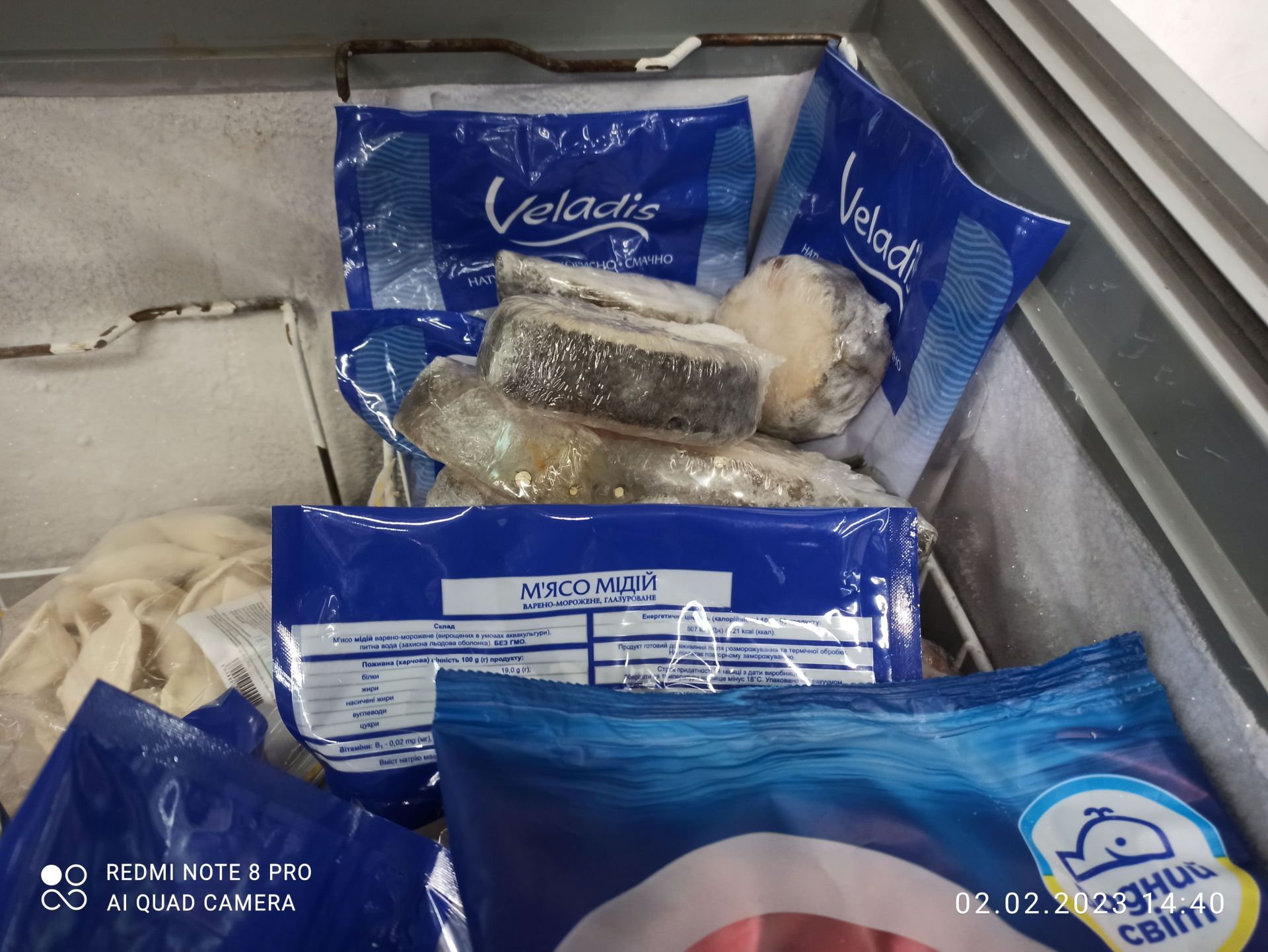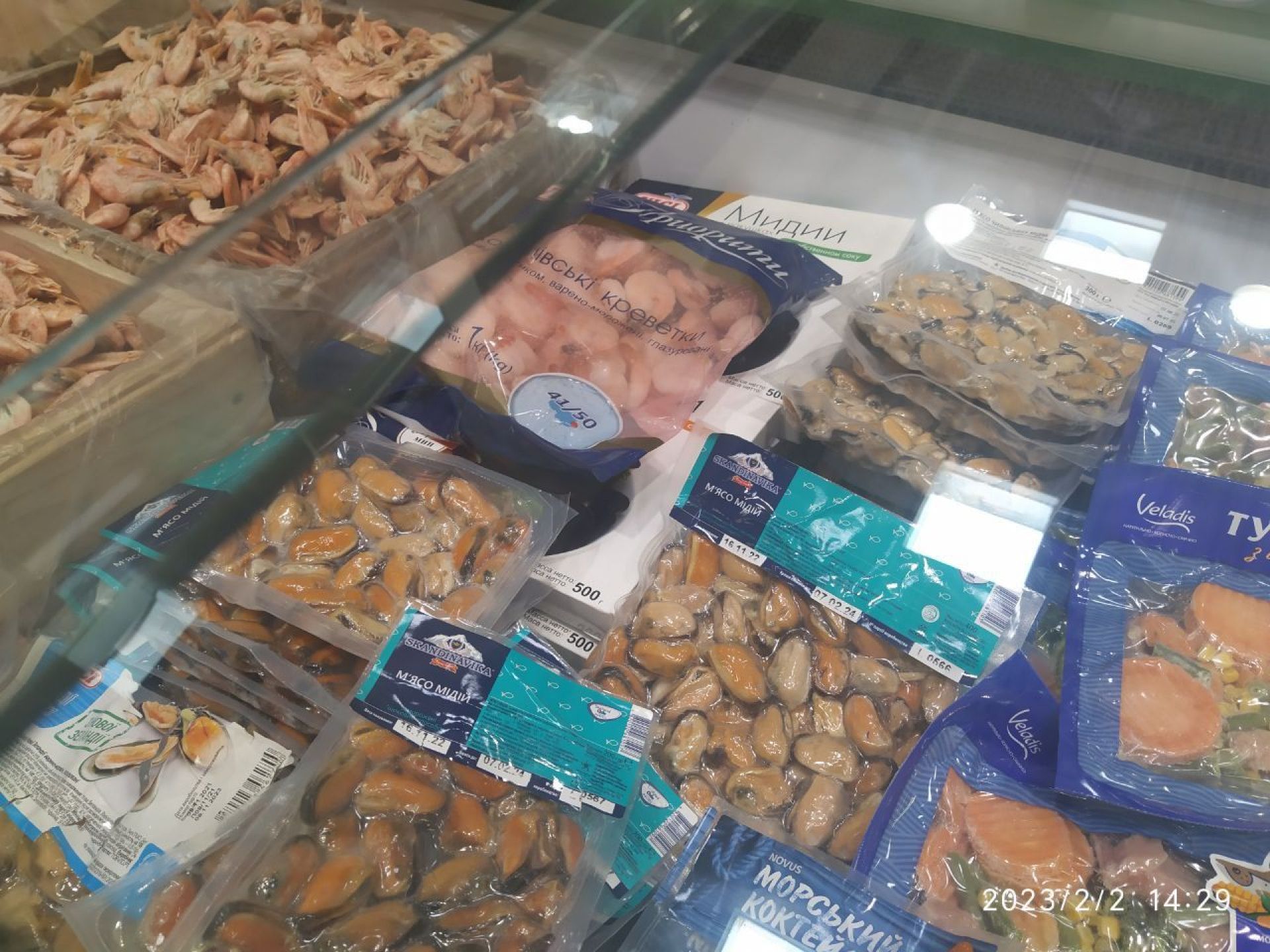 Також перевірили стан заморожених морепродуктів – крабових і рибних паличок, мідій та креветок. Ці товари виглядали нормально.