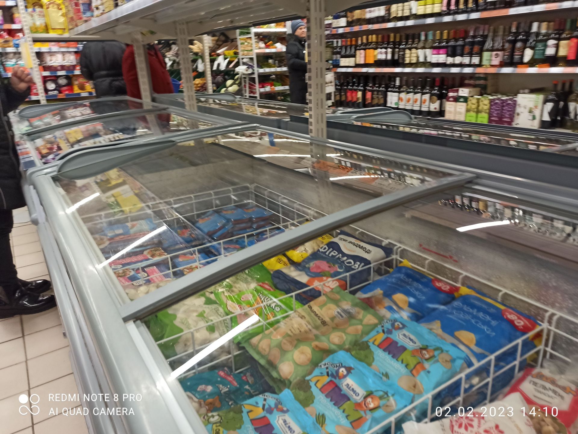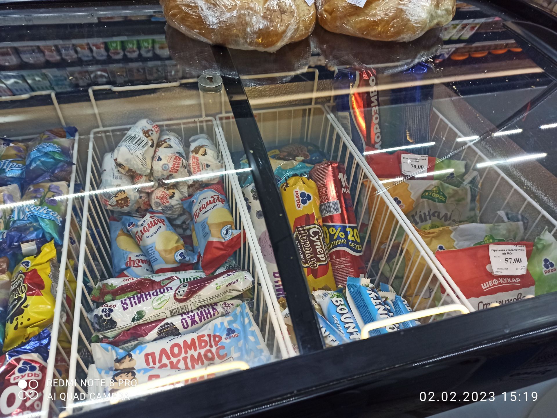Деякі дверцята через товстий шар льоду навіть не відчинялись. З термінами придатності на овочах все в нормі, але якщо взяти до рук окремі упаковки, відчуваєш, що всередині є лід, намерзлий на складниках. Та й самі упакування виглядають не дуже.