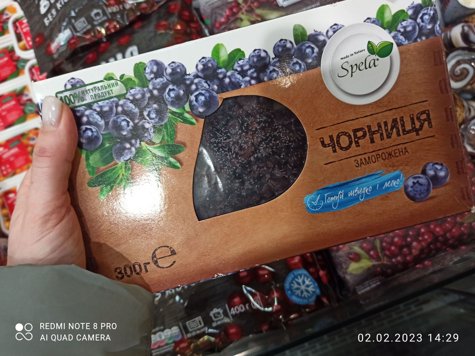 Заморожені ягоди, швидше всього, теж танули. Сліди від ягід залишились на упакуваннях. Це помітно на 300-грамовій «Чорниці замороженій». Але товари мають нормальний термін придатності.