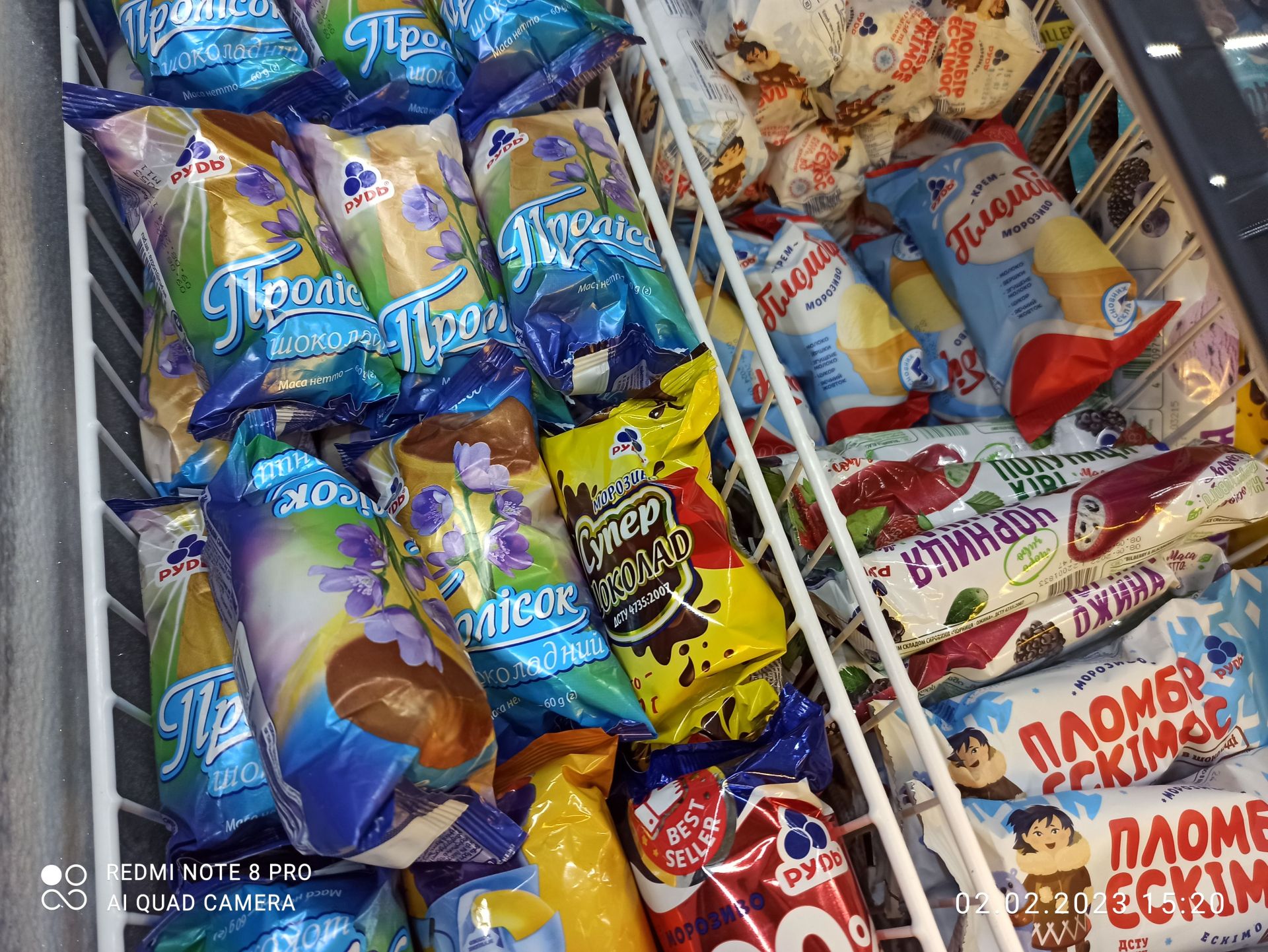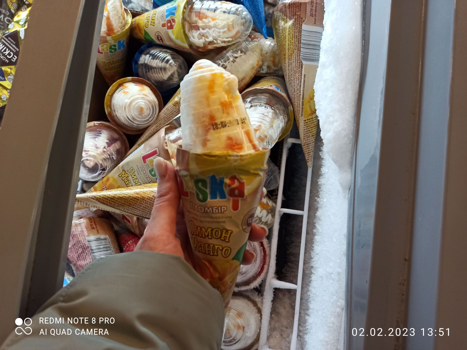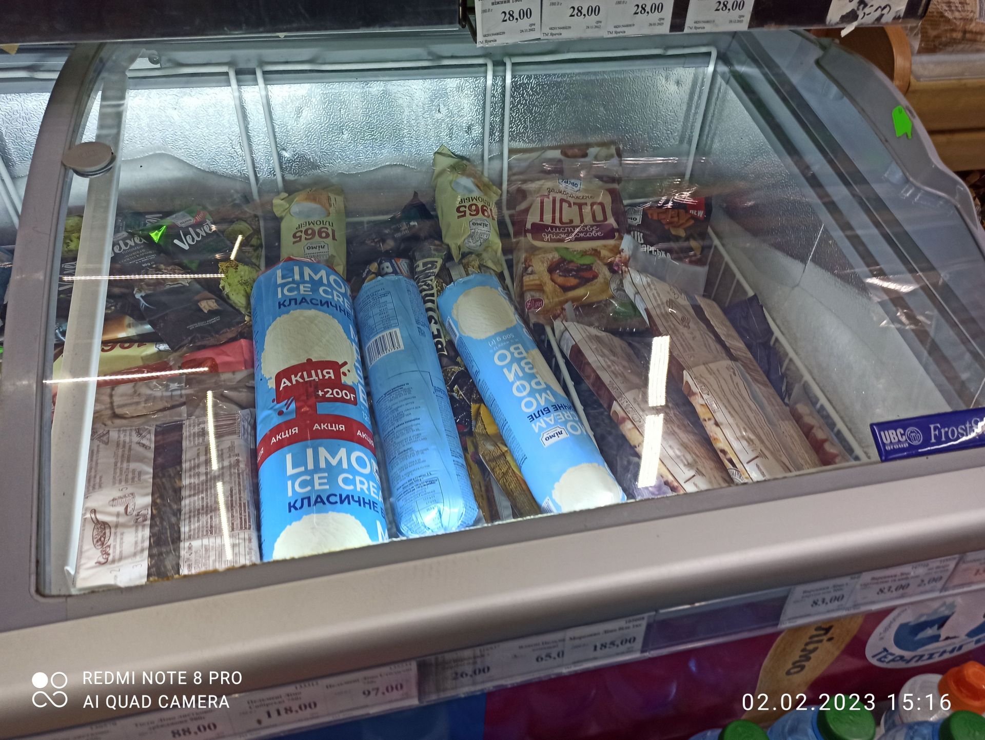 Натомість морозиво у блоках і «циліндрах», яке лежало в сусідньому холодильнику, виглядало добре.