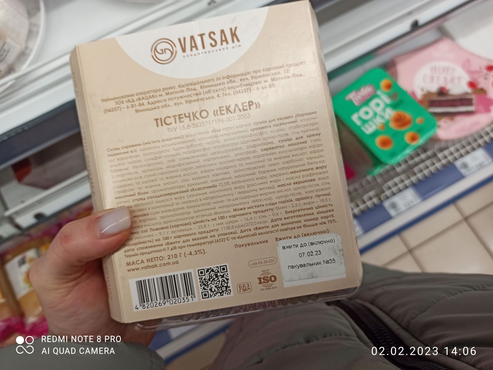 Vitalii SurmatiukАвтор, а прокоментуйте, будь ласка, такий момент: чому на упаковці еклеру написано, що зазначена дата виготовлення, яку ви прочитали як дату кінцевого споживання? -