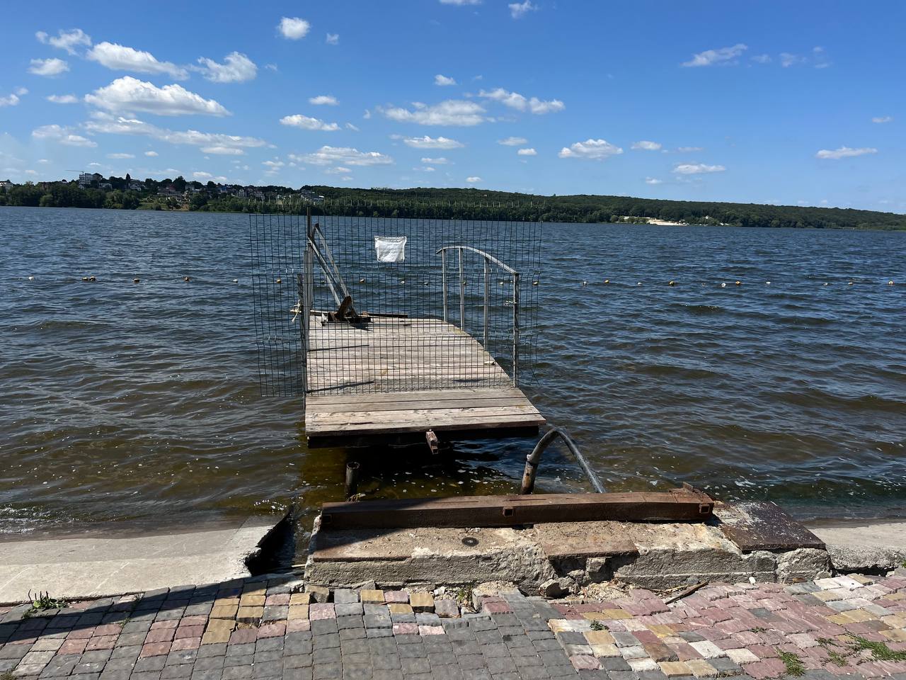 Аварійний причал продовжують демонтувати. Наразі доступ до нього закрили металевою сіткою. А також залишили попереджувальну листівку.