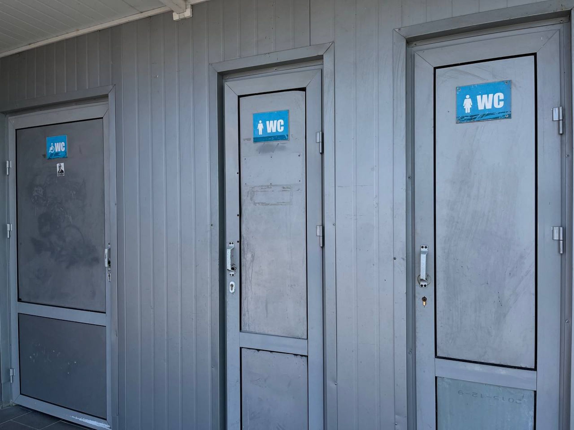 У вбиральнях брудно та відчувається їдкий запах хлору. Унітази та раковини працюють. Є вода, а ось світло, мило та туалетний папір відсутні. А ось вбиральня для людей з інвалідністю знову зачинена.