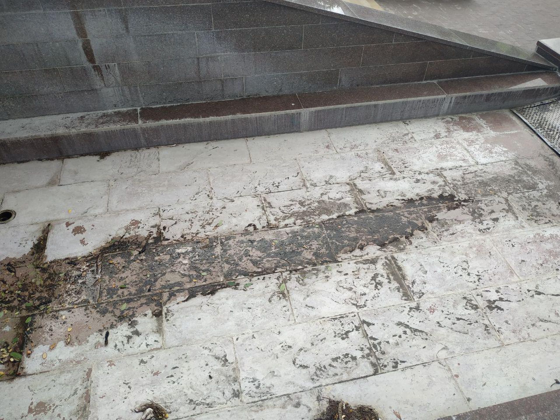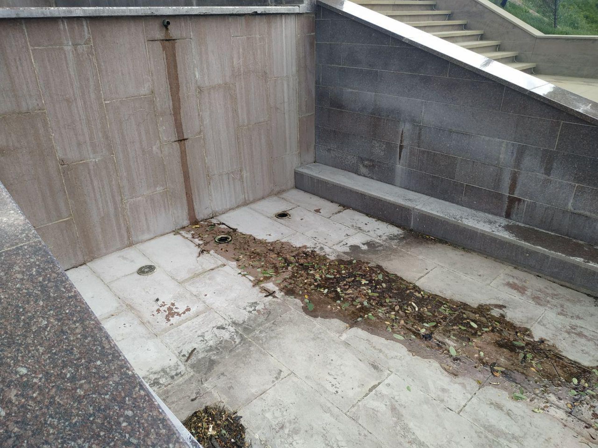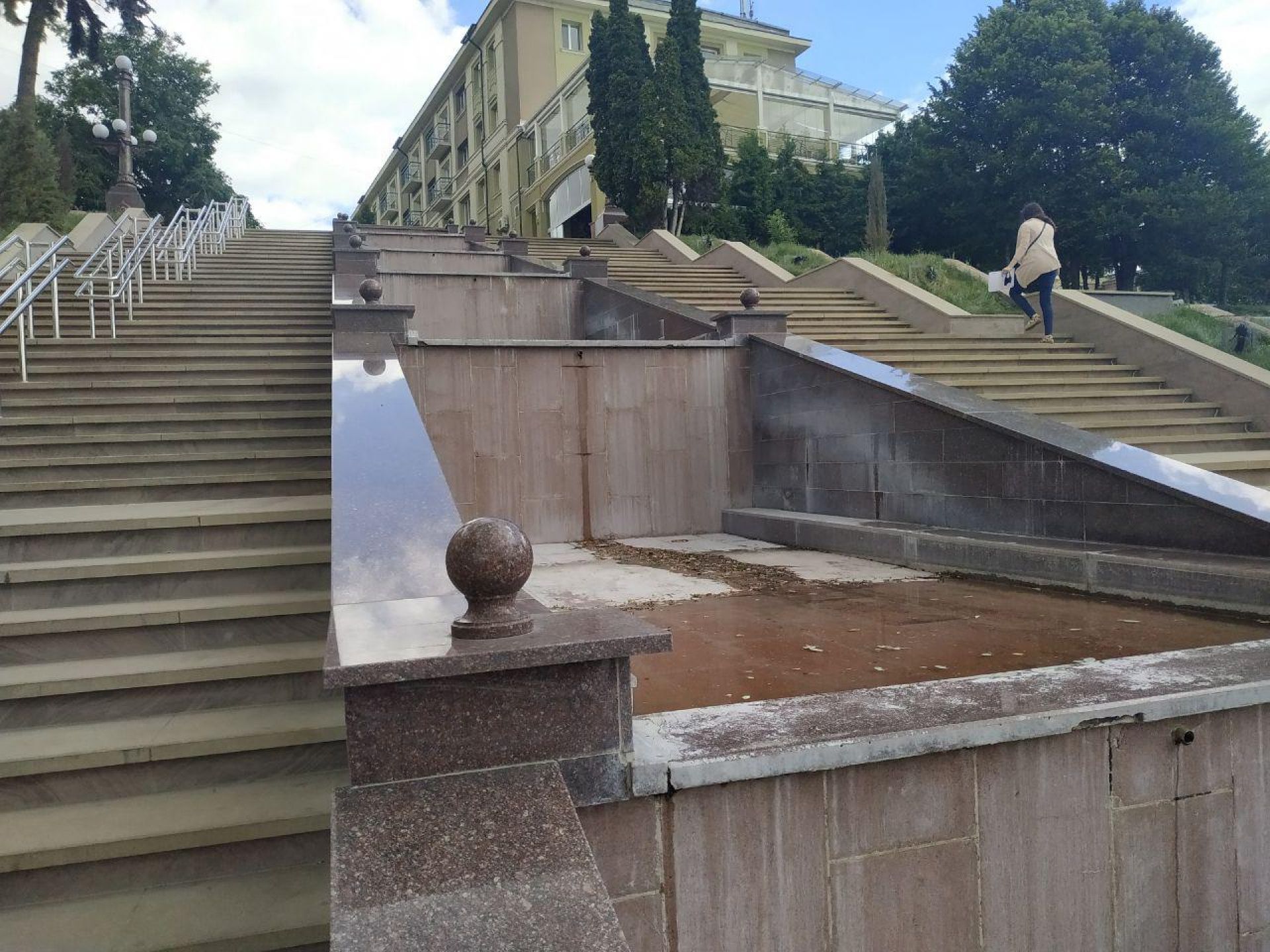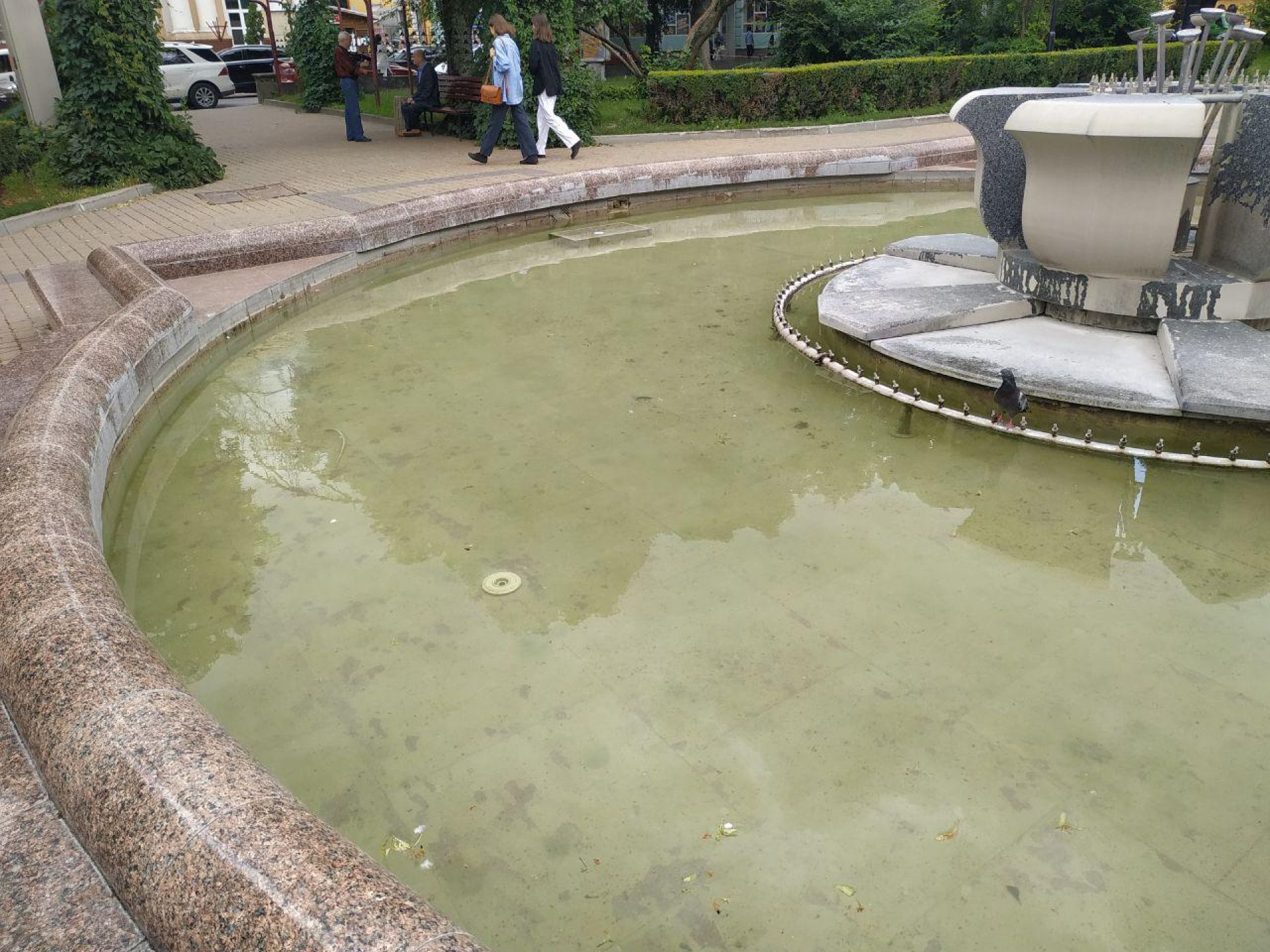 Лише у двох із трьох фонтанів із комплексу «Квітка терену», який знаходиться в центрі міста, наповнені водою, але не працюють. Більше того, вода в них набула неприємного, мутно-зеленого кольору, а дно починає вкриватися мулом.