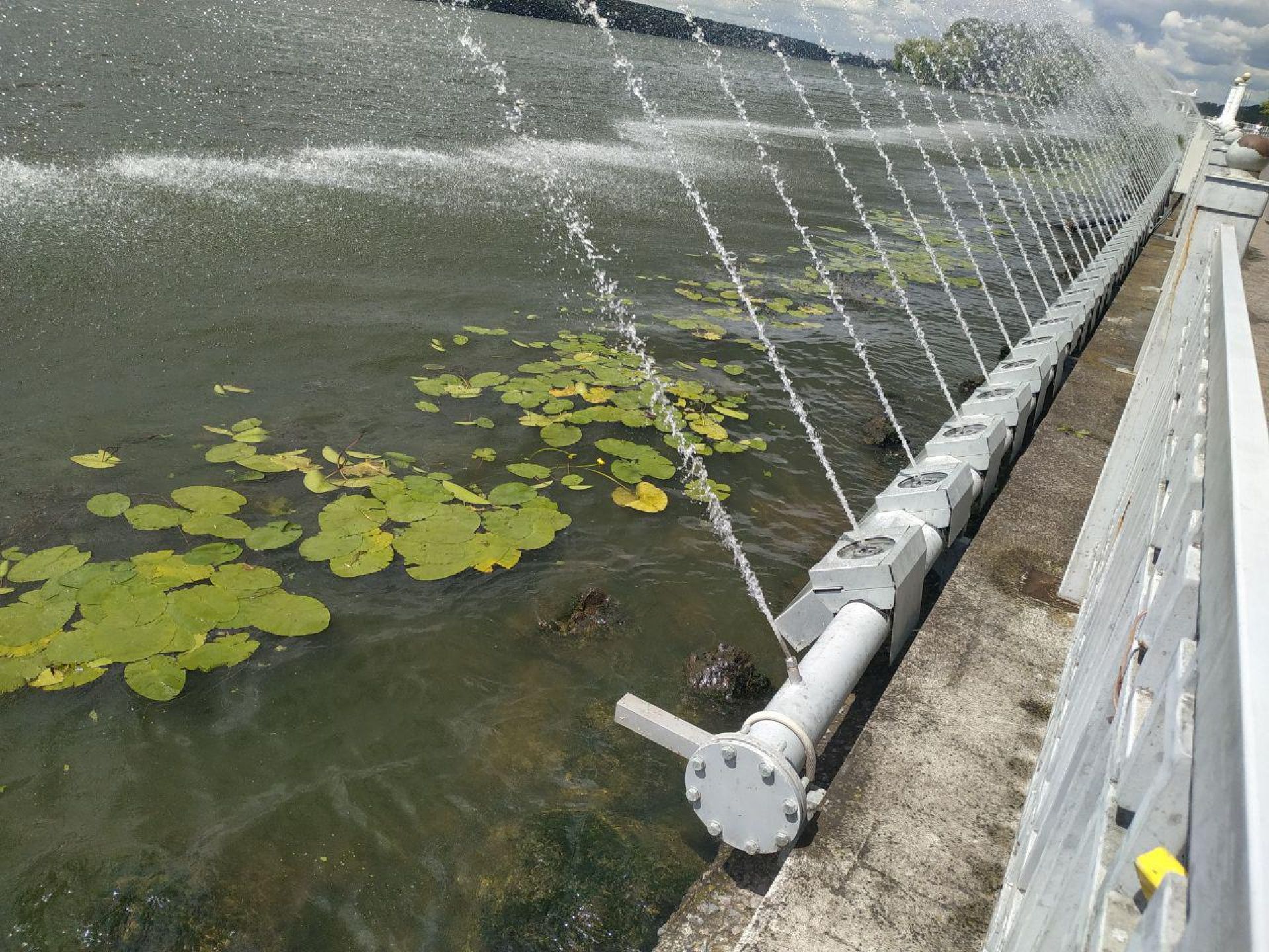 Аераційний фонтан також працює, хоч і вода поблизу берегу всього Тернопільського ставу набула зеленого кольору.