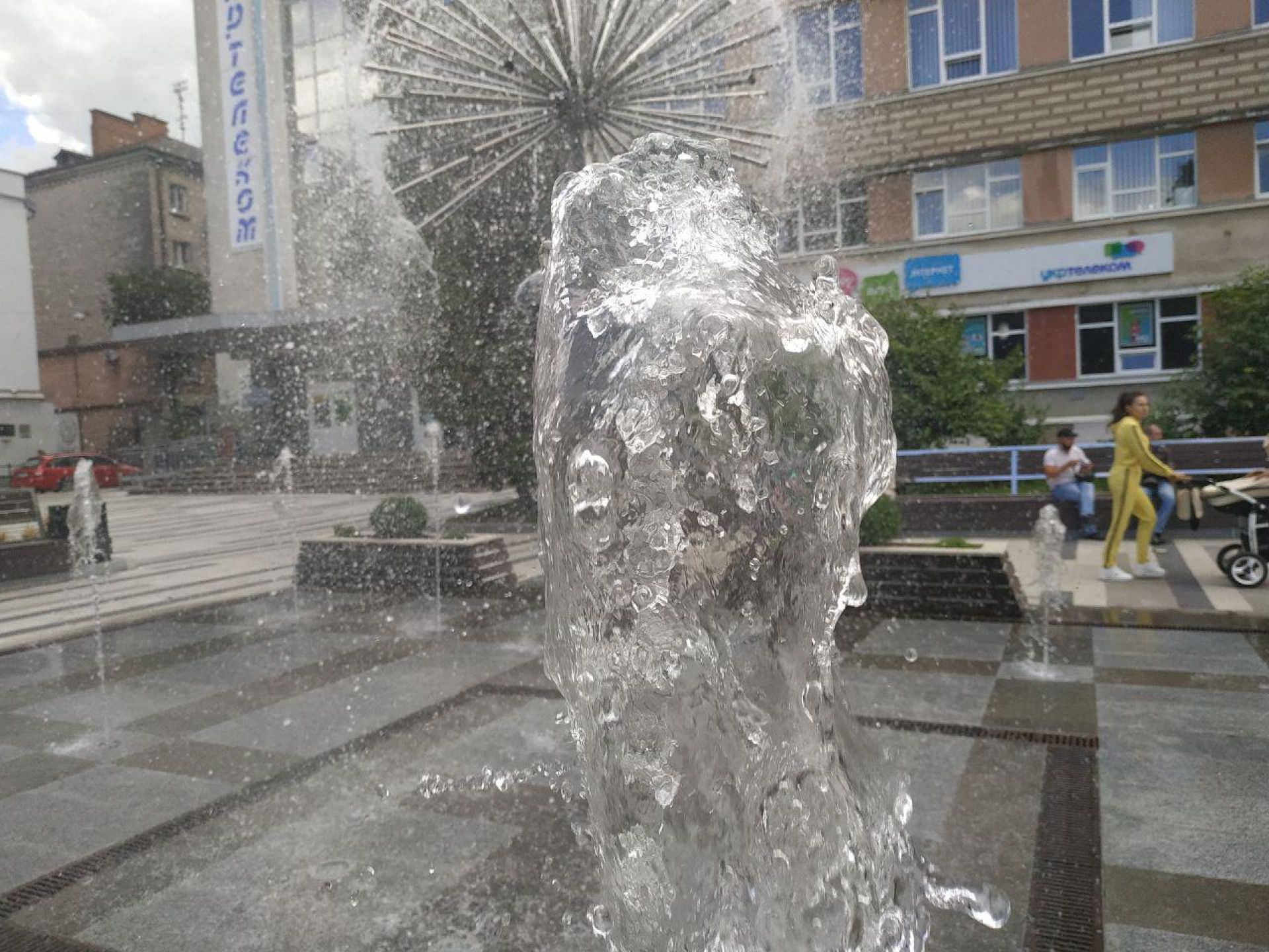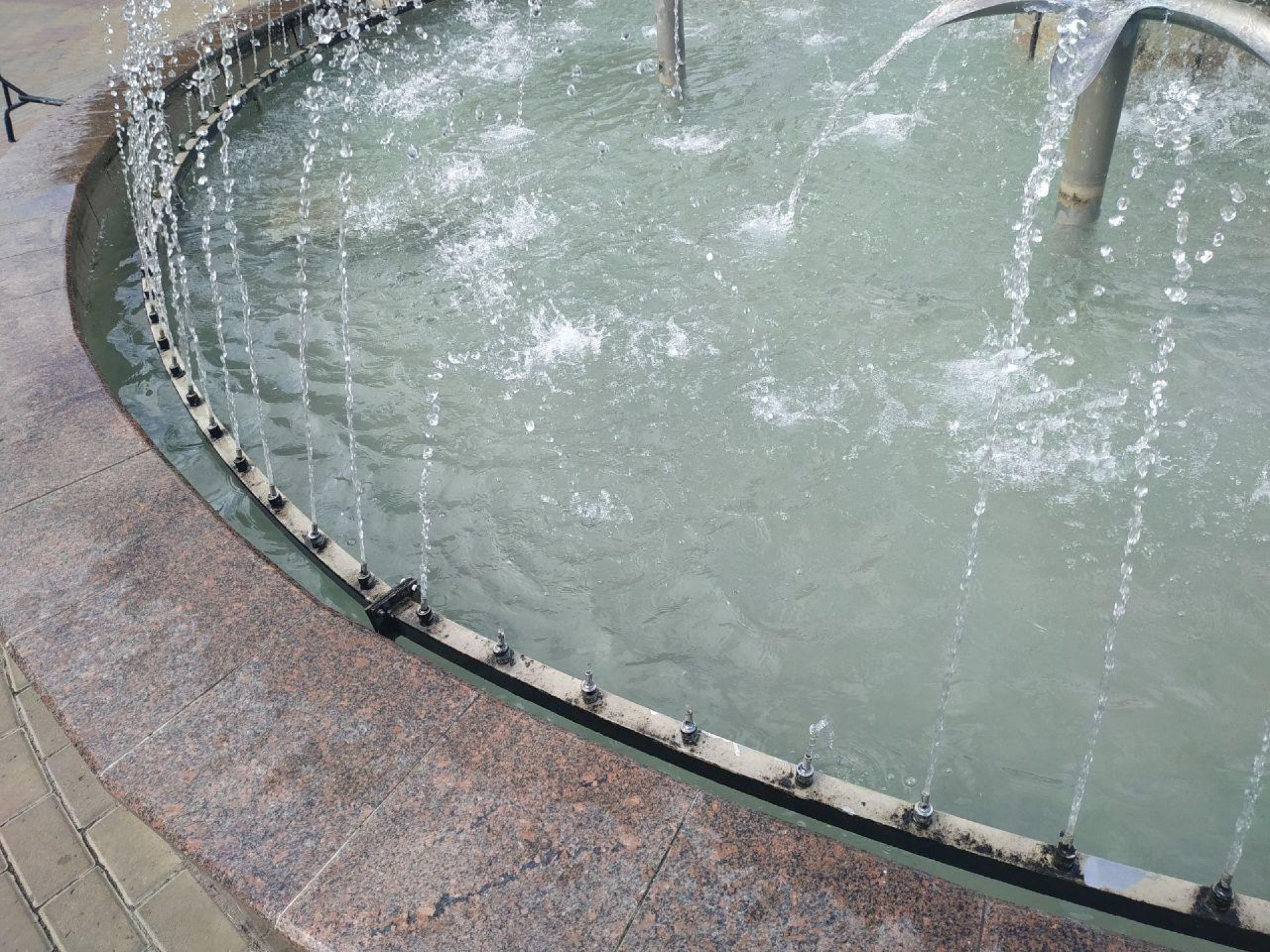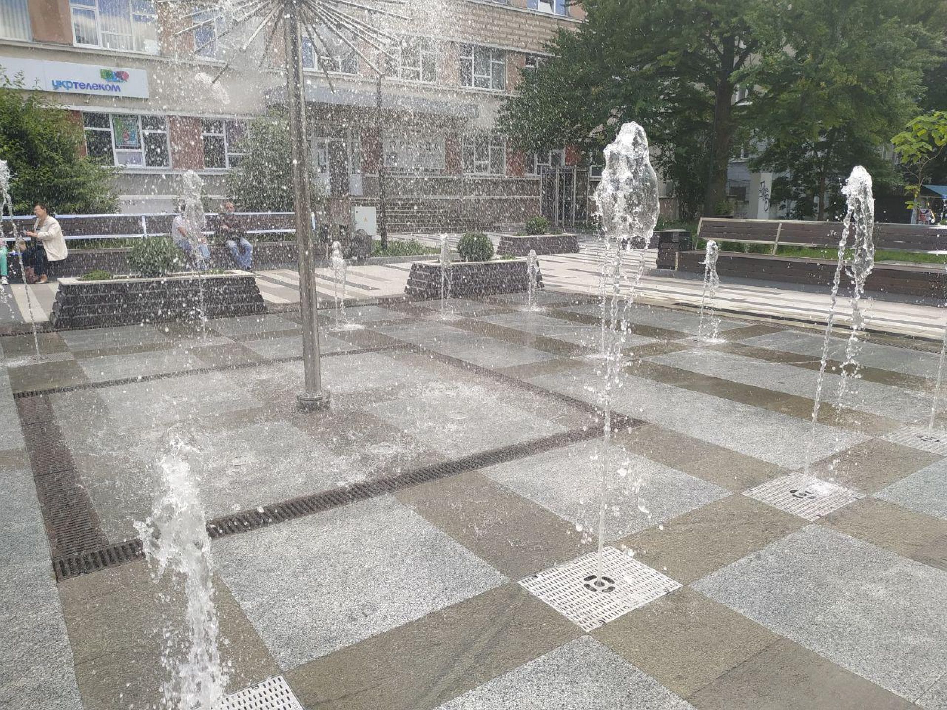 На бульварах Дмитра Вишневецького та Данила Галицького фонтани працюють справно, але вода в них має мутний колір.