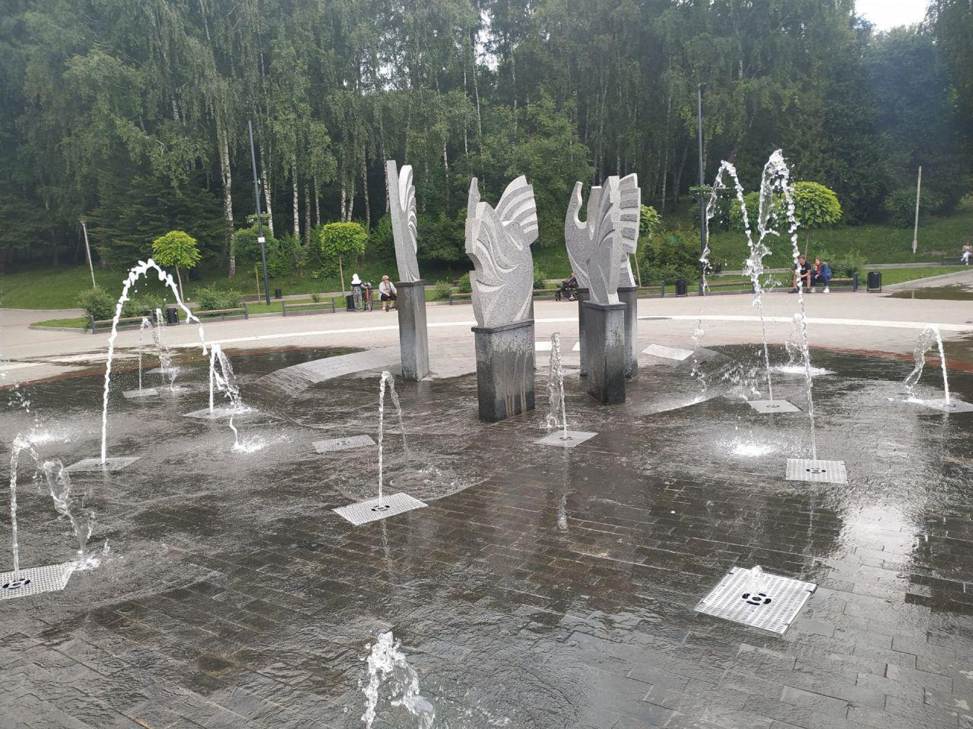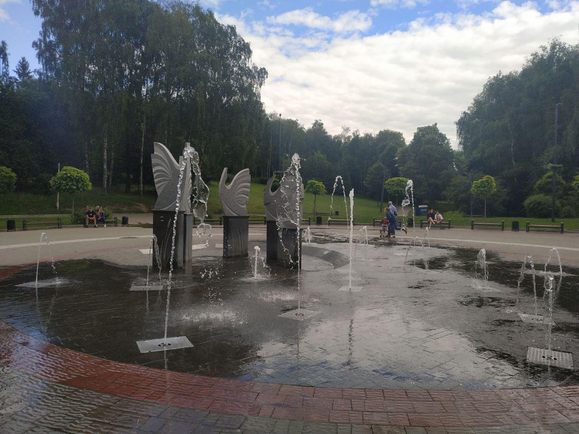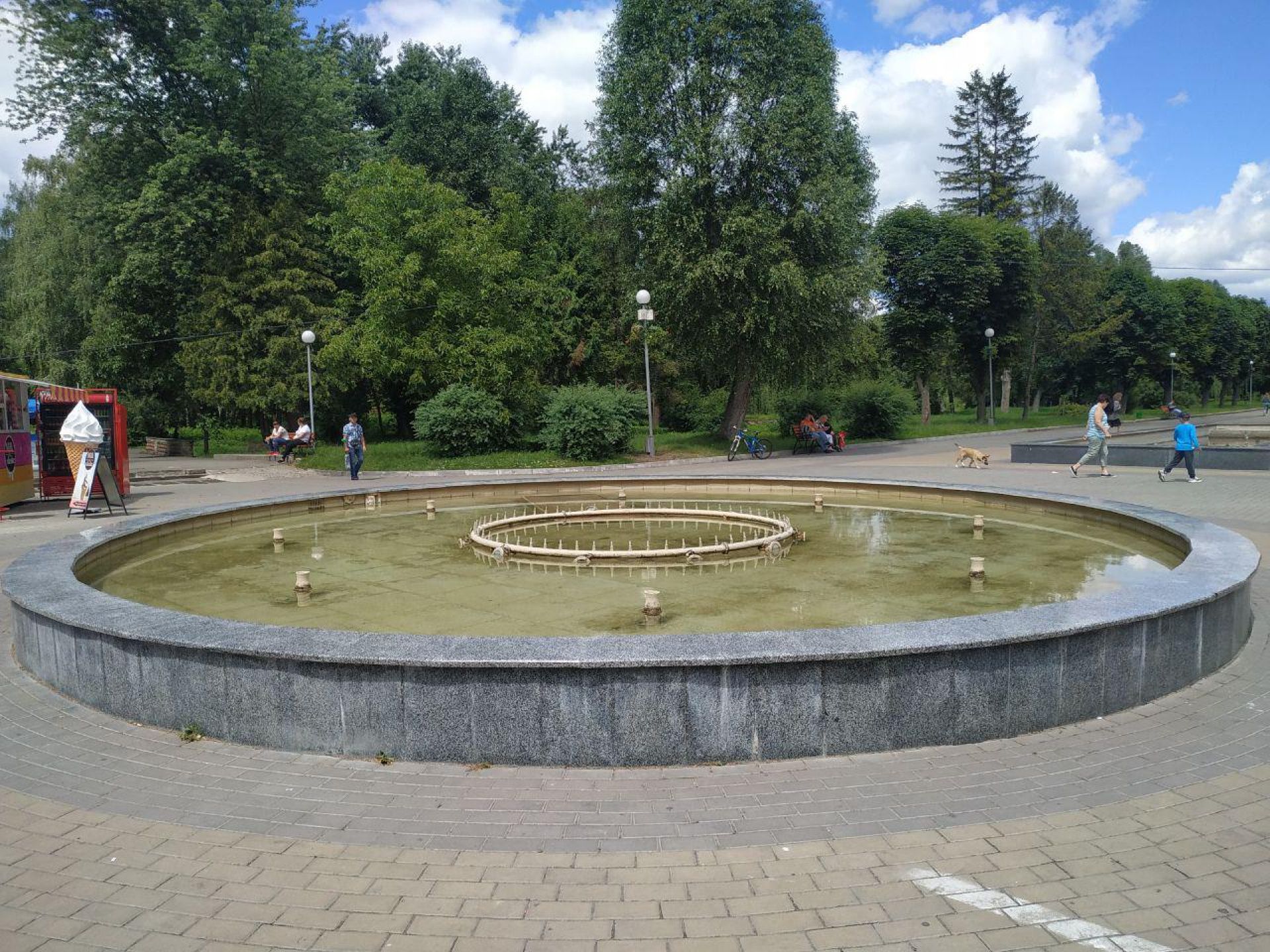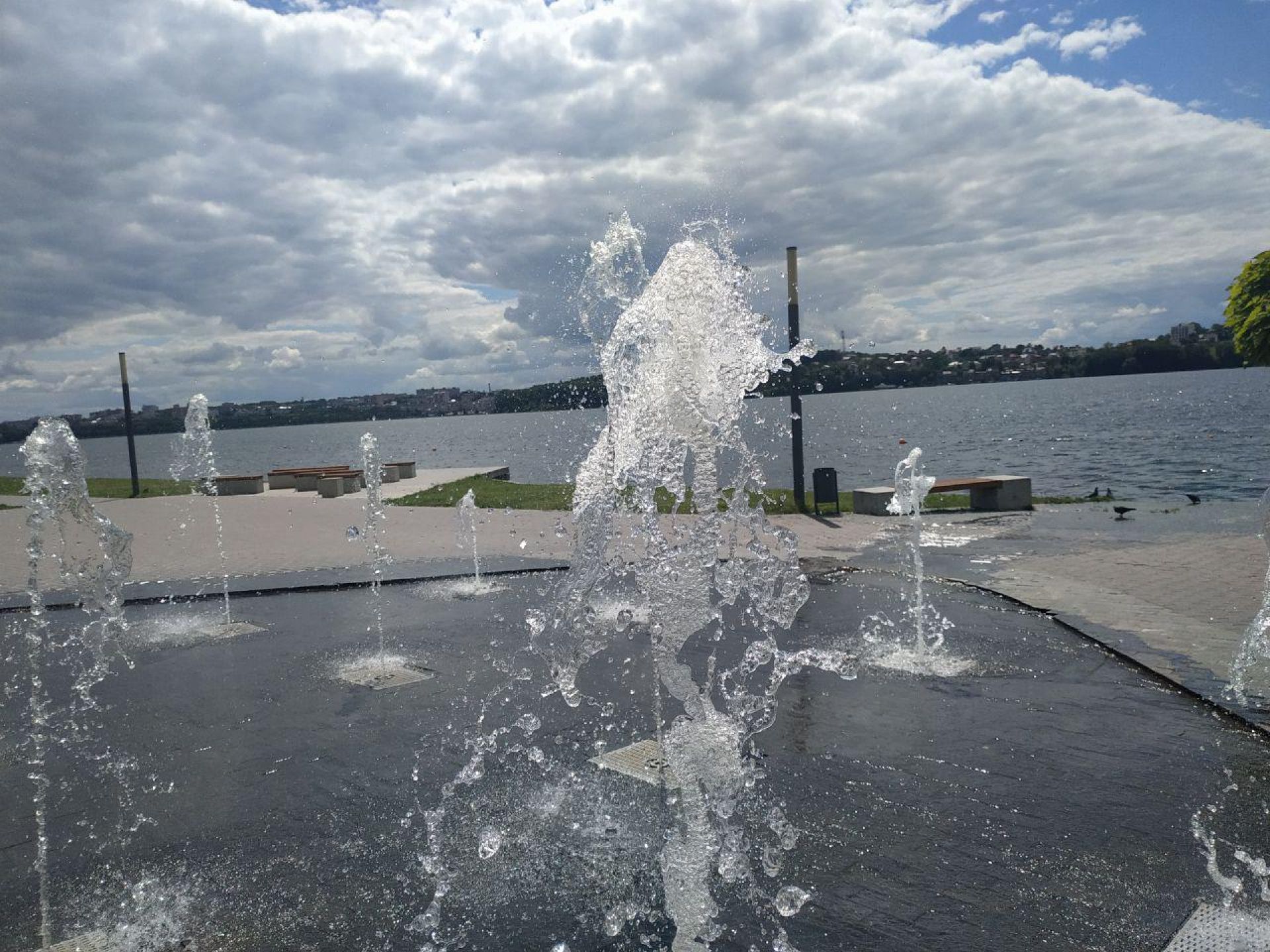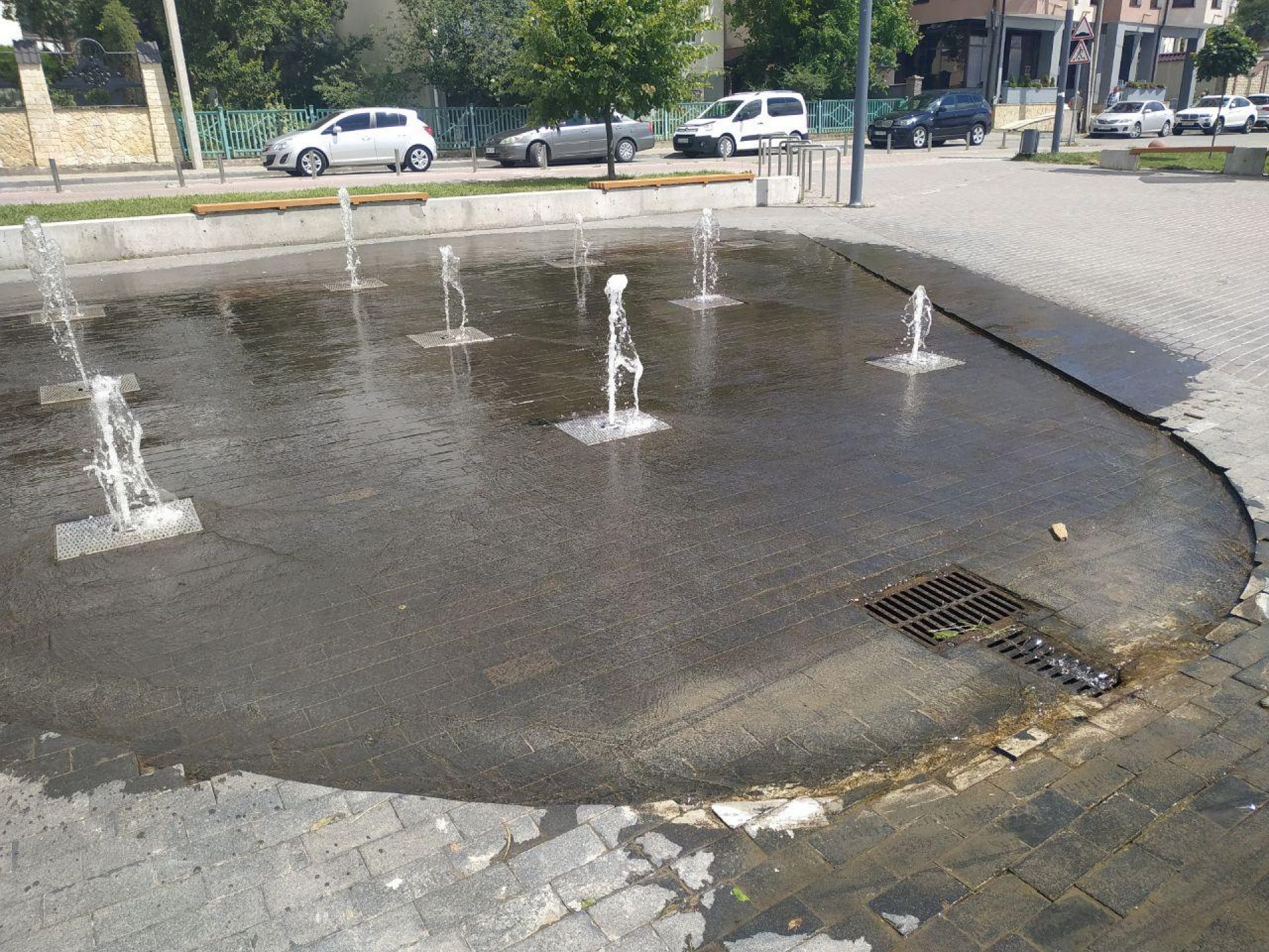 Такі ж справи і з фонтанами в парку «Національного відродження» та на «Циганці». Вони також працюють справно, а вода в них виглядає чистою. Проте в парку вода від фонтану неповністю стікає у водовідвідну яму, а розтікається по асфальту та до лавок, де сидять люди.