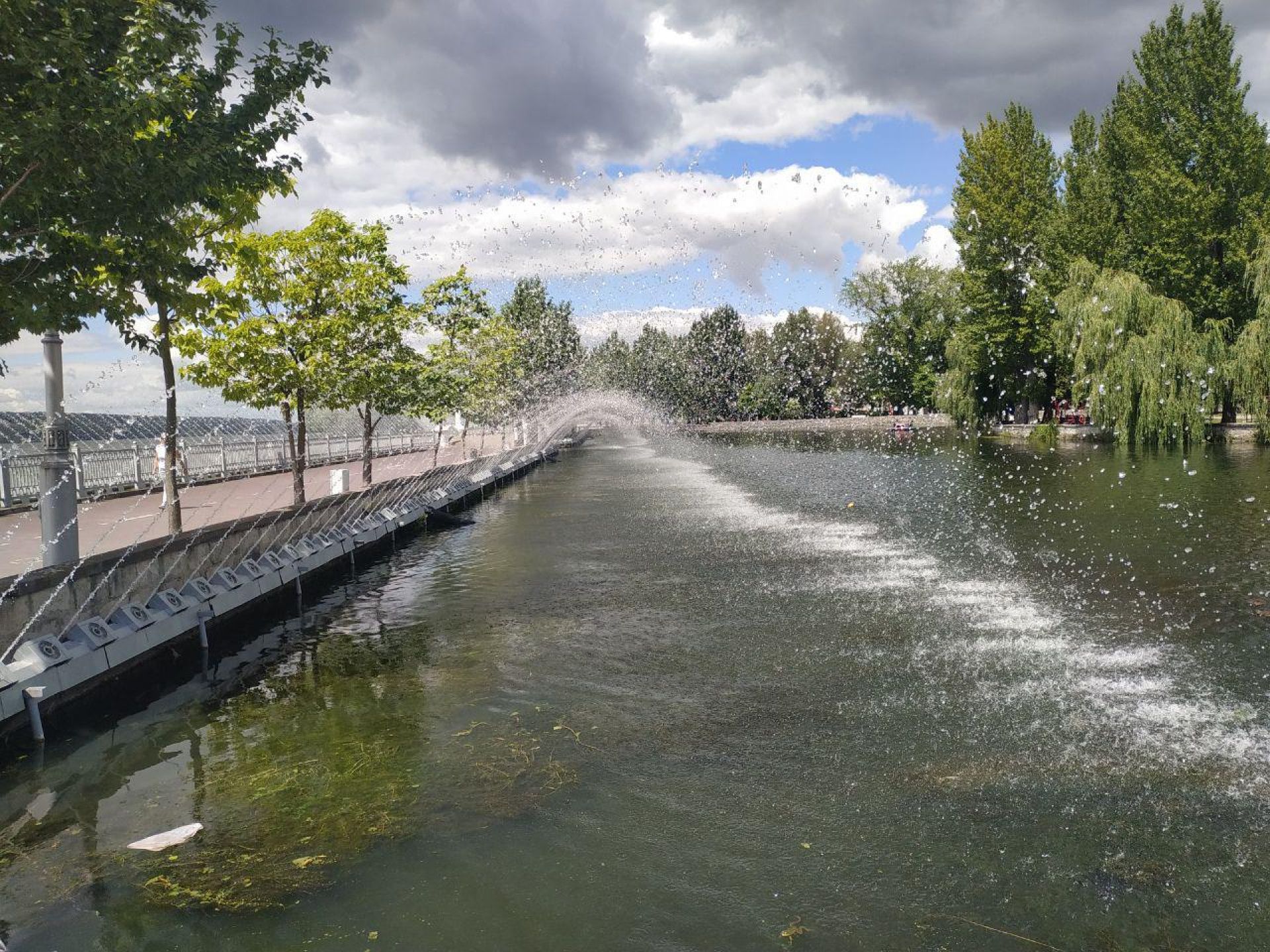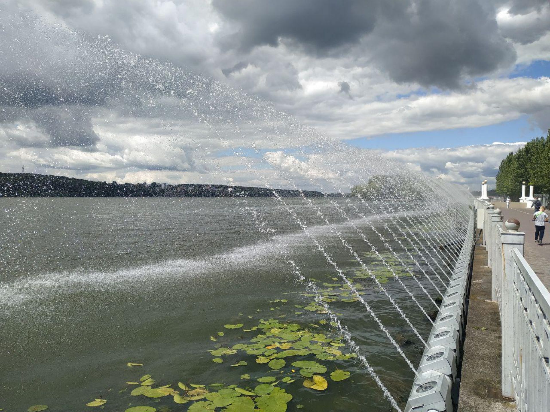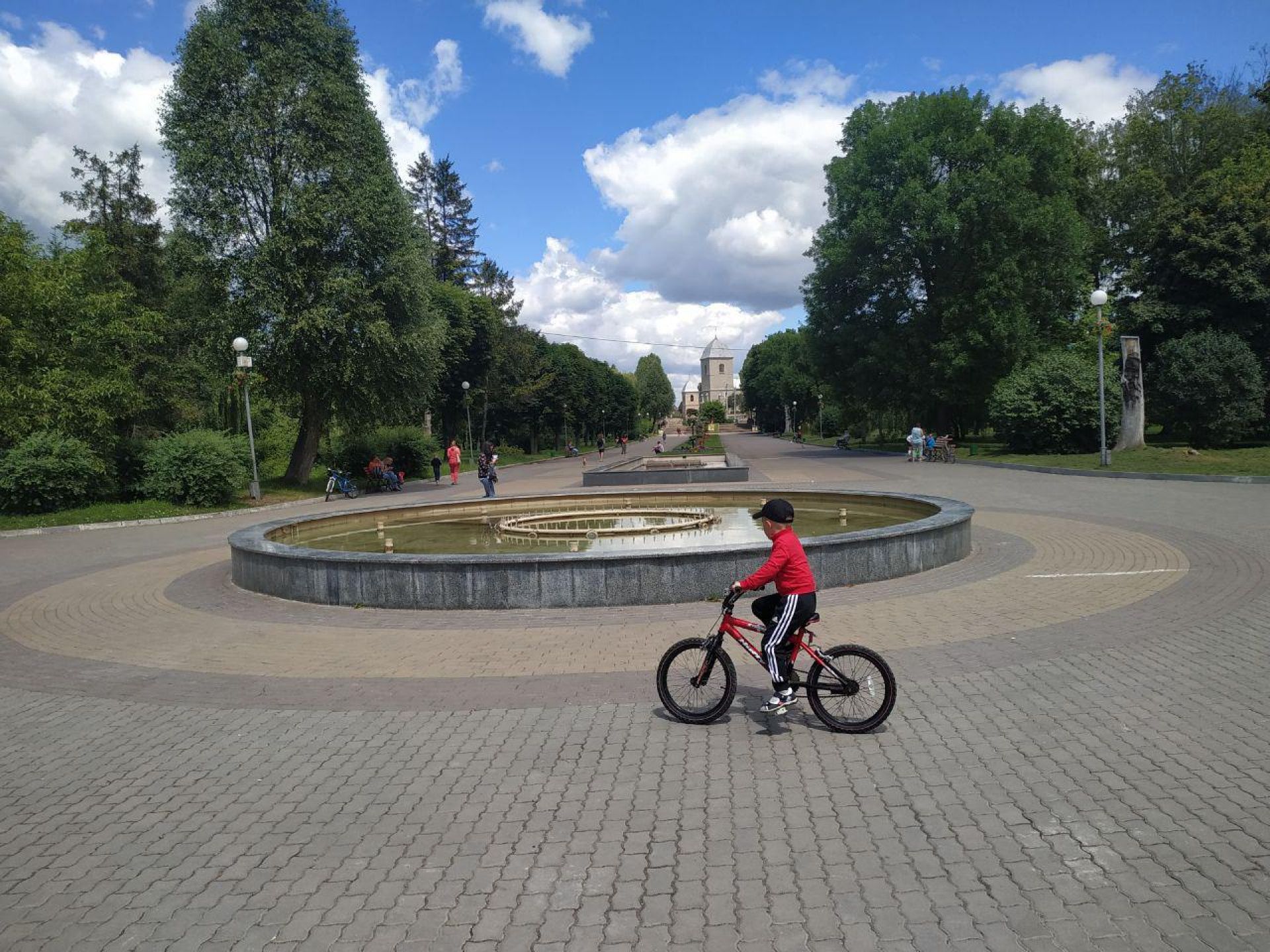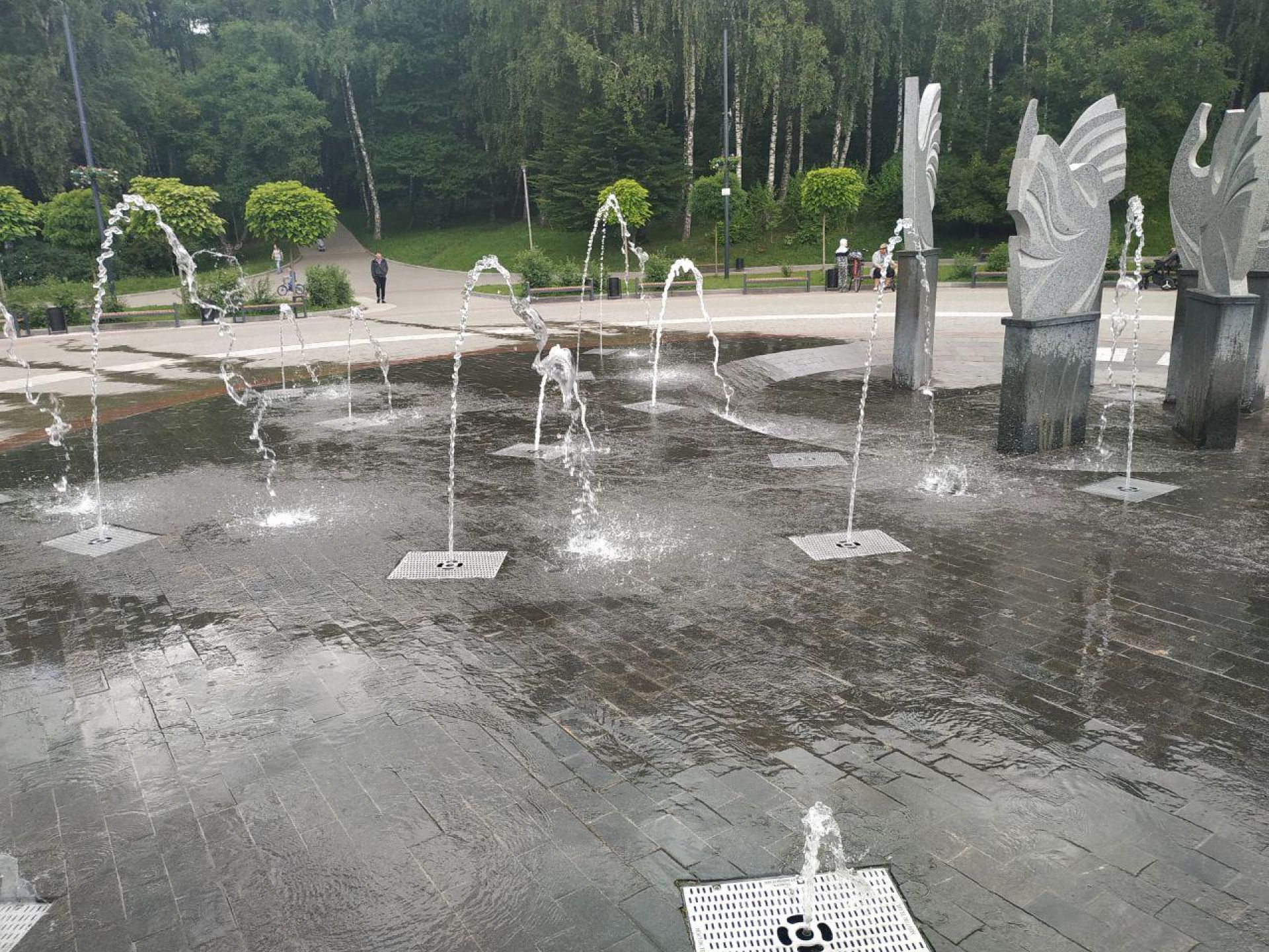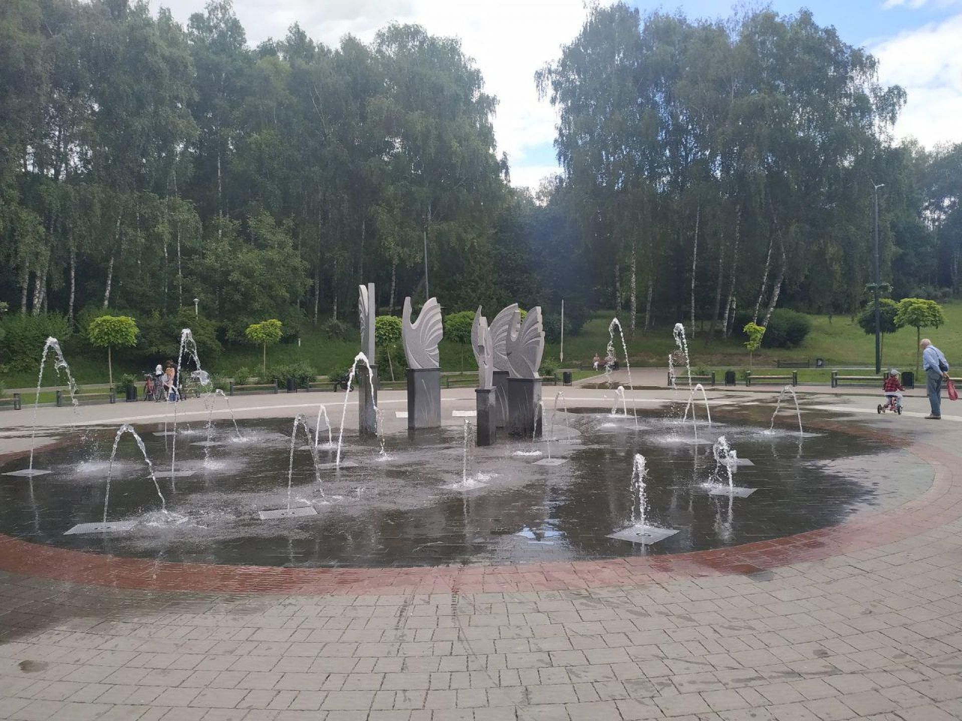 Такі ж справи і з фонтанами в парку «Національного відродження» та на «Циганці». Вони також працюють справно, а вода в них виглядає чистою. Проте в парку вода від фонтану неповністю стікає у водовідвідну яму, а розтікається по асфальту та до лавок, де сидять люди.