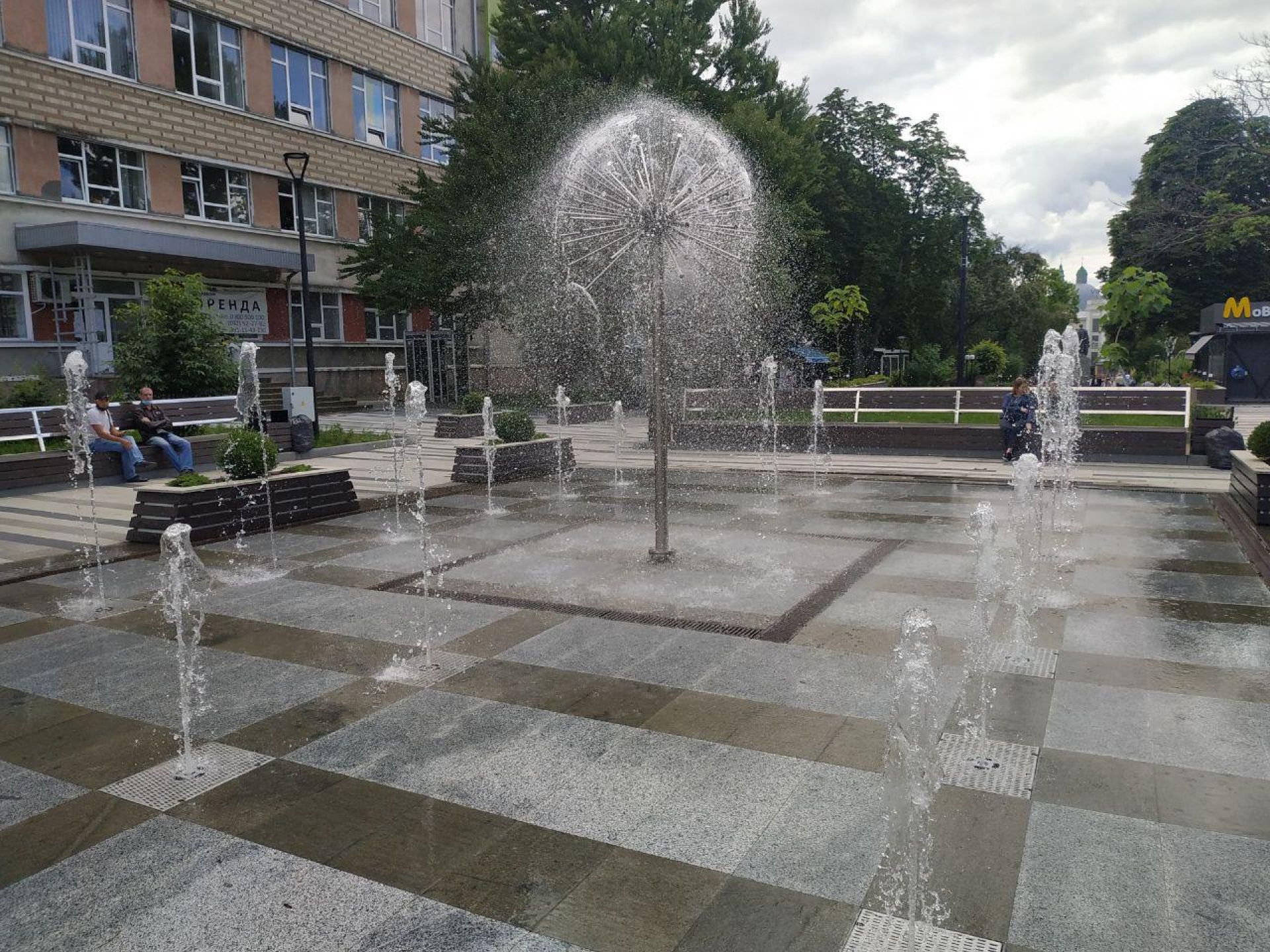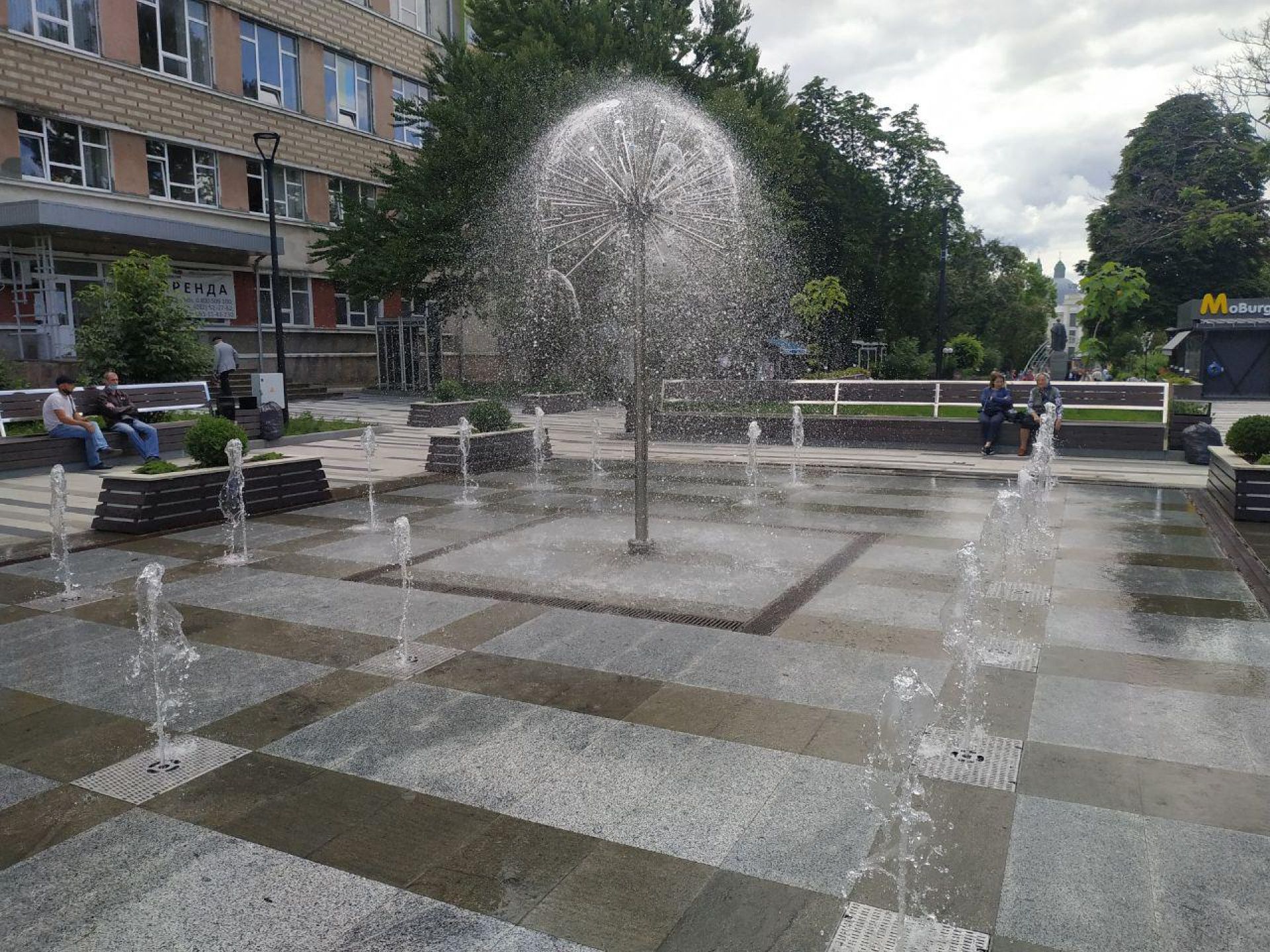 Фонтан «Кульбаба», який нещодавно реконструювали, працює справно. Біля нього дуже багато батьків з малими дітьми, проте і дорослі не проти посидіти на лавках поблизу фонтану. Вода виглядає чистою, а на плитці немає жодних плям та зелених водоростей.