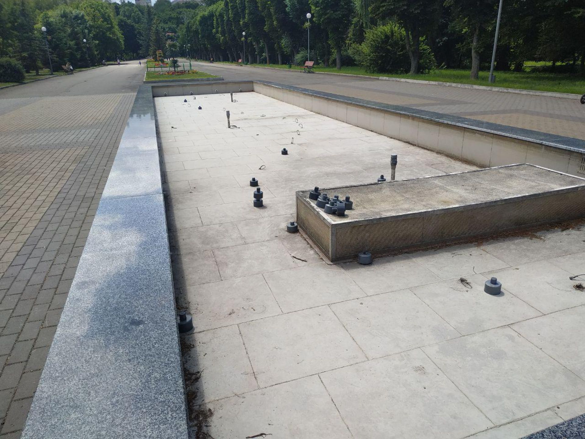 Комплекс із трьох фонтанів у гідропарку «Топільче» не працює. Лише в одному з них знаходиться вода. Проте його дно вже починає забруднюватися.