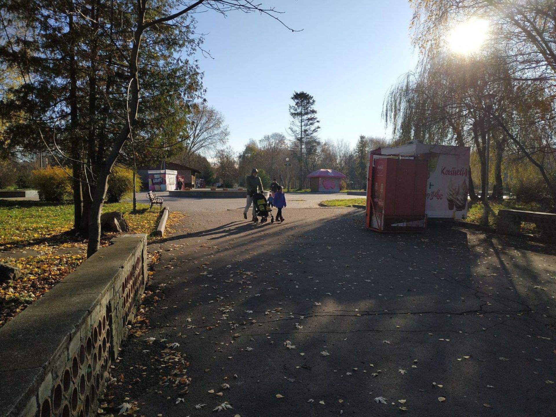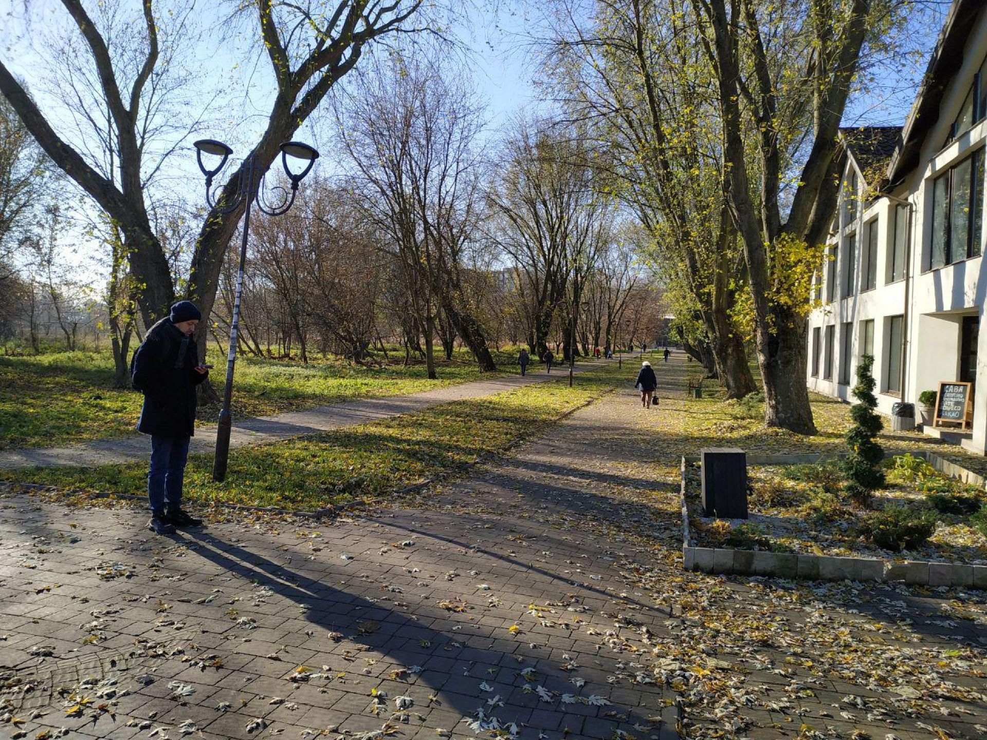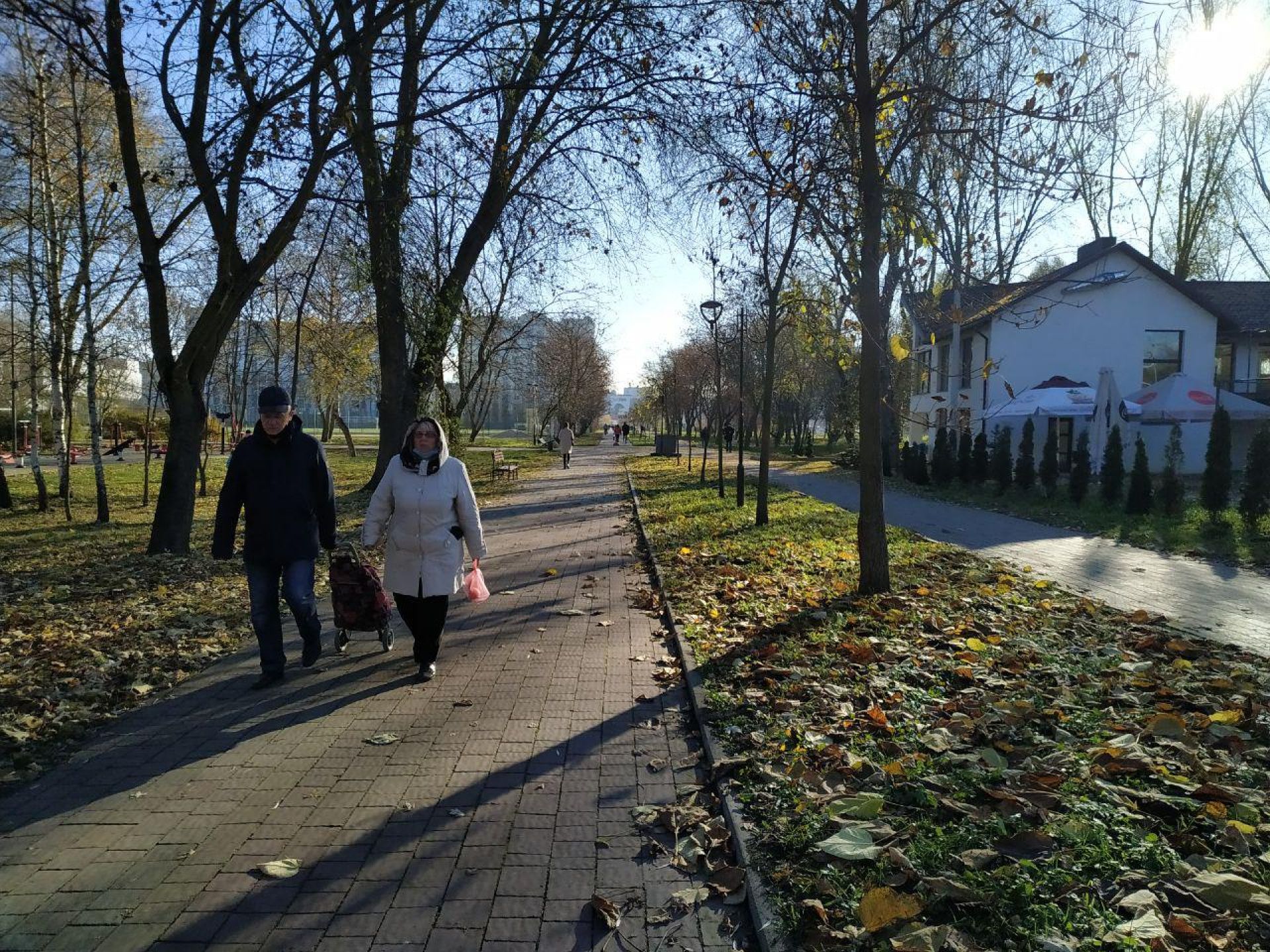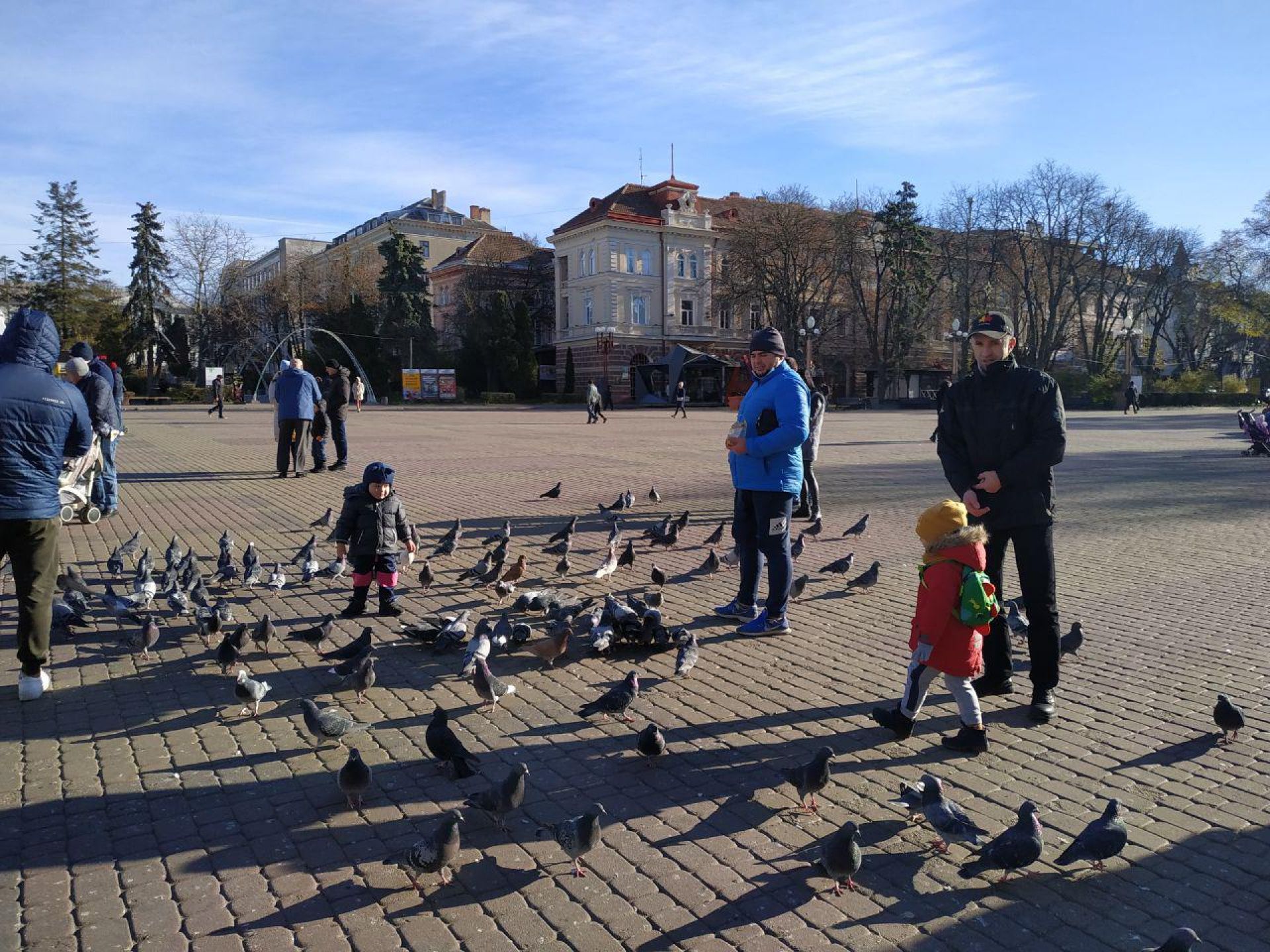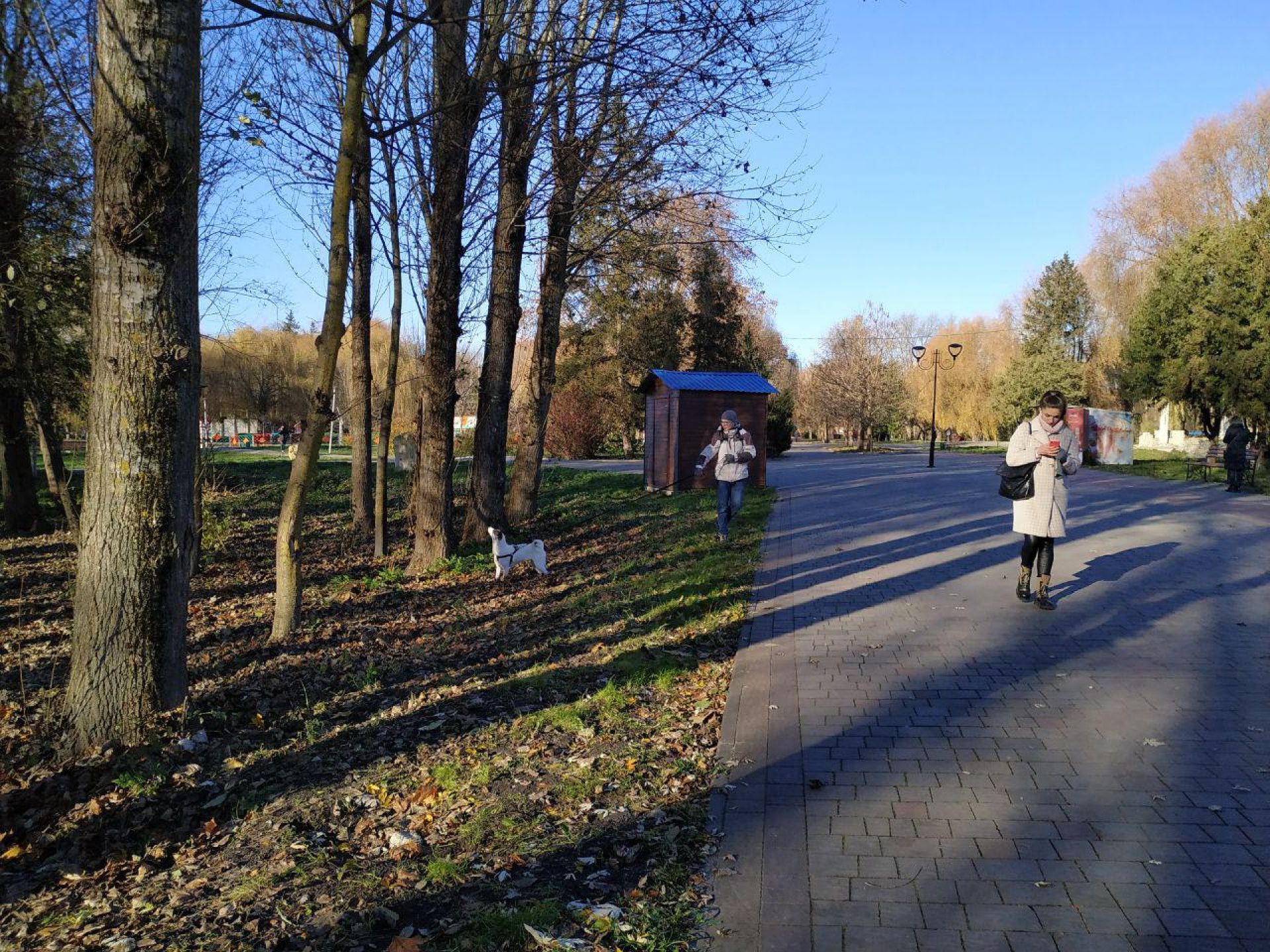 У парку «Топільче» попри морозний ранок досить багато охочих прогулятися з дітьми, своєю парою, або ж з домашніми улюбленцями.