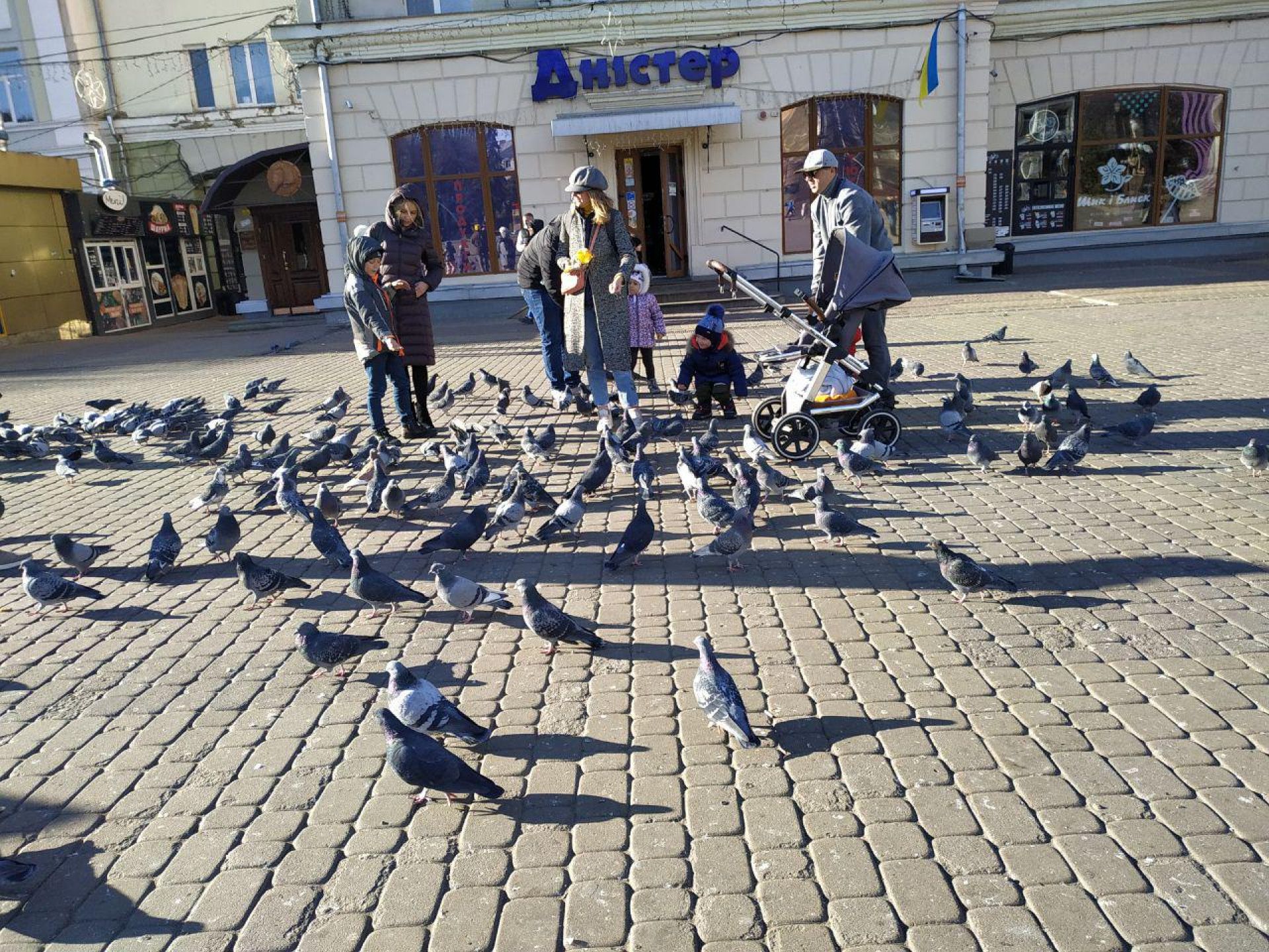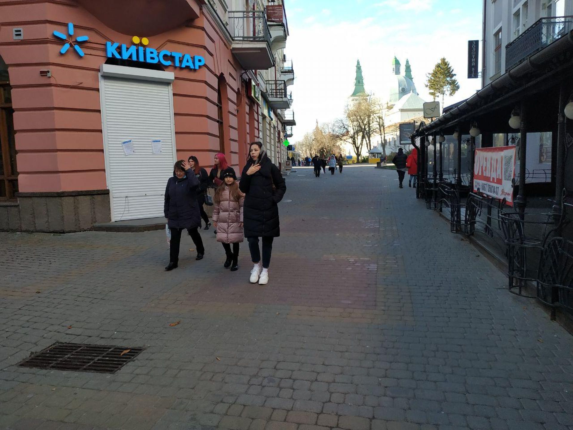 Щодо закладів харчування, вони продовжують працювати. Персонал в них працює у масках. Відвідувачів в першій половині дня було небагато.