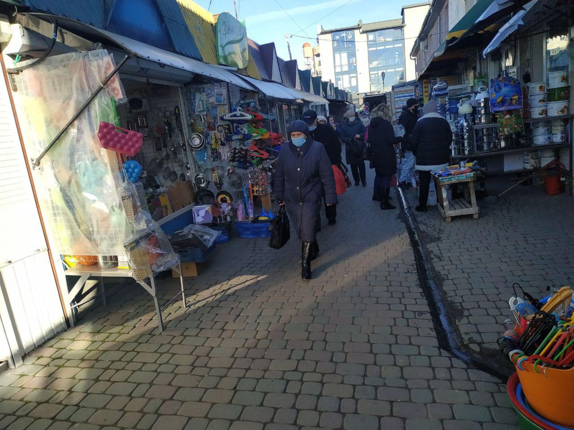 Охочих відвідати Центральний ринок у неділю також немало та не всі в масках. Продавців без масок на ринку також багато.