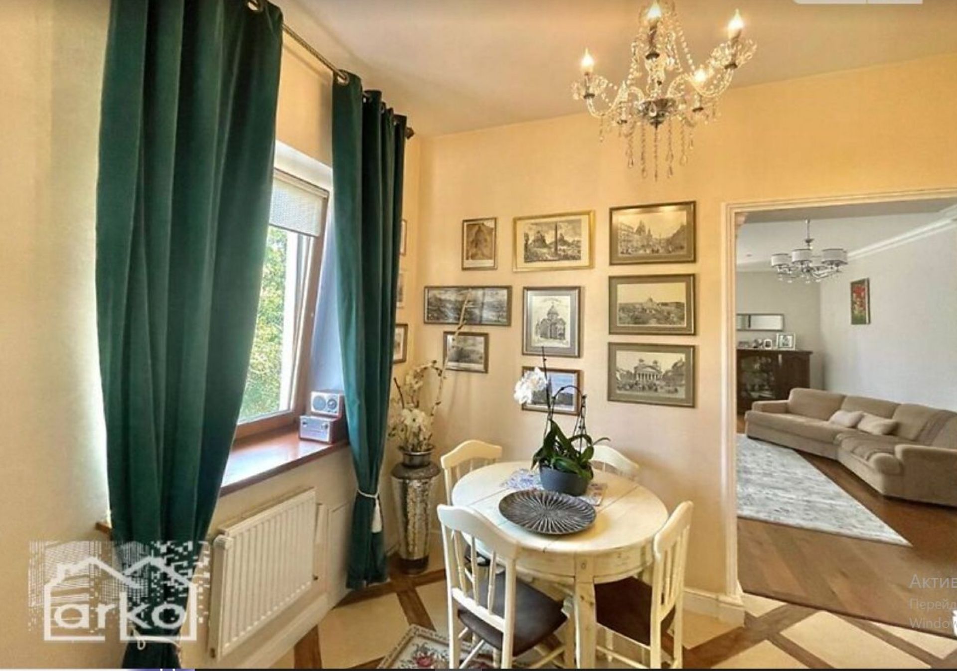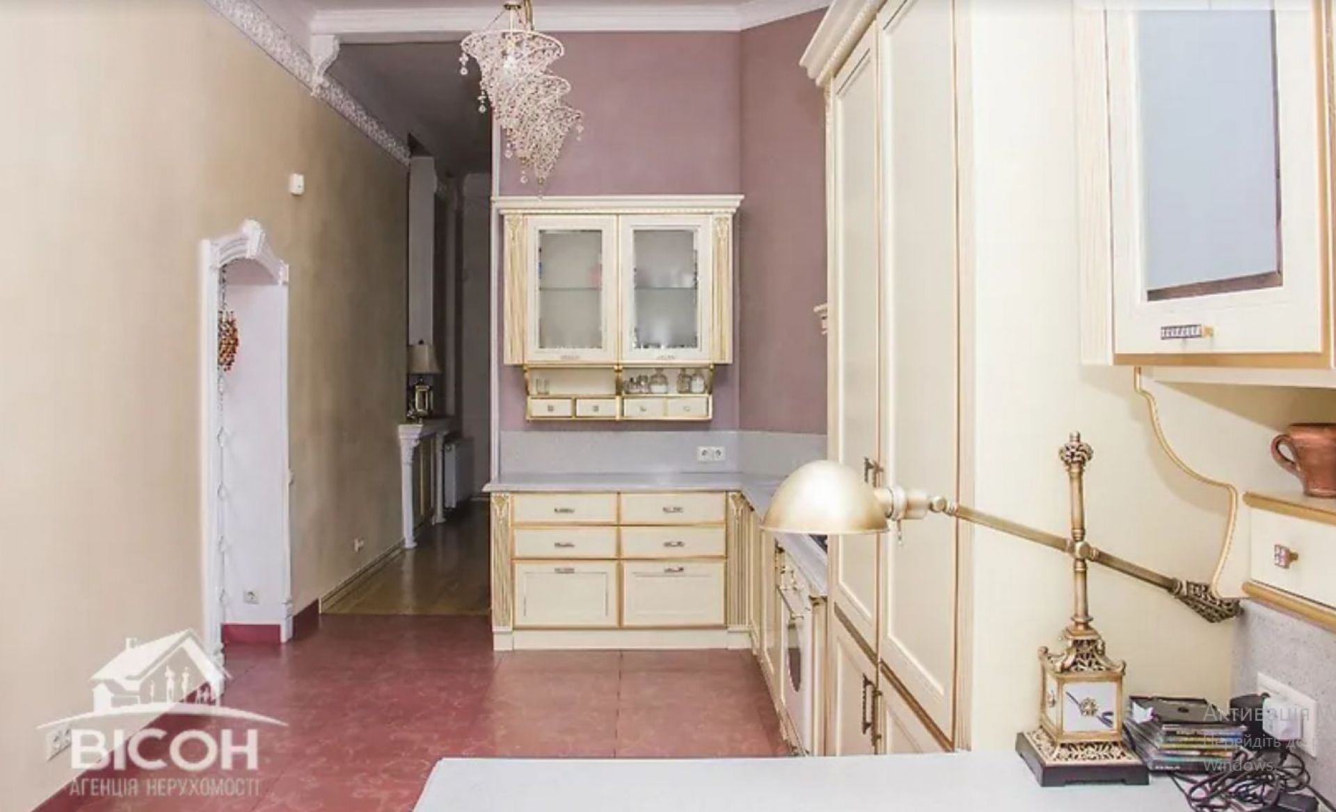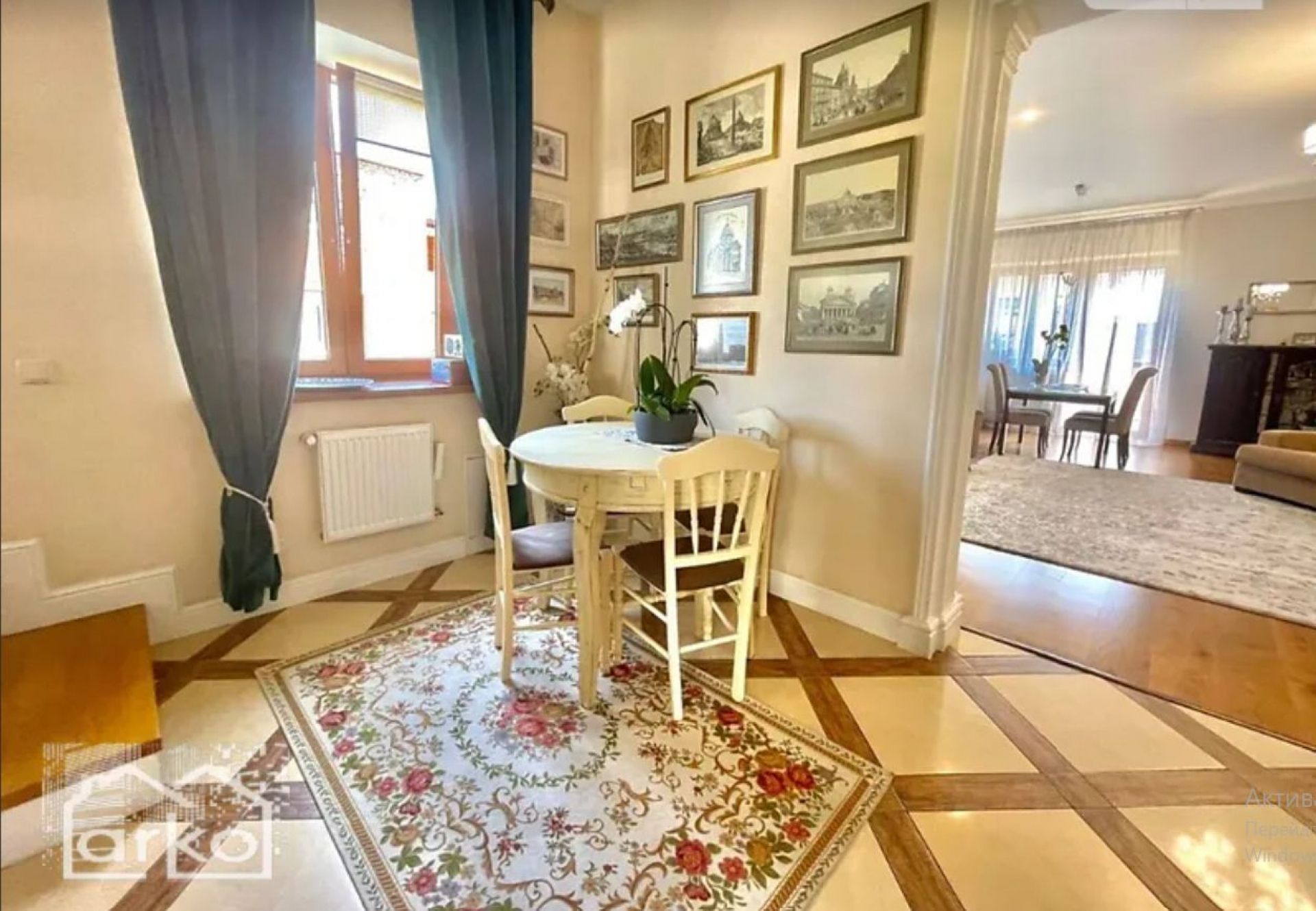 До уваги покупців пропонують дворівневу квартиру в історичному центрі міста. Має позначку «Ексклюзив». В ній новий дизайнерський ремонт, виконаний з дорогих матеріалів, авторські ковані сходи, які ведуть на другий поверх. Квартира має індивідуальне газове опалення, двоконтурний котел, енергоефективні металопластикові вікна, стіни з цегли. Продається з усіма меблями та технікою. Всередині є три балкони і лоджія. На першому поверсі прихожа, вітальня, столова, кухня-студія, санвузол і сходи. На другому – дві окремі кімнати, гардеробна і простора ванна кімната. В оселі наявні пральна машина, посудомийка, джакузі, кухонний куток, система очищення питної води, барна стійка, охоронна та пожежна сигналізація, кондиціонер. Ліфт відсутній. В оголошенні вказана вартість комунальних послуг взимку та влітку.