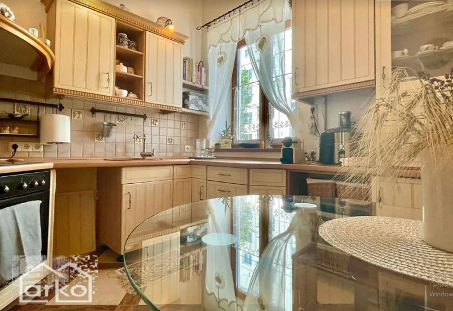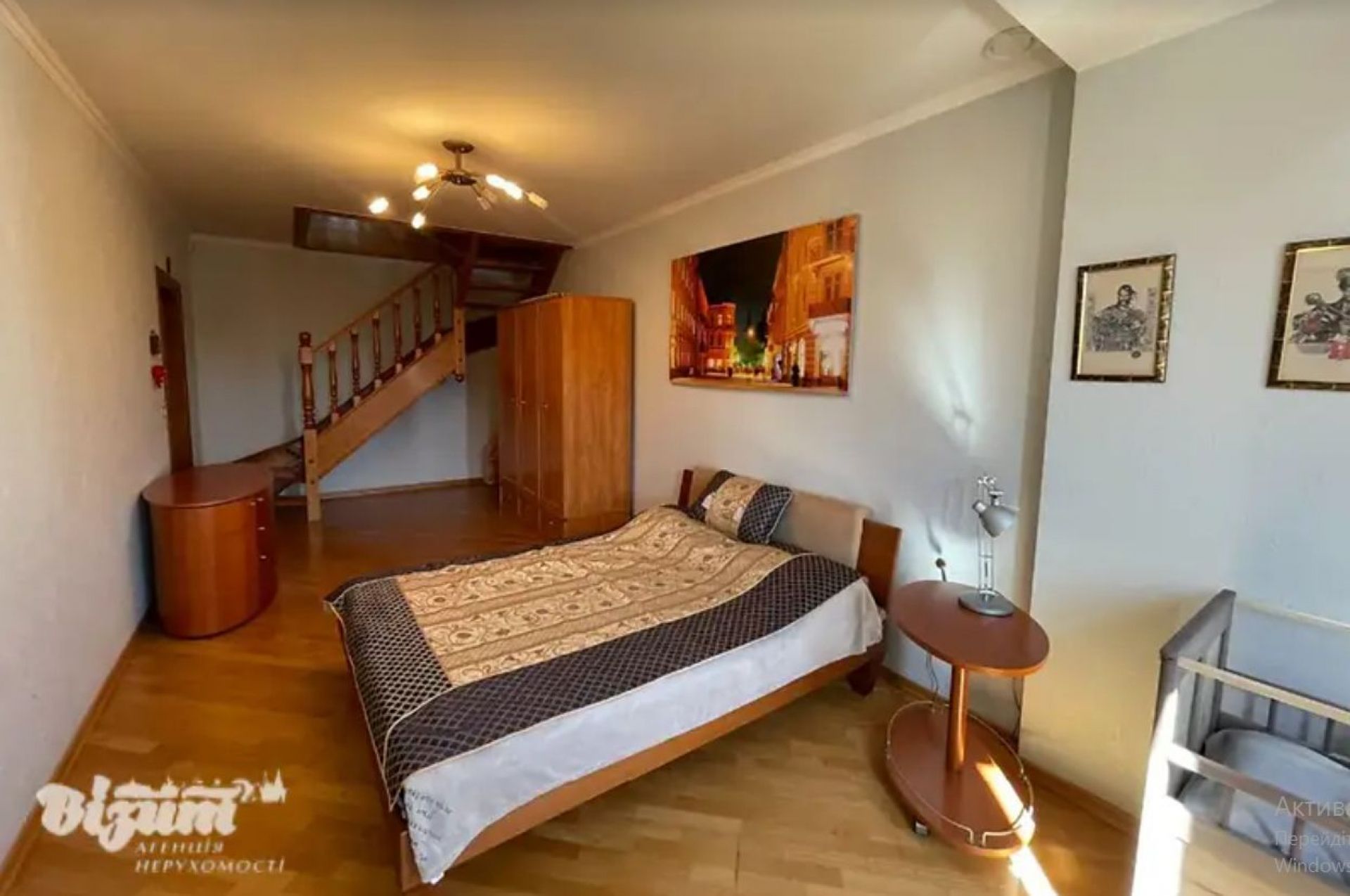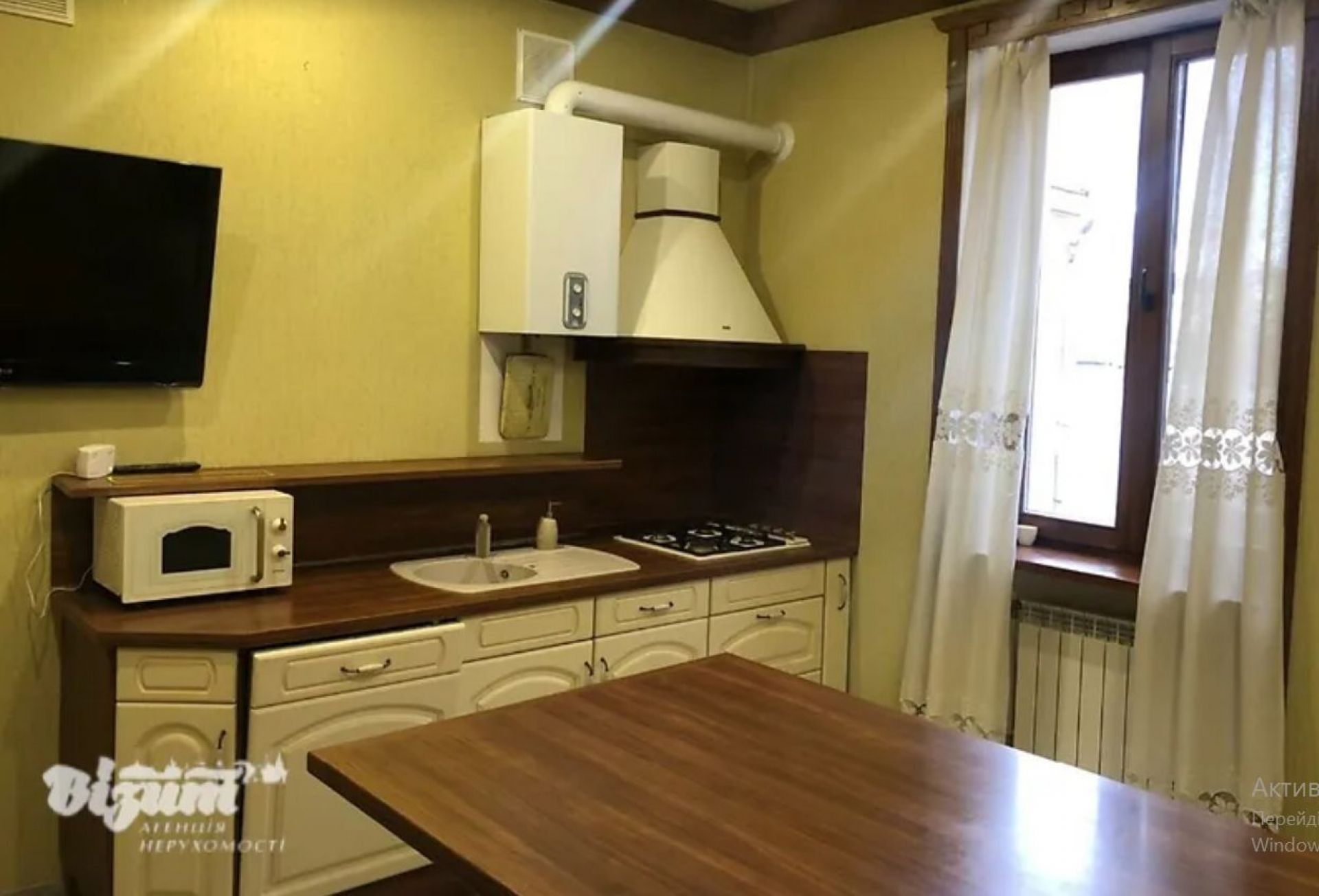 До уваги покупців пропонують дворівневу квартиру в історичному центрі міста. Має позначку «Ексклюзив». В ній новий дизайнерський ремонт, виконаний з дорогих матеріалів, авторські ковані сходи, які ведуть на другий поверх. Квартира має індивідуальне газове опалення, двоконтурний котел, енергоефективні металопластикові вікна, стіни з цегли. Продається з усіма меблями та технікою. Всередині є три балкони і лоджія. На першому поверсі прихожа, вітальня, столова, кухня-студія, санвузол і сходи. На другому – дві окремі кімнати, гардеробна і простора ванна кімната. В оселі наявні пральна машина, посудомийка, джакузі, кухонний куток, система очищення питної води, барна стійка, охоронна та пожежна сигналізація, кондиціонер. Ліфт відсутній. В оголошенні вказана вартість комунальних послуг взимку та влітку.