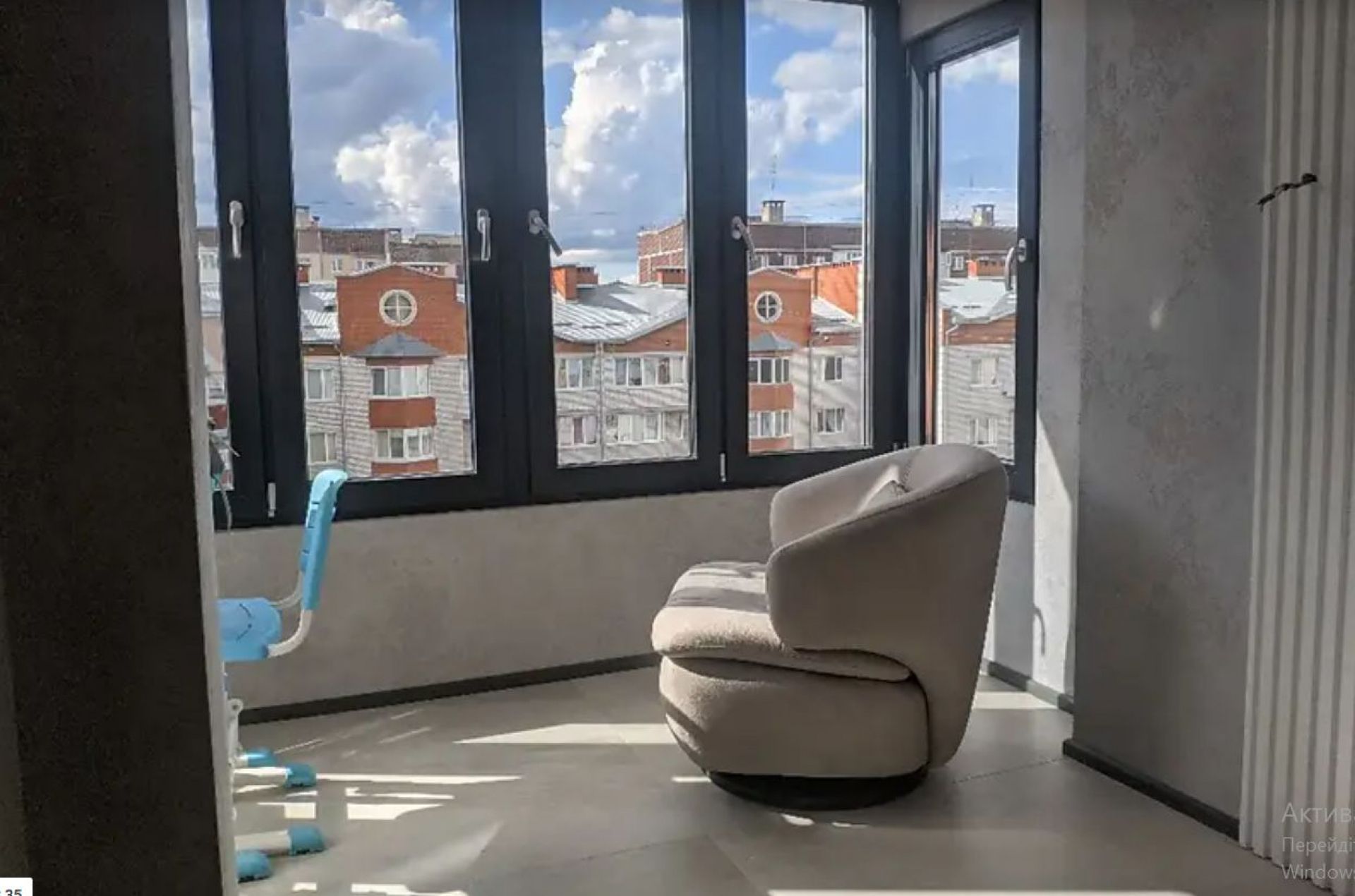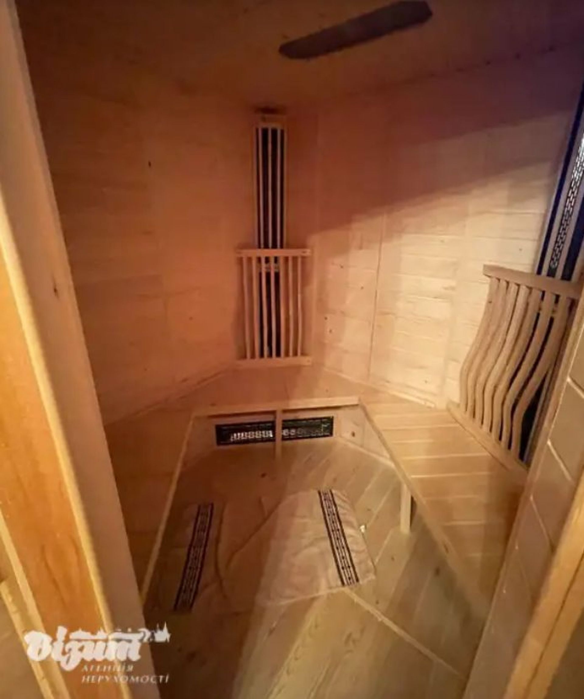 Квартира знаходиться у новобудові. Має позначку «Преміум клас». Продавці пишуть, що вона «світла і простора». Опалення індивідуальне, стіни з цегли, всередині ексклюзивні меблі. Є власна сауна. Ця оселя розміщена у трьох рівнях.
