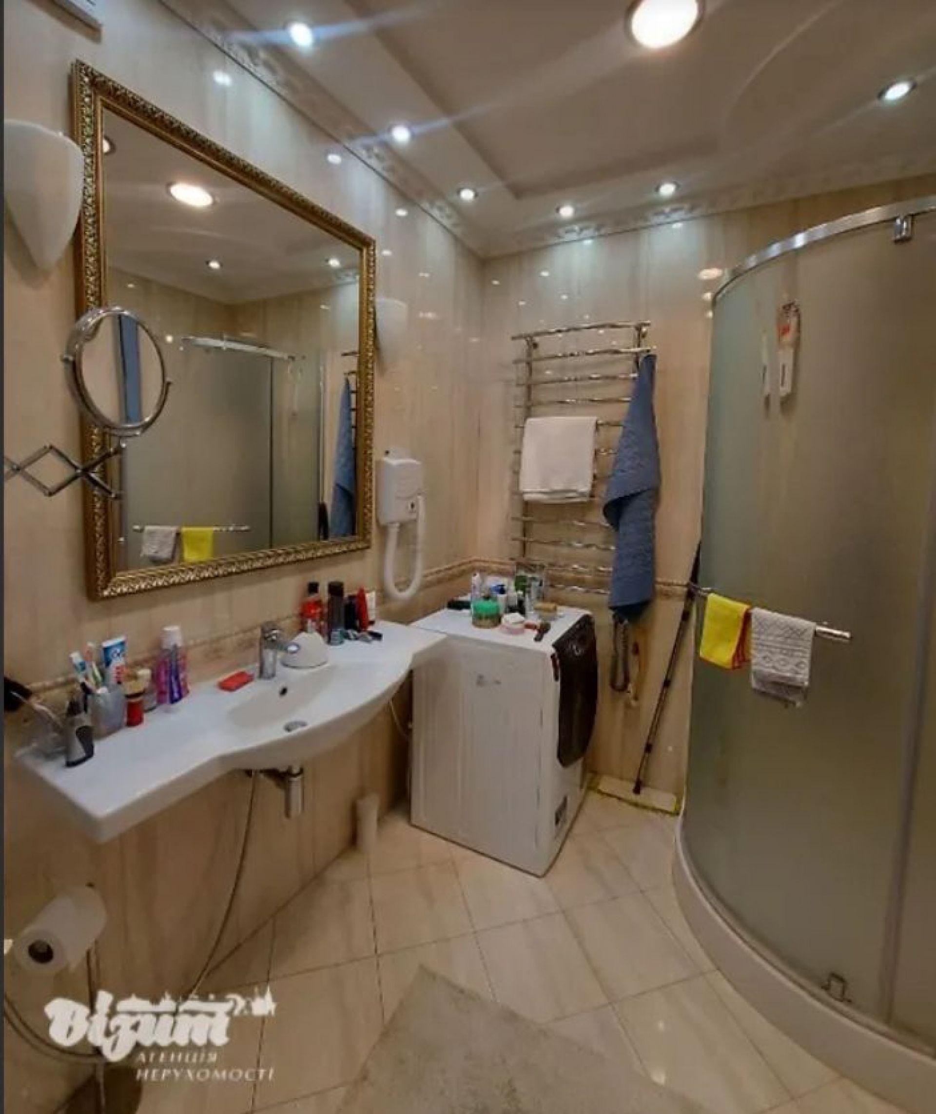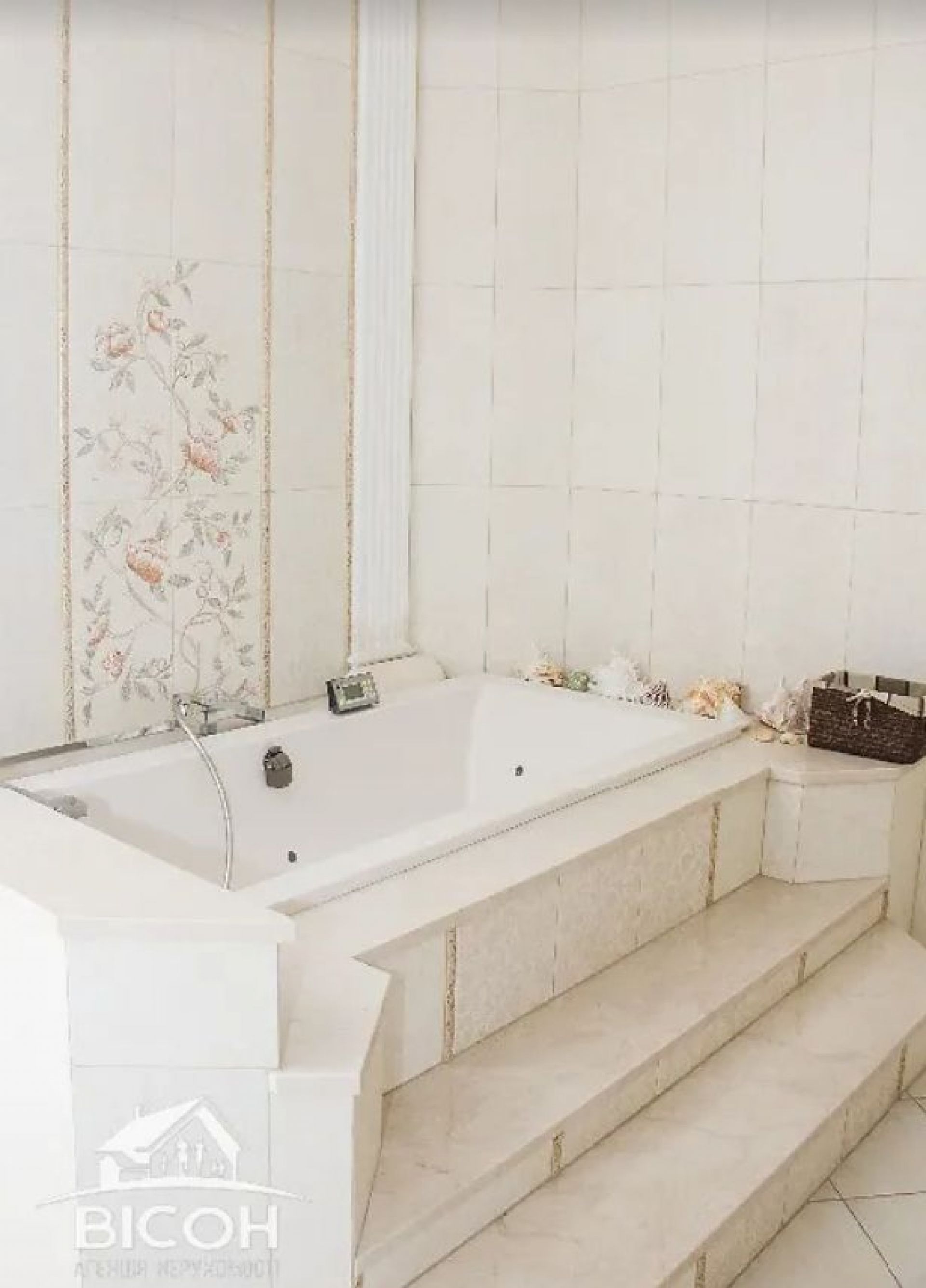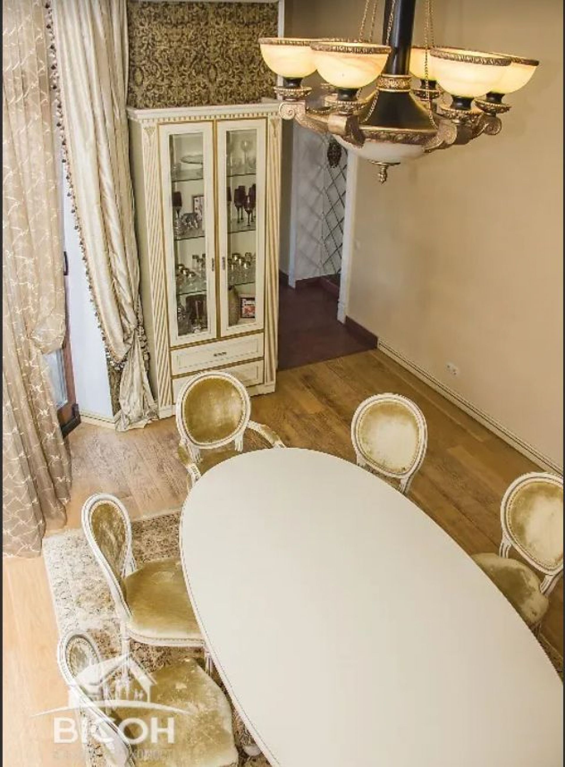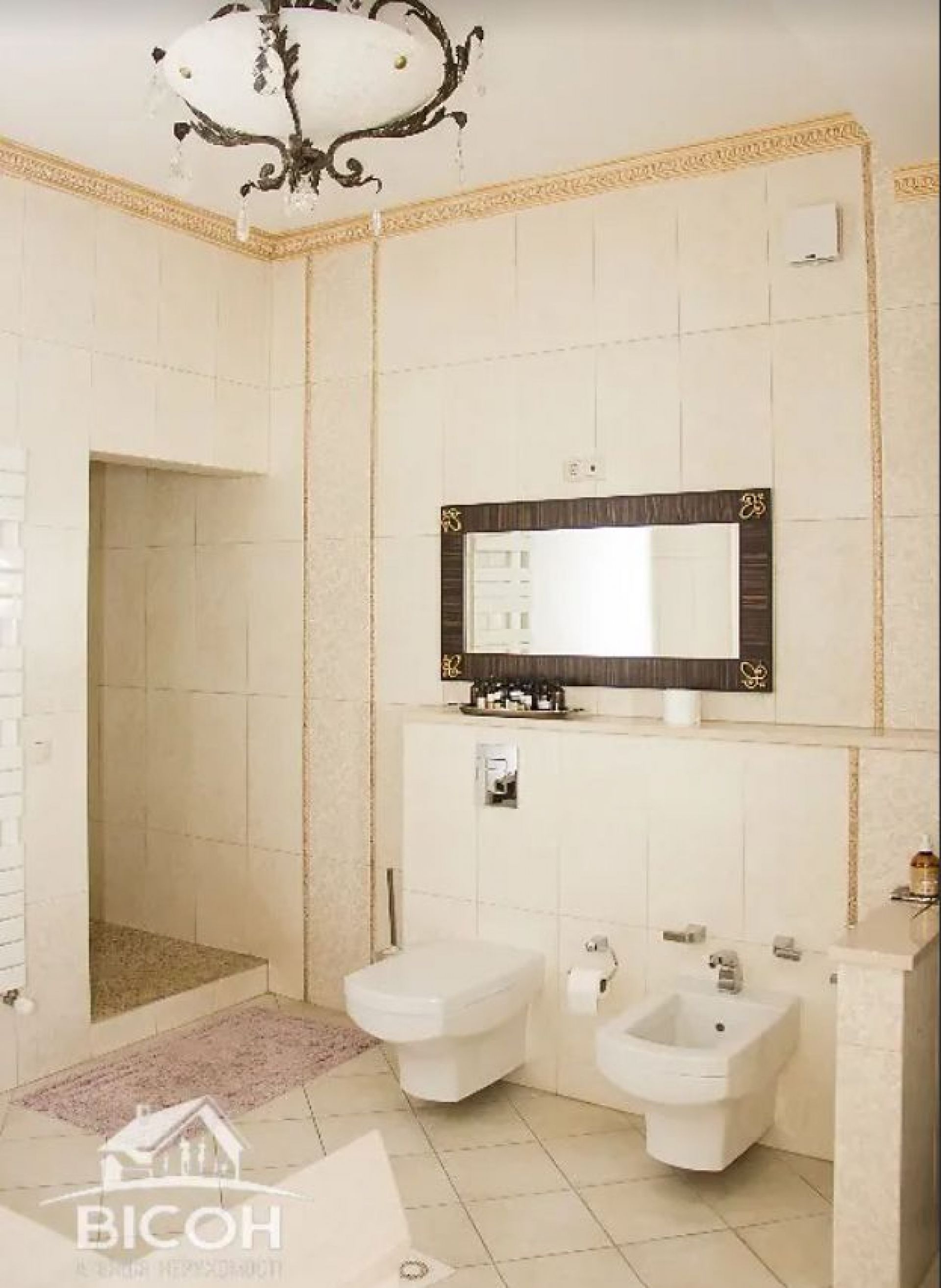 На продаж пропонують елітну п’ятикімнатну квартиру, в якій зроблений дизайнерський ремонт. В домівці налаштована система розумного будинку на базі Fibaro, працює система відеоспостереження. Опалення індивідуальне, з розумним керуванням vSmart. Стіни монолітно-цегляні. У кожній кімнаті є тепловий насос, кондиціонери. В санвузлі гібридна система приготування гарячої води: газ або електрика з накопичувачем. Також всередині містяться системи повітропостачання, фільтрування та пом’якшення вхідної води, приготування мінералізованої води для пиття. В кухні є кавова машина, посудомийка, холодильник, духова шафа, подрібнювач відходів, потужна витяжка. У санвузлі – італійська сантехніка: гідромасажна ванна, душова кабіна з трапом, два біде, два туалети, пральна та сушильна смарт машини. Є дві дитячі кімнати, гардероб, домашній кінотеатр. Квартира звукоізольована. Також влаштована окрема паливна кімната на дві квартири (вентиляційні установки, котли, накопичувачі, фільтри та компенсаційний бак, який подає воду при відключенні центрального водопостачання). Біля будинку розвинена інфраструктура: поруч дитсадок, школа, аптека, продуктовий міні-маркет тощо.