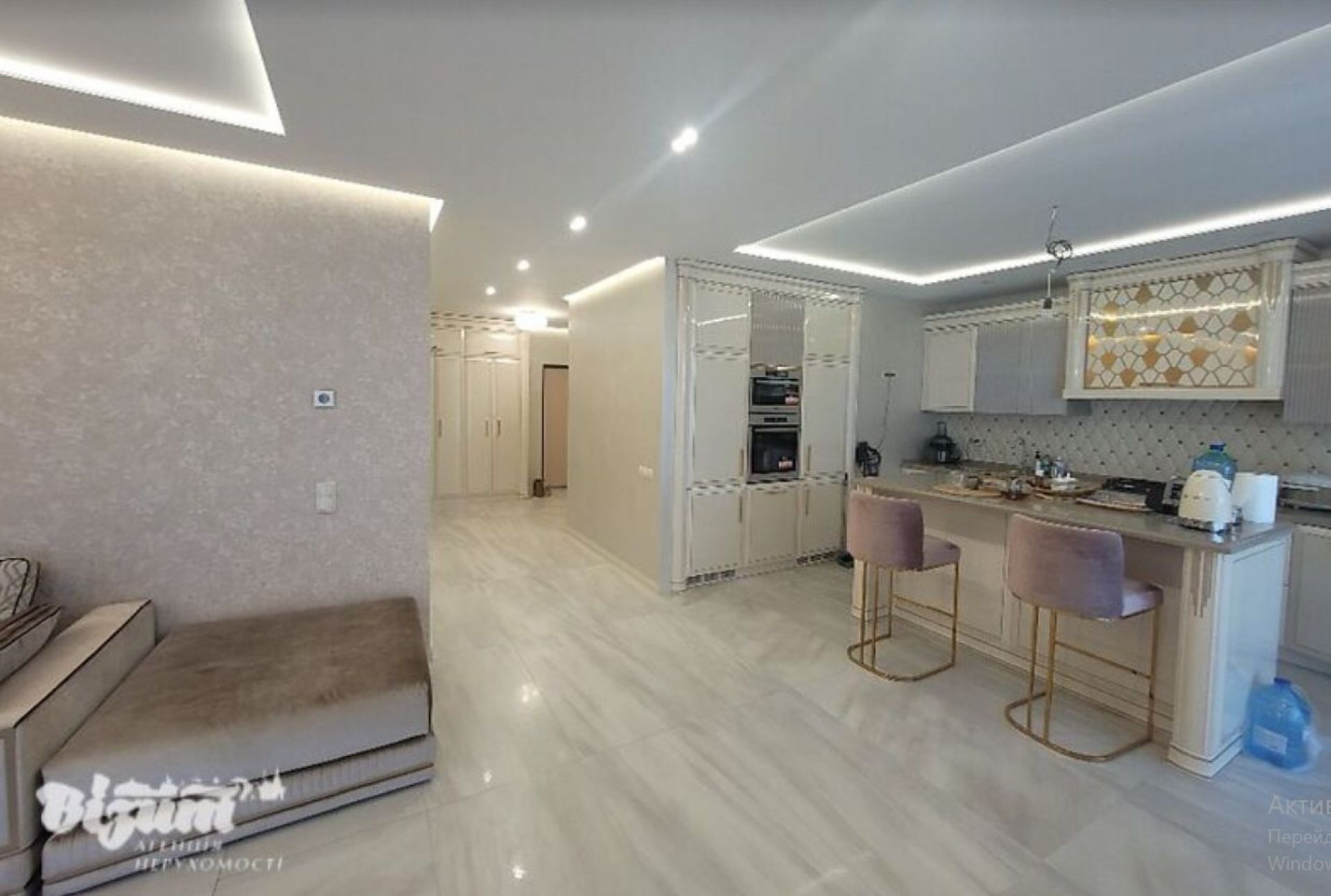 В оголошенні міститься інформація про п’ятикімнатну квартиру у відмінному стані з дизайнерським ремонтом. Всередині роздільні кімнати, зокрема два санвузли, натяжна стеля, є підігрів підлоги. Вхідні двері броньовані, встановлені металопластикові вікна. Опалення індивідуальне, в квартирі міститься двоконтурний котел. Стіни з цегли. Також є всі меблі, вбудована шафа-гардероб, система очищення питної води, посудомийна машина тощо. Ліфта, щоб дістатись до квартири, немає. Будинок, в якому розташована оселя, розташований поблизу школи та дитячого садочка. Квартира, що важливо, перевірена інспектором RIA.