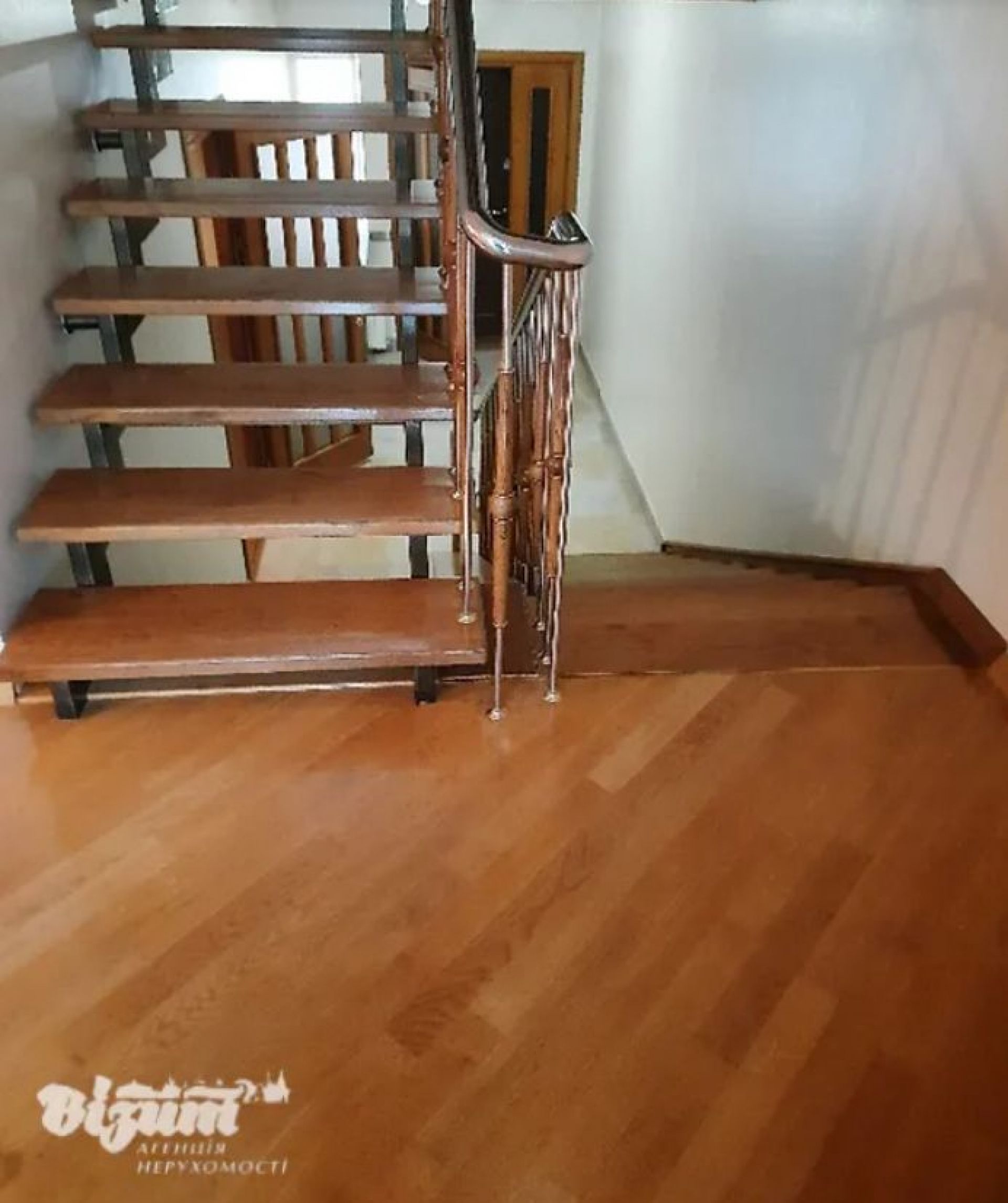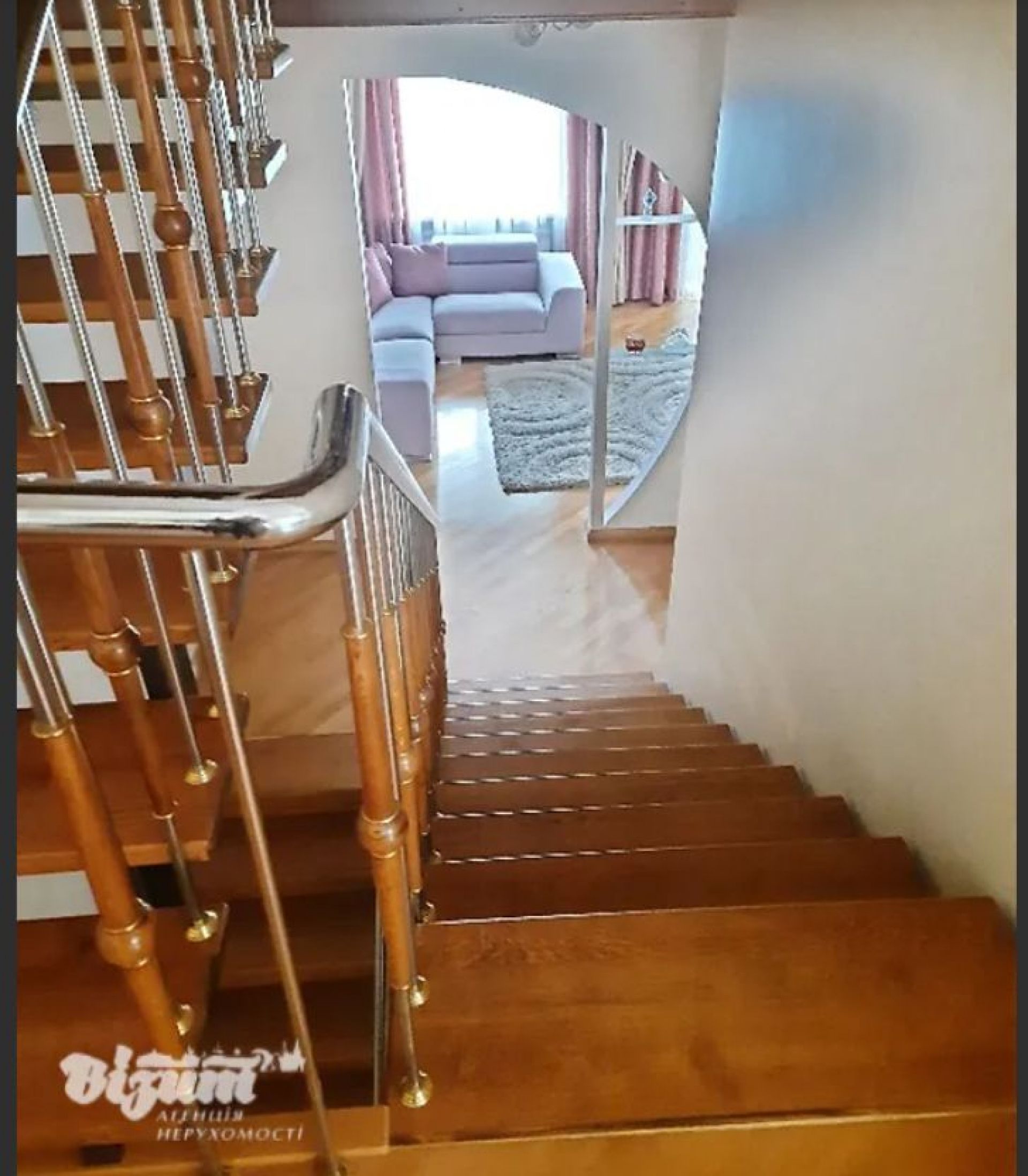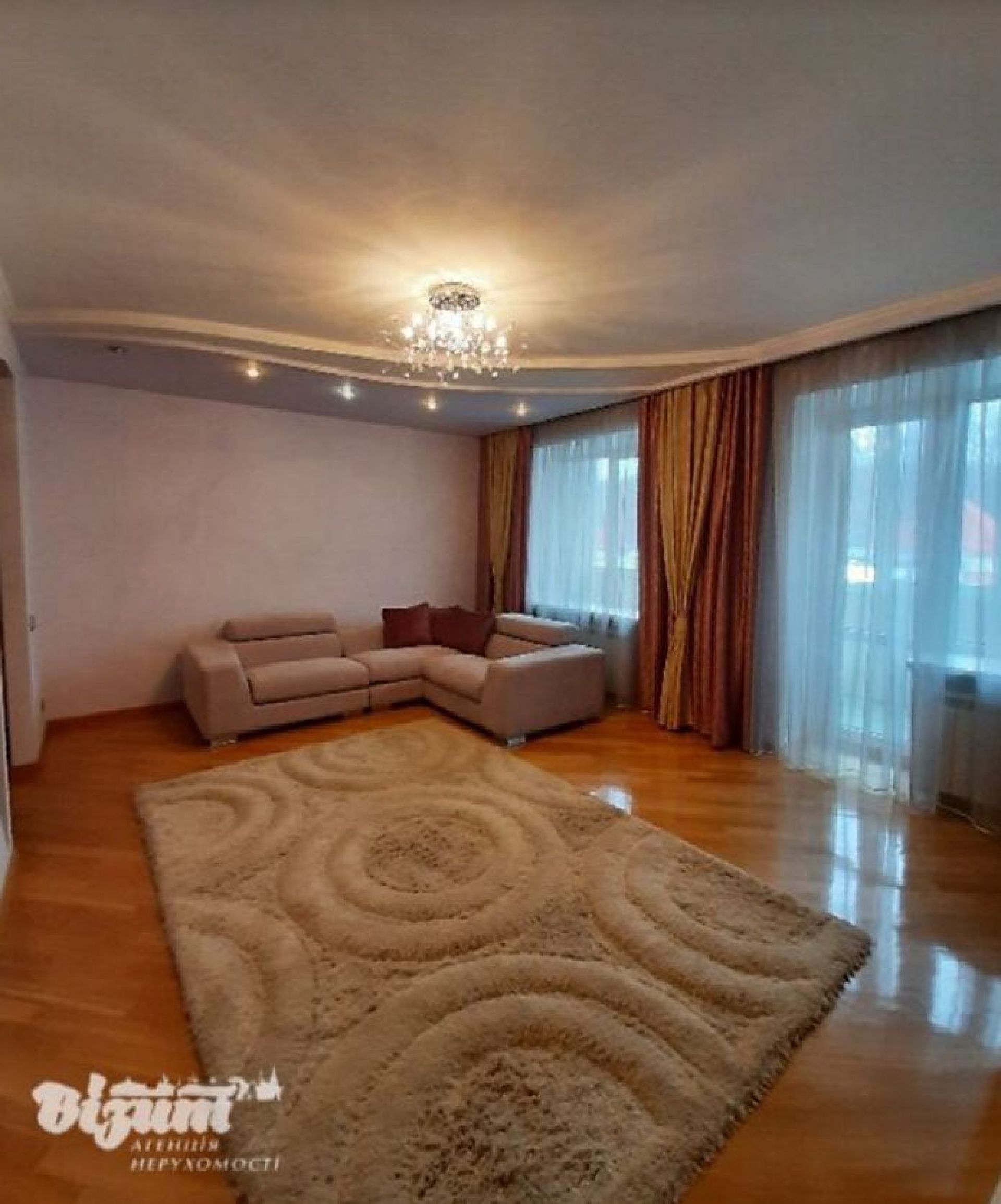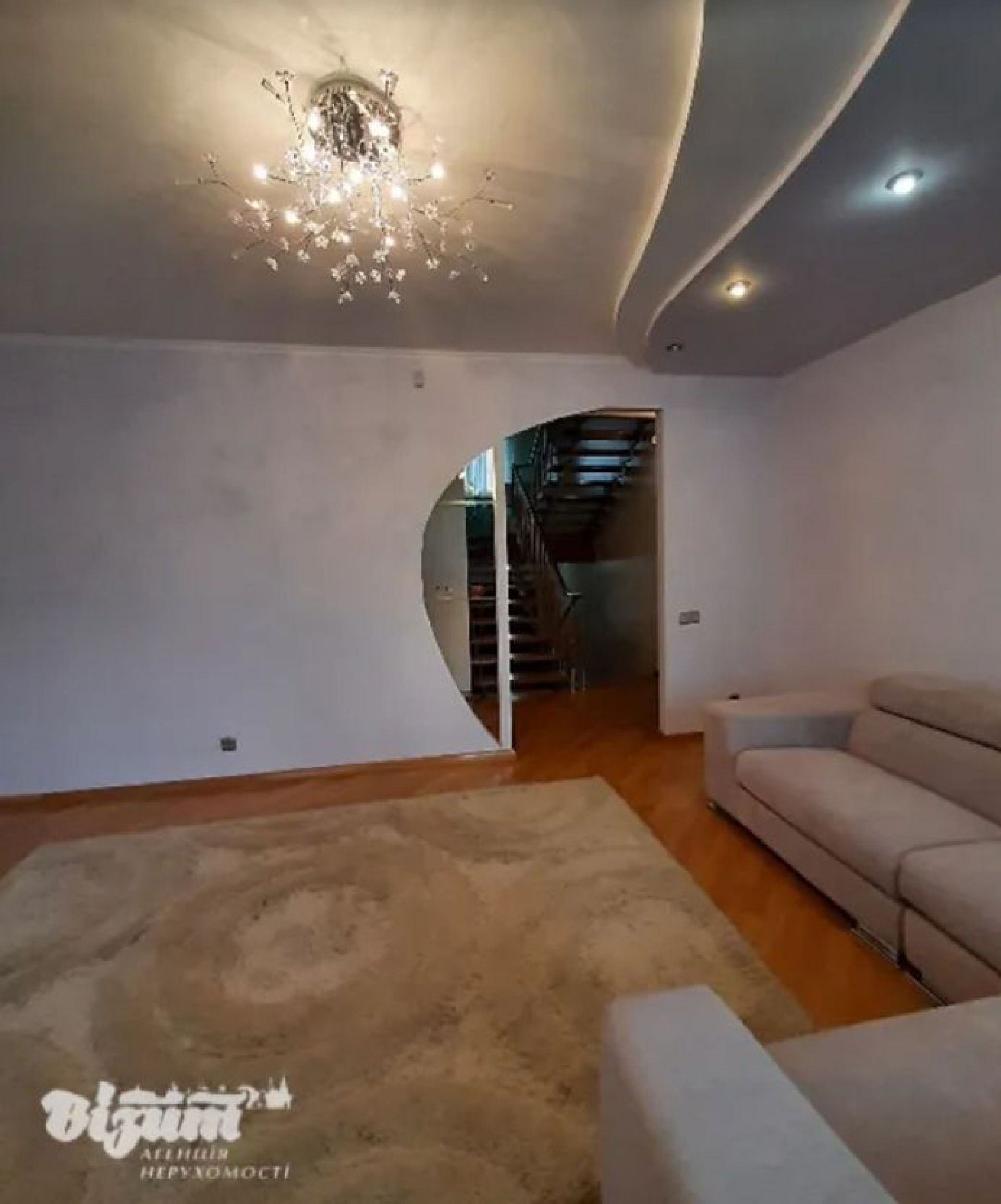 Квартира преміум-класу (є позначка «Елітна квартира») з дизайнерським ремонтом міститься у цегляному триповерховому будинку на 4 сім’ї, має окремий вхід та місце для паркування автомобіля. Прибудинкова територія огороджена, є озеленена зона. В квартирі індивідуальне газове опалення, двоконтурний котел, підлога підігрівається, стіни з цегли. Є автономна система вентиляції, встановлені металопластикові вікна. Сходи зроблені з модрини. На нижньому поверсі облаштоване приміщення для зберігання речей побутового вжитку, на першому – веранда, коридор, сходи на другий поверх. Там є простора вітальня, кухня-столова з німецьким гарнітуром, суміжний санвузол з ванною, камін на дровах, облицьований мармуром, сходи. Натомість на третьому поверсі спальна кімната, балкон, дитяча кімната, санвузол з душем та біде. Все у квартирі, як пишуть продавці, продумано до найменших деталей і зроблено з великою любов’ю. Житло перевірене DOM.RIA у Держреєстрі нерухомості.