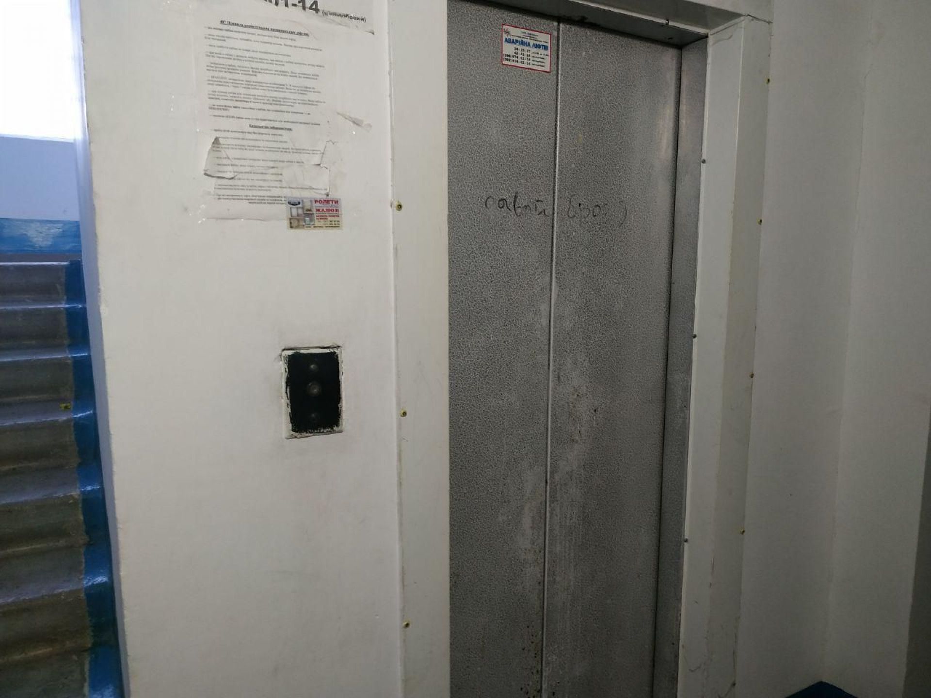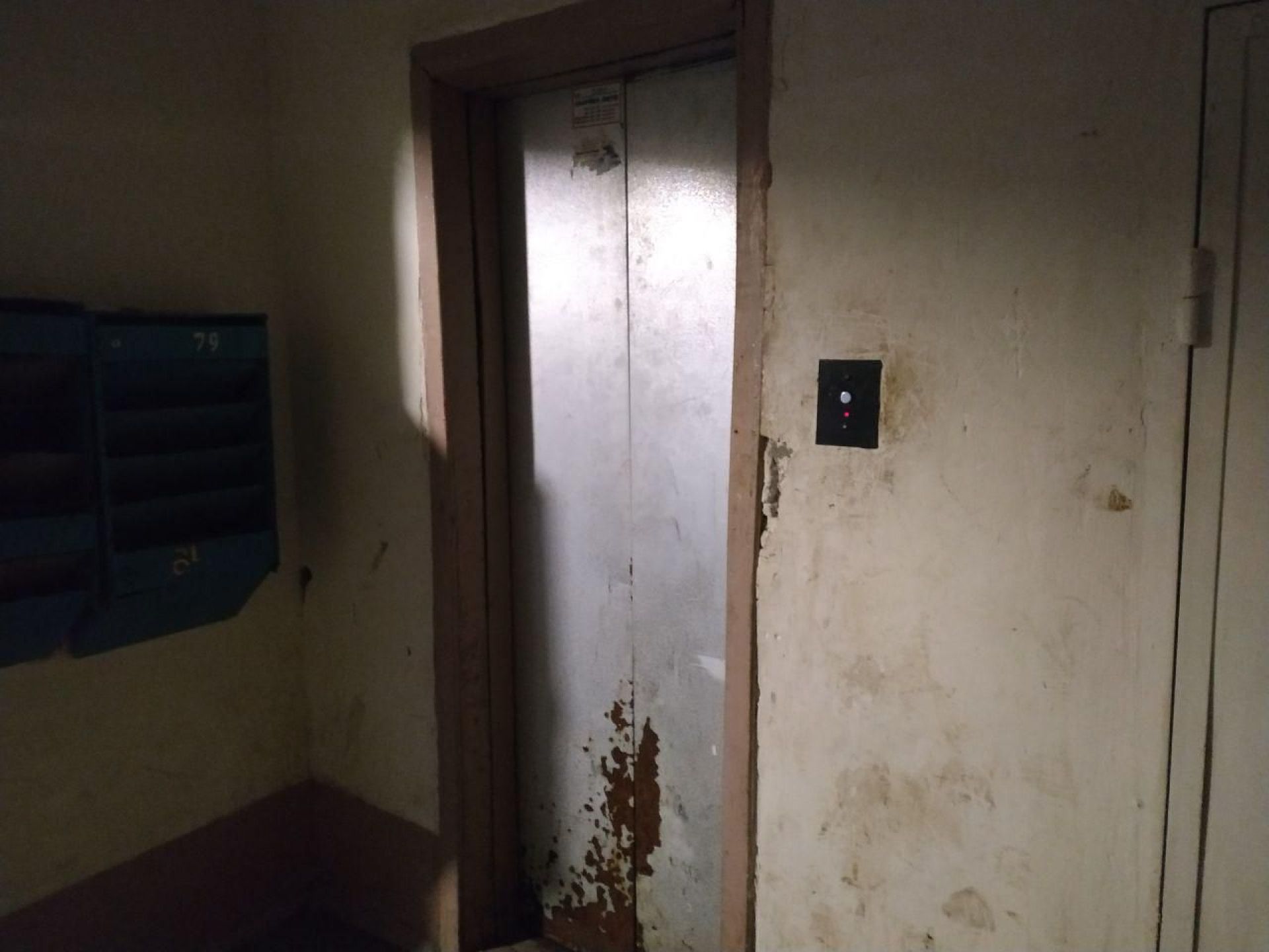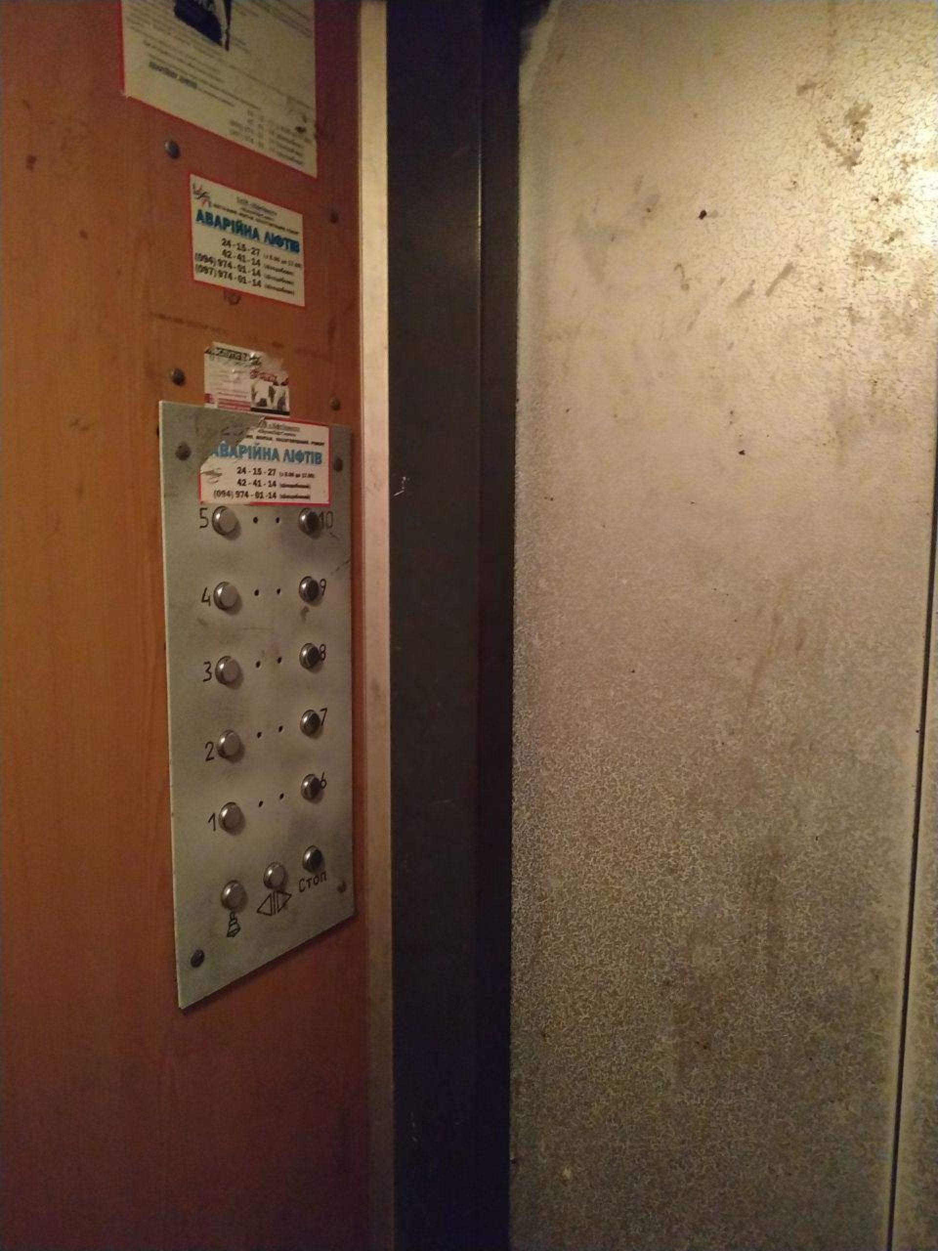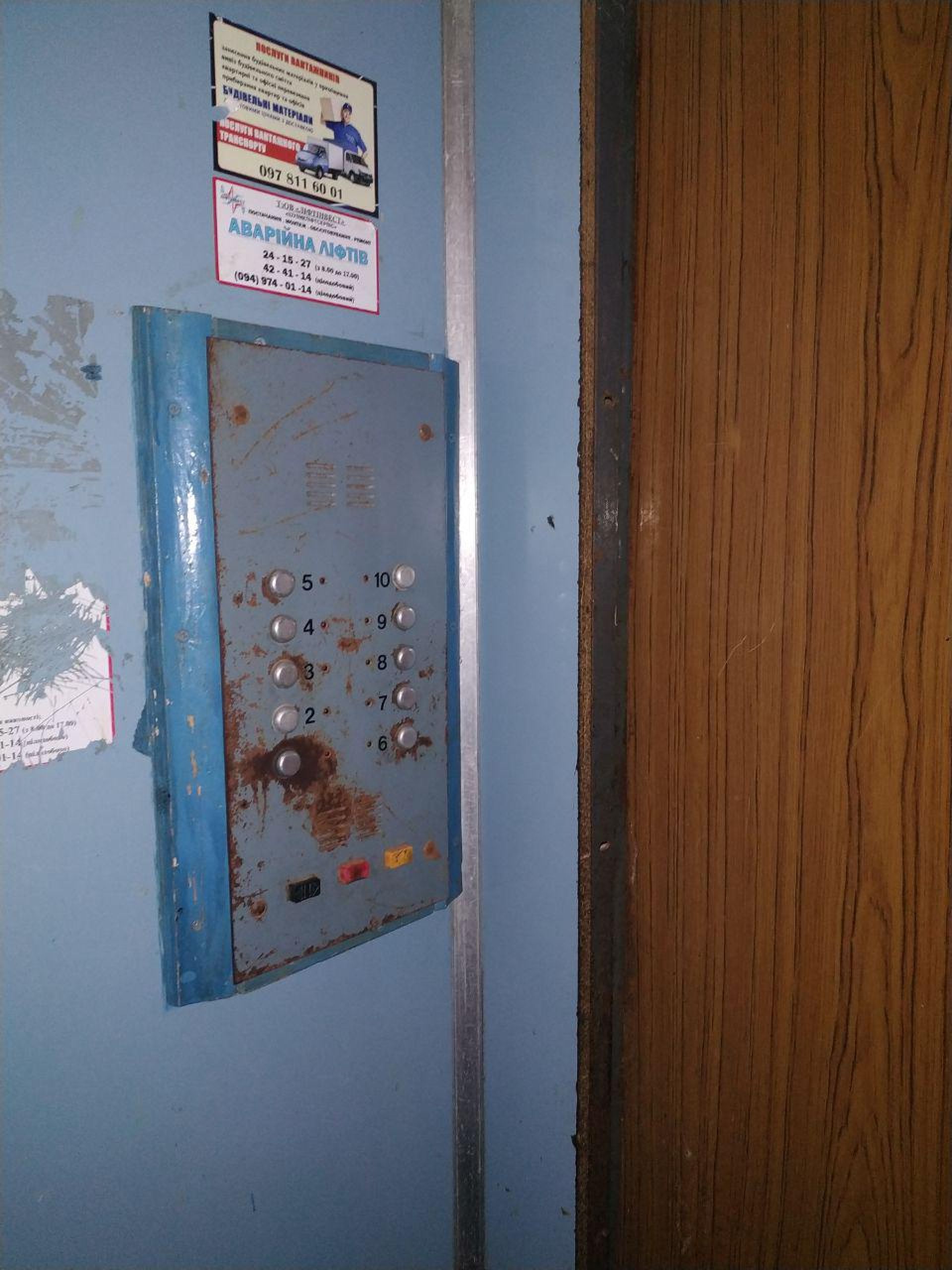 До того ж ліфт ржавий, а щоб розгледіти, як виглядають двері, довелося вмикати спалах на телефоні.
