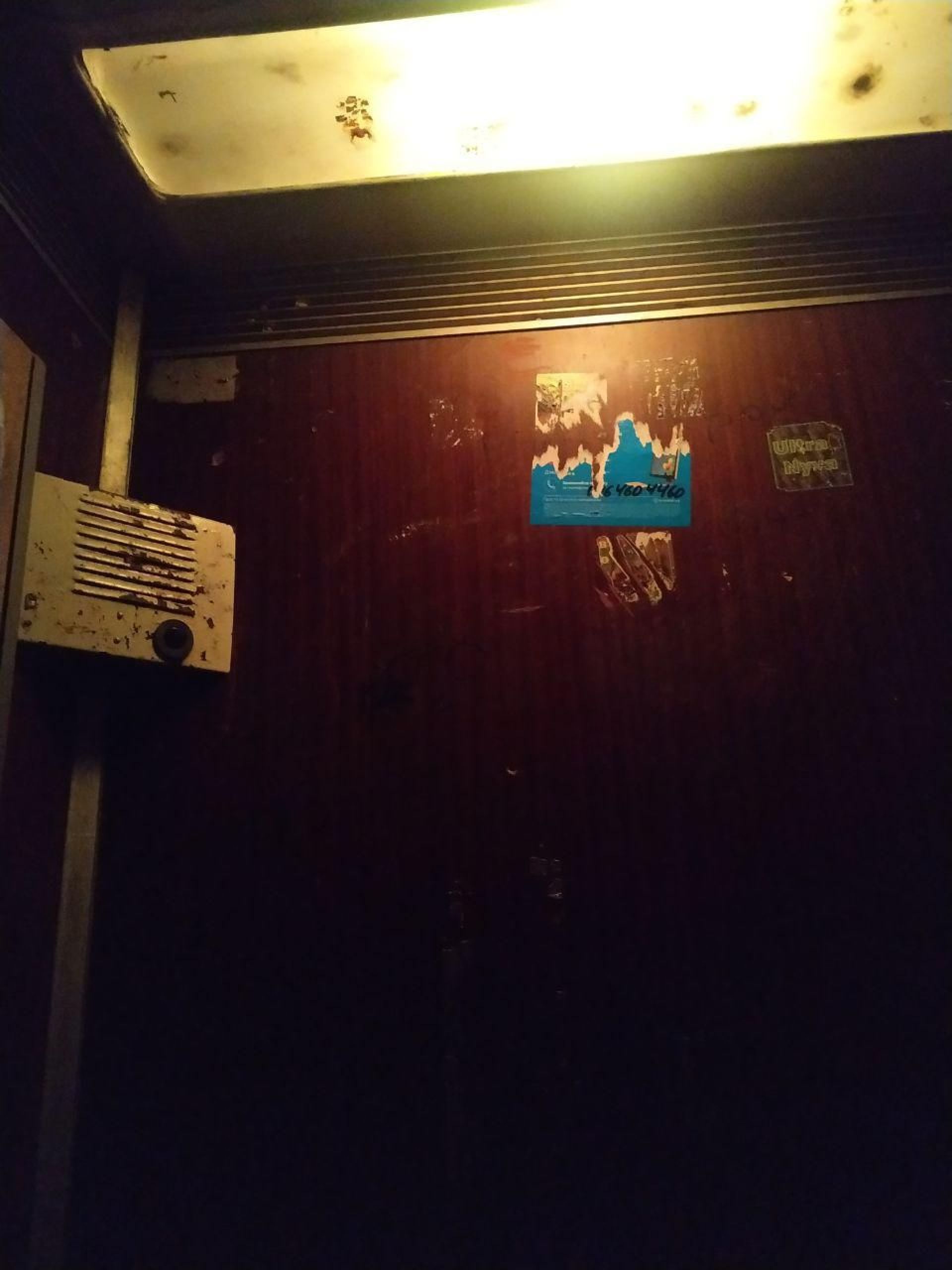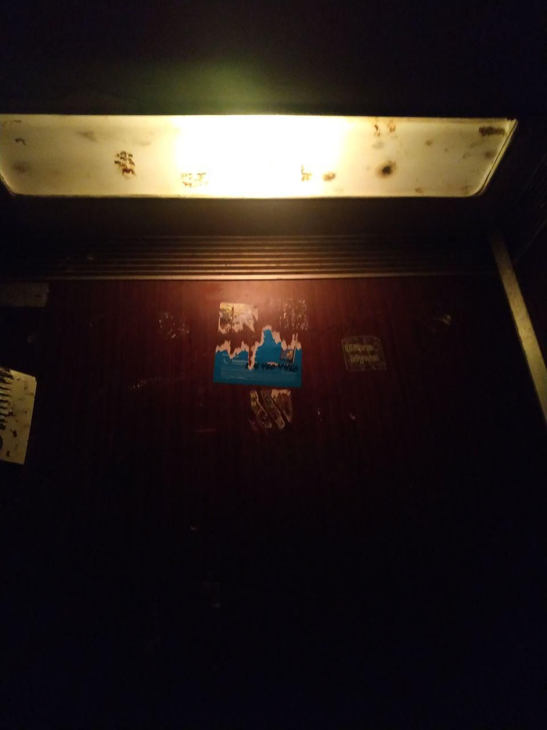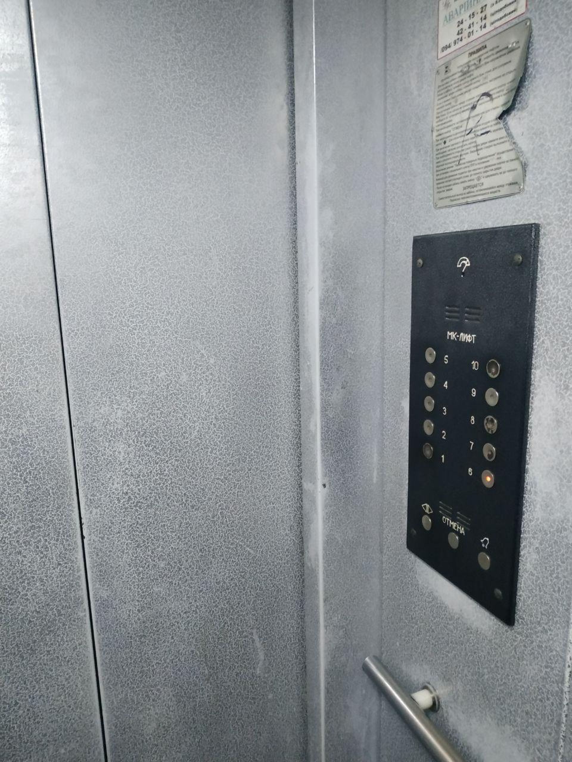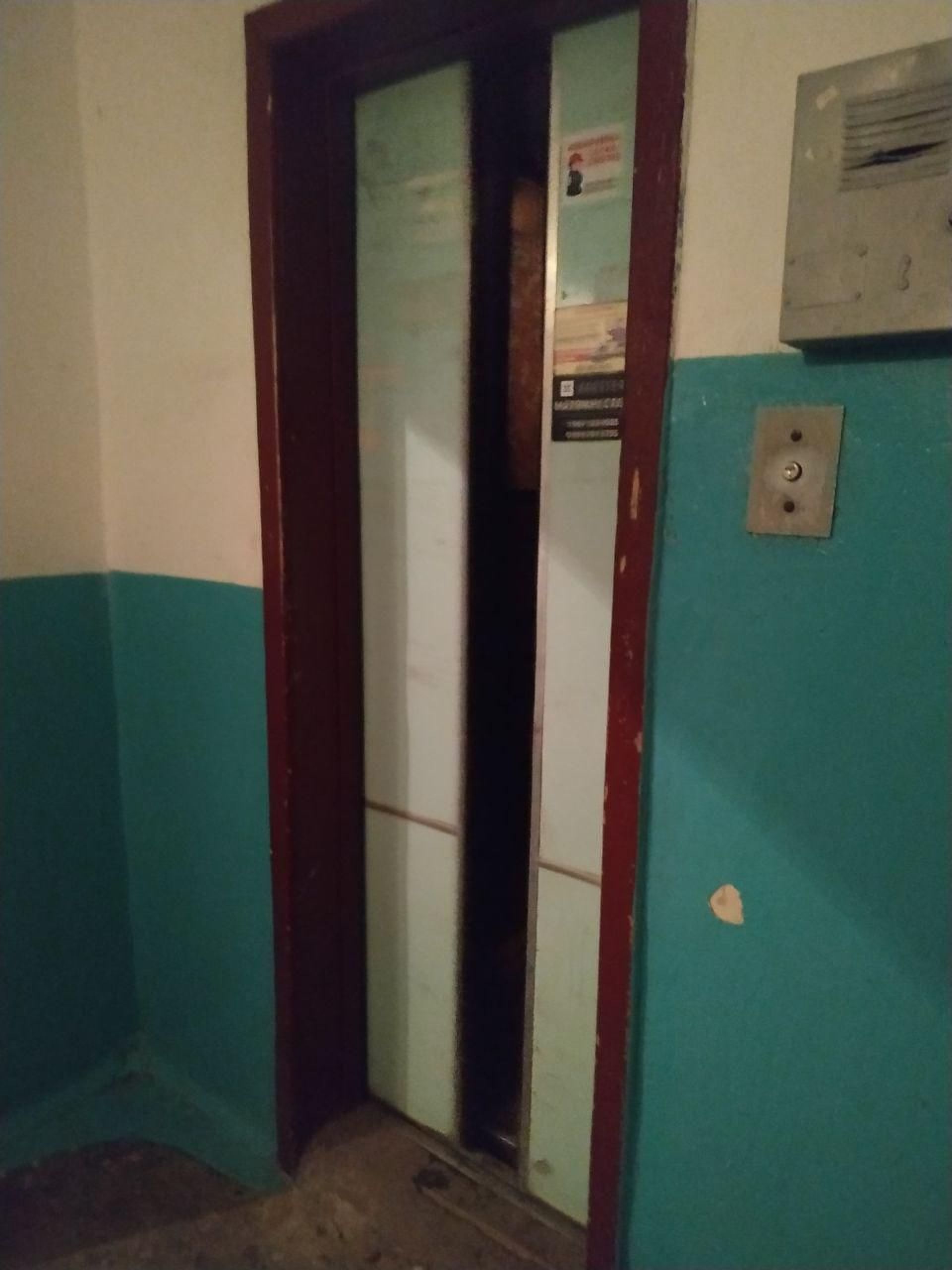 До того ж ліфт ржавий, а щоб розгледіти, як виглядають двері, довелося вмикати спалах на телефоні.