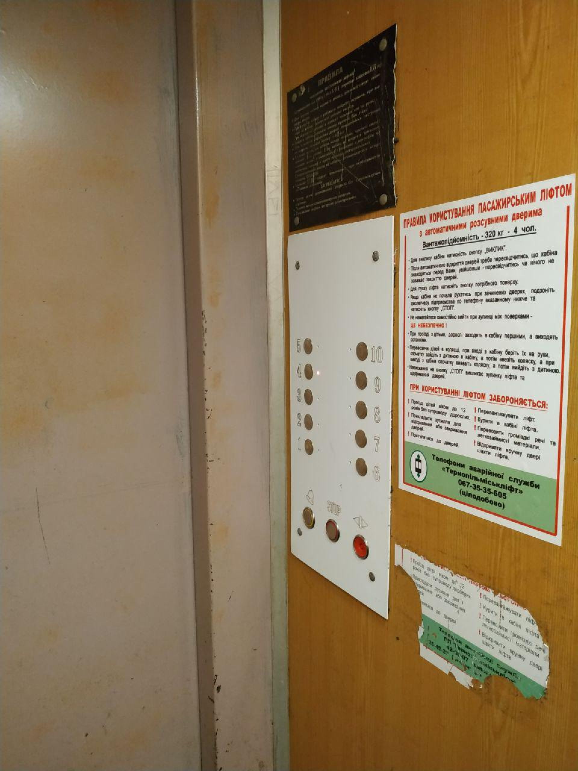 Ззовні на дверях ліфту є інформація з правилами користування.