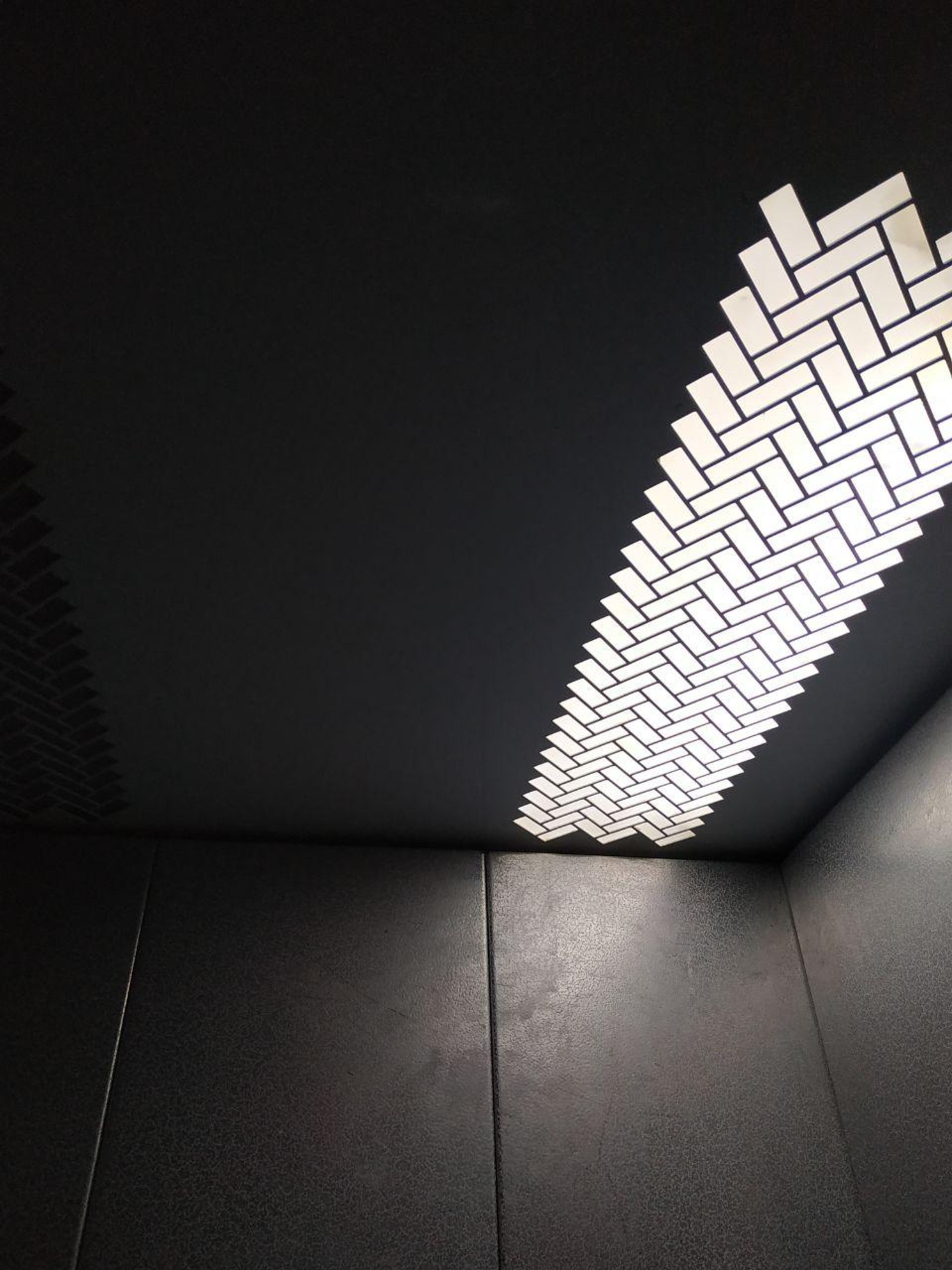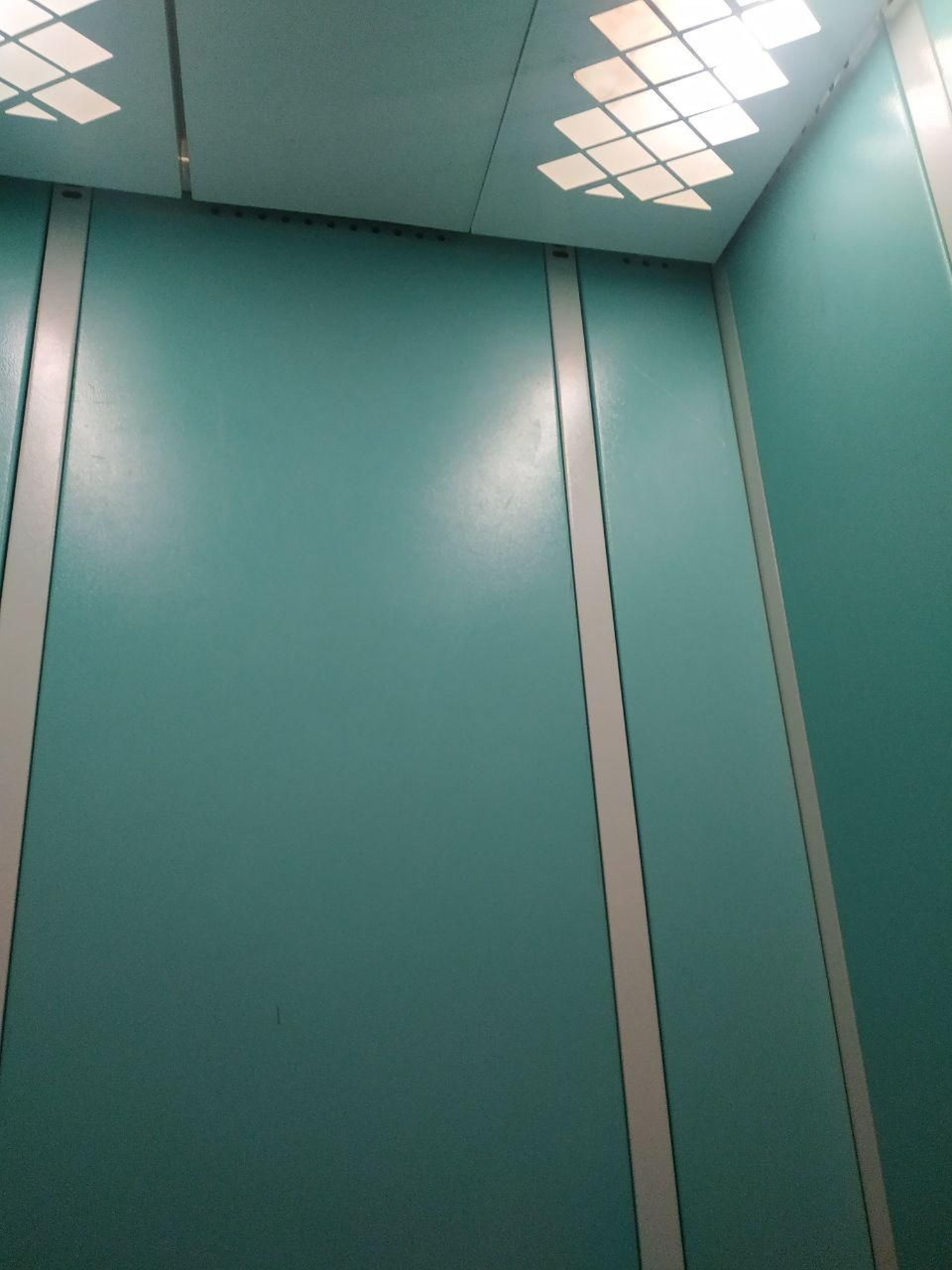 Сам ліфт оббитий металевими листами срібного кольору, а тому навіть тьмяне світло вдосталь відбивається від них і створює рівномірне освітлення.