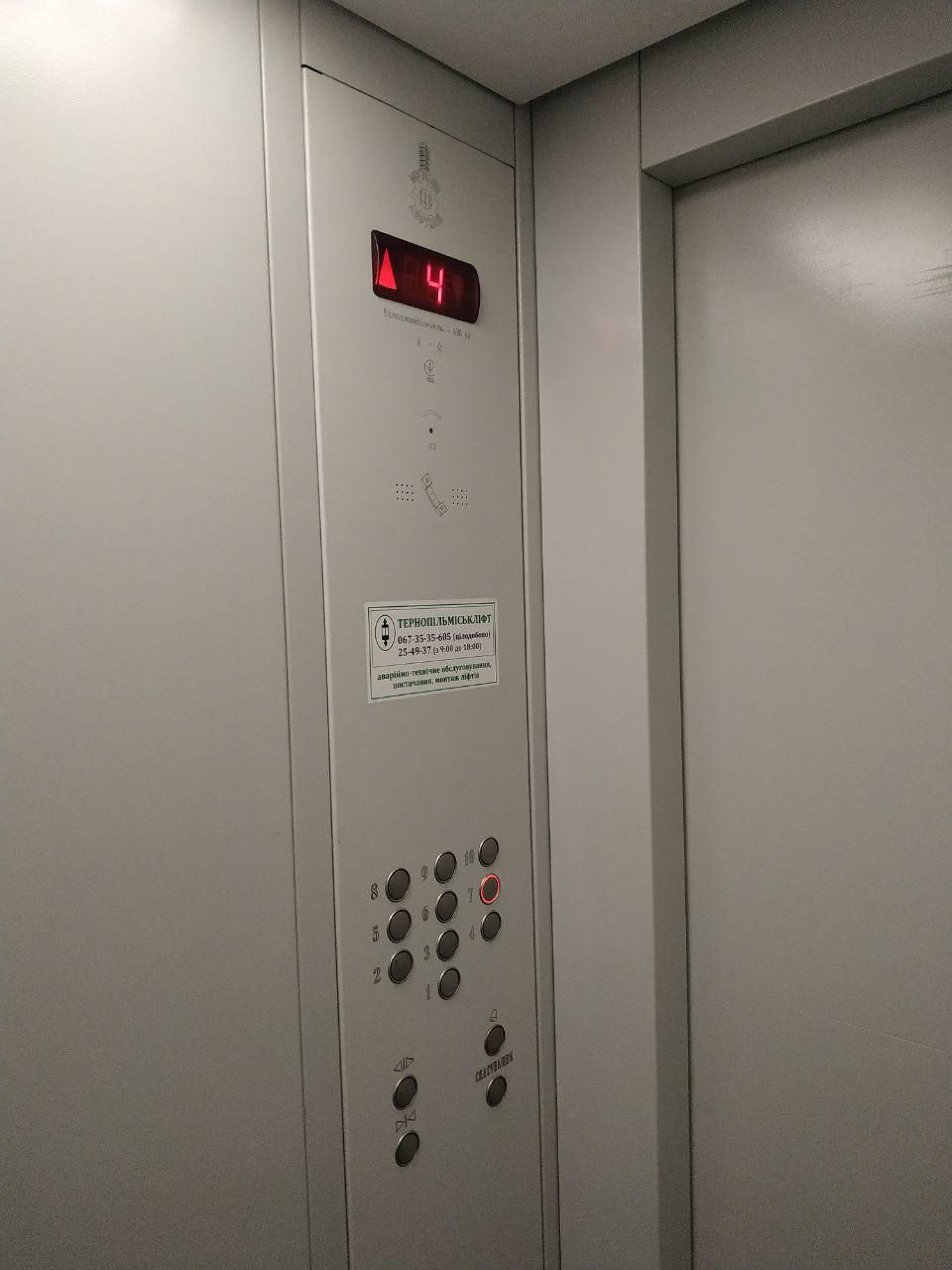 Ліфт доволі чистий, але світло є, хоча дещо тьмяне. Кнопки ліфта металеві і також чисті.