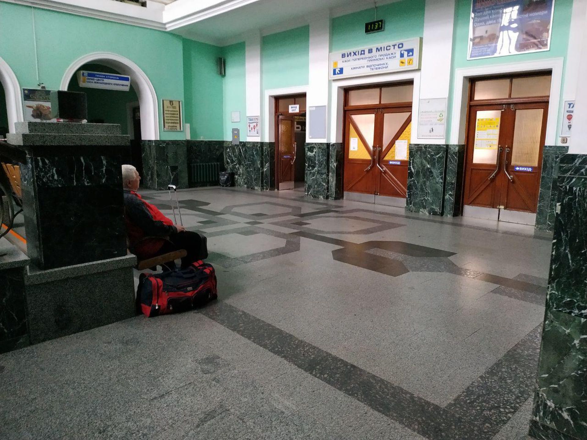 Всередині залізничного вокзалу людей небагато. Усюди в приміщенні є пам'ятки про симптоми, шляхи передачі та профілактику коронавірусу.