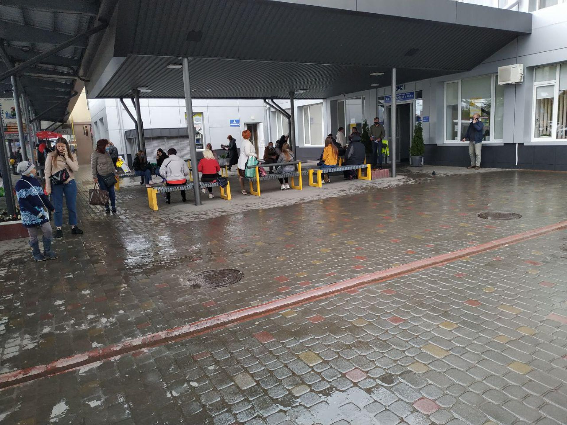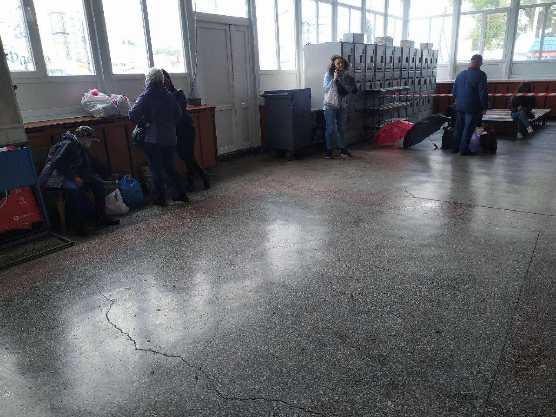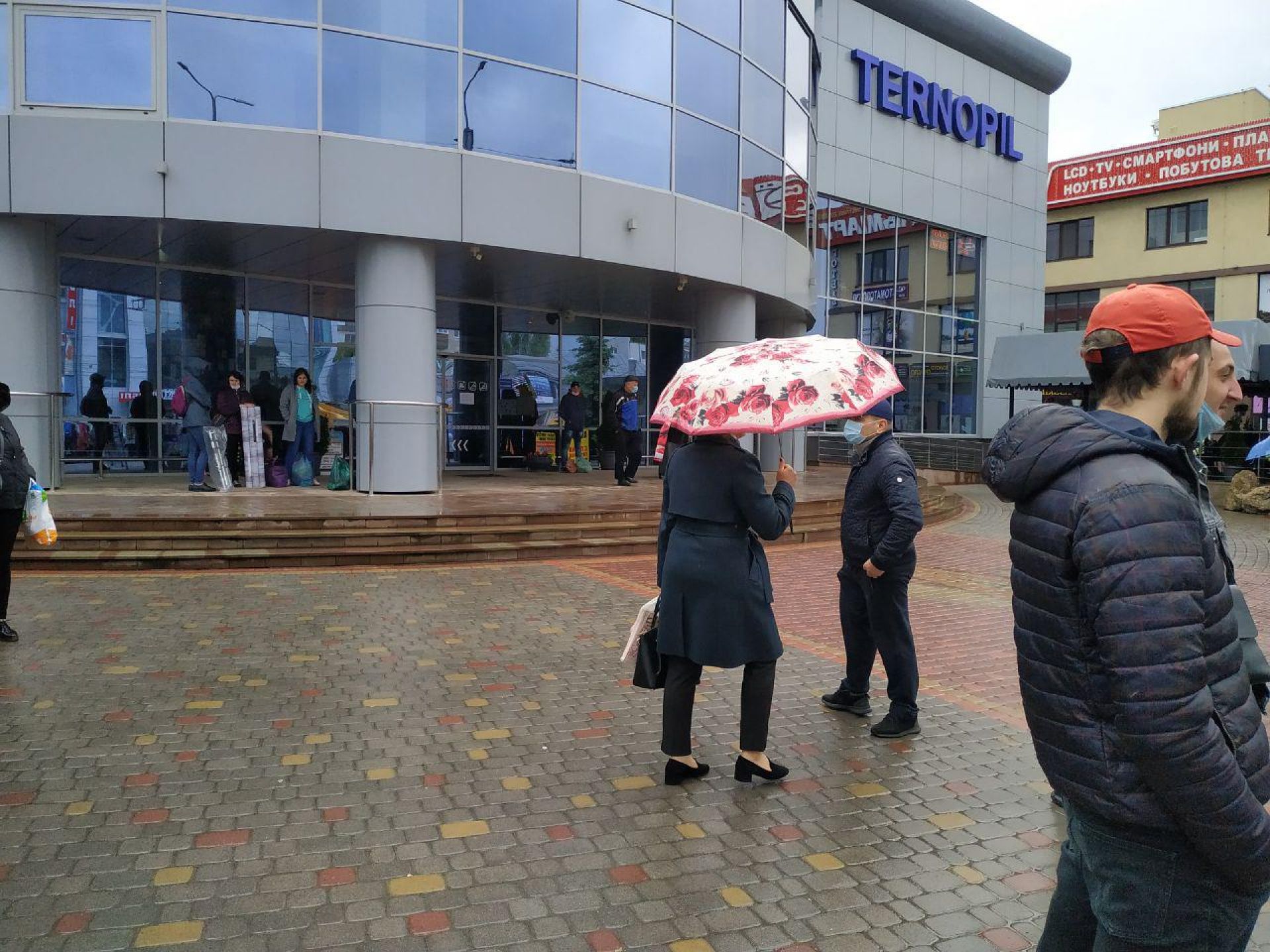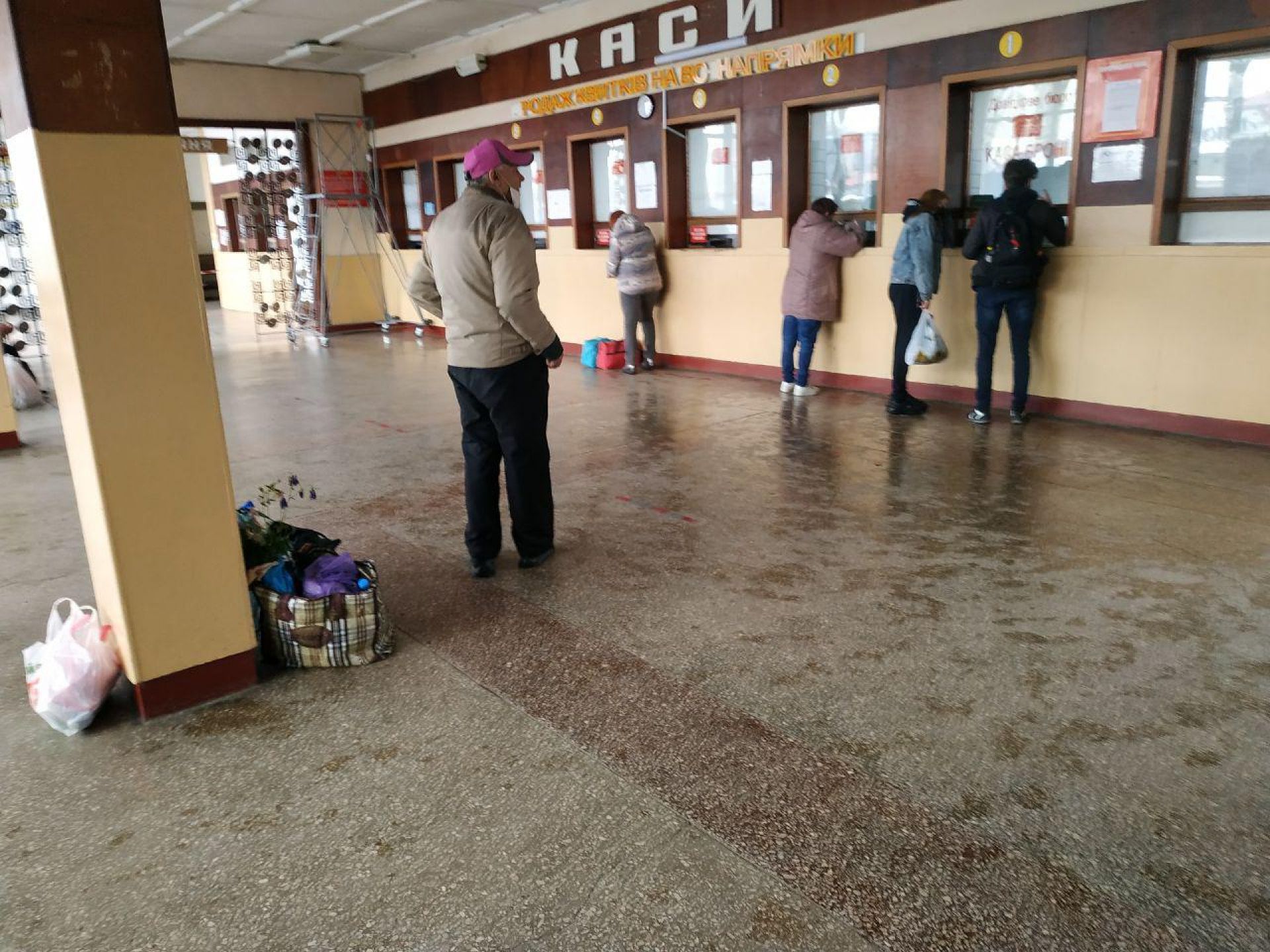 Міський автовокзал в Тернополі доволі багатолюдний. Центральний вхід поки що залишається закритим. Диспетчер постійно нагадує про дотримання карантинних вимог та наголошує, аби відвідувачі не знаходилися довго в приміщенні.