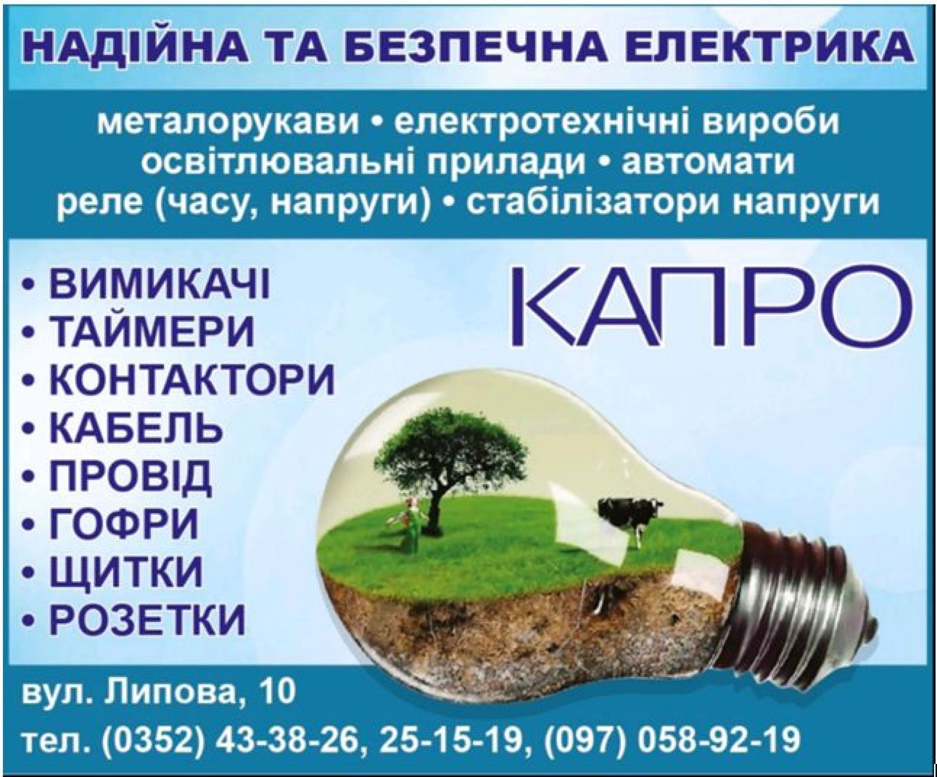 КАПРО - це надійна і безпечна електрика від надійного постачальника!
