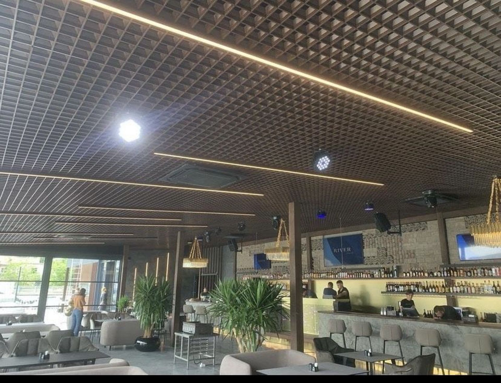 Натяжні стелі «Delux» монтаж армстронг, грильято і кубічна рейка