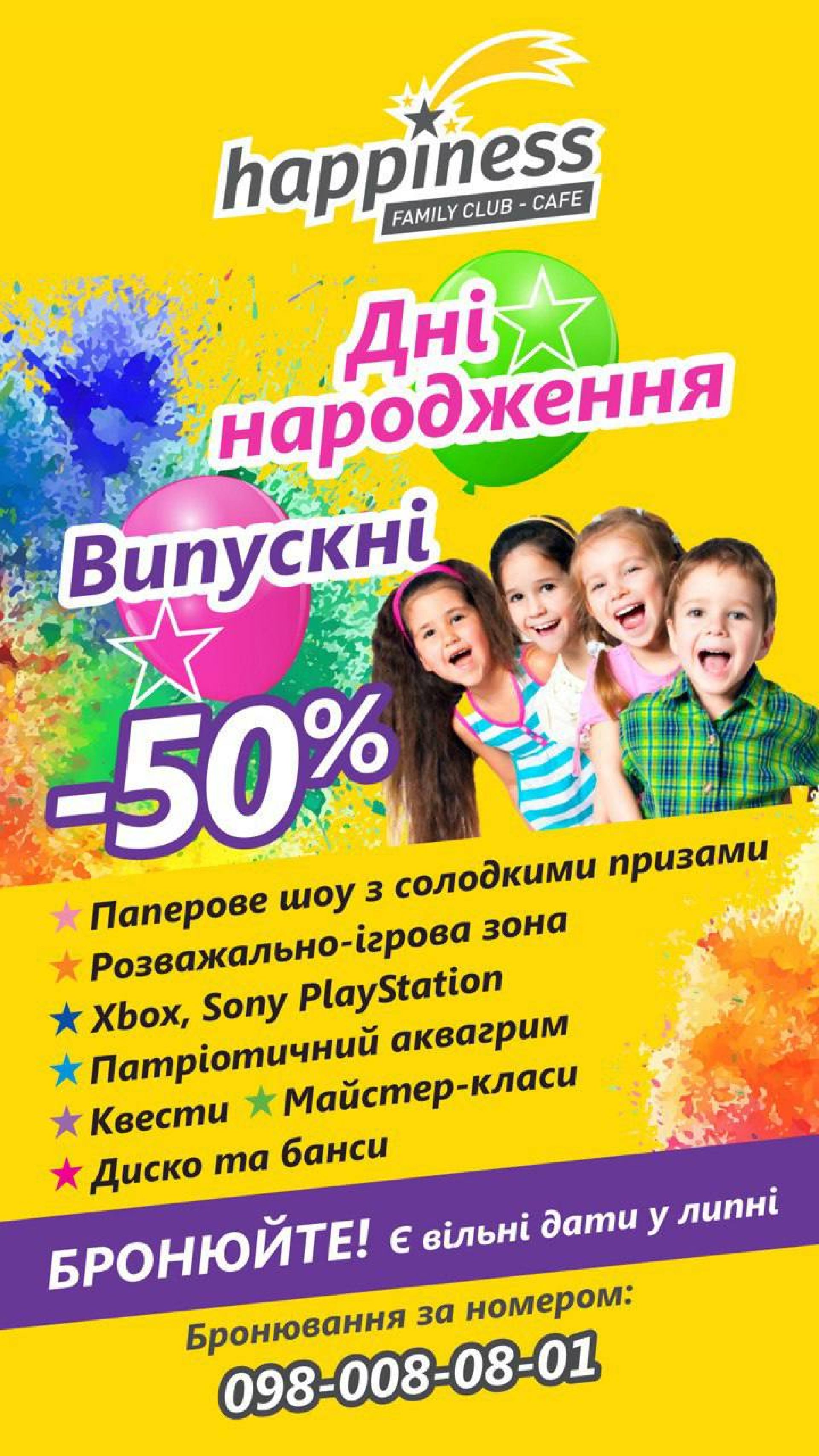 Сімейний клуб-кафе "Happiness" (Хепінес)–це розваги, смачна кухня та сімейний відпочинок.