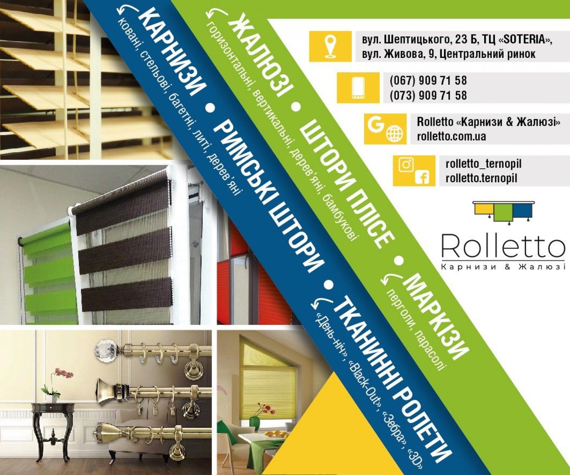 Пропонуємо: карнизи, рулонні штори, жалюзі горизонтальні, жалюзі вертикальні, римські штори, маркізи, москітні сітки, сонцезахисні тканинні ролети, бамбукові та дерев’яні жалюзі, штори плісе, перголи та інші види якісної продукції для сонцезахисту приміщень та декору вікон.