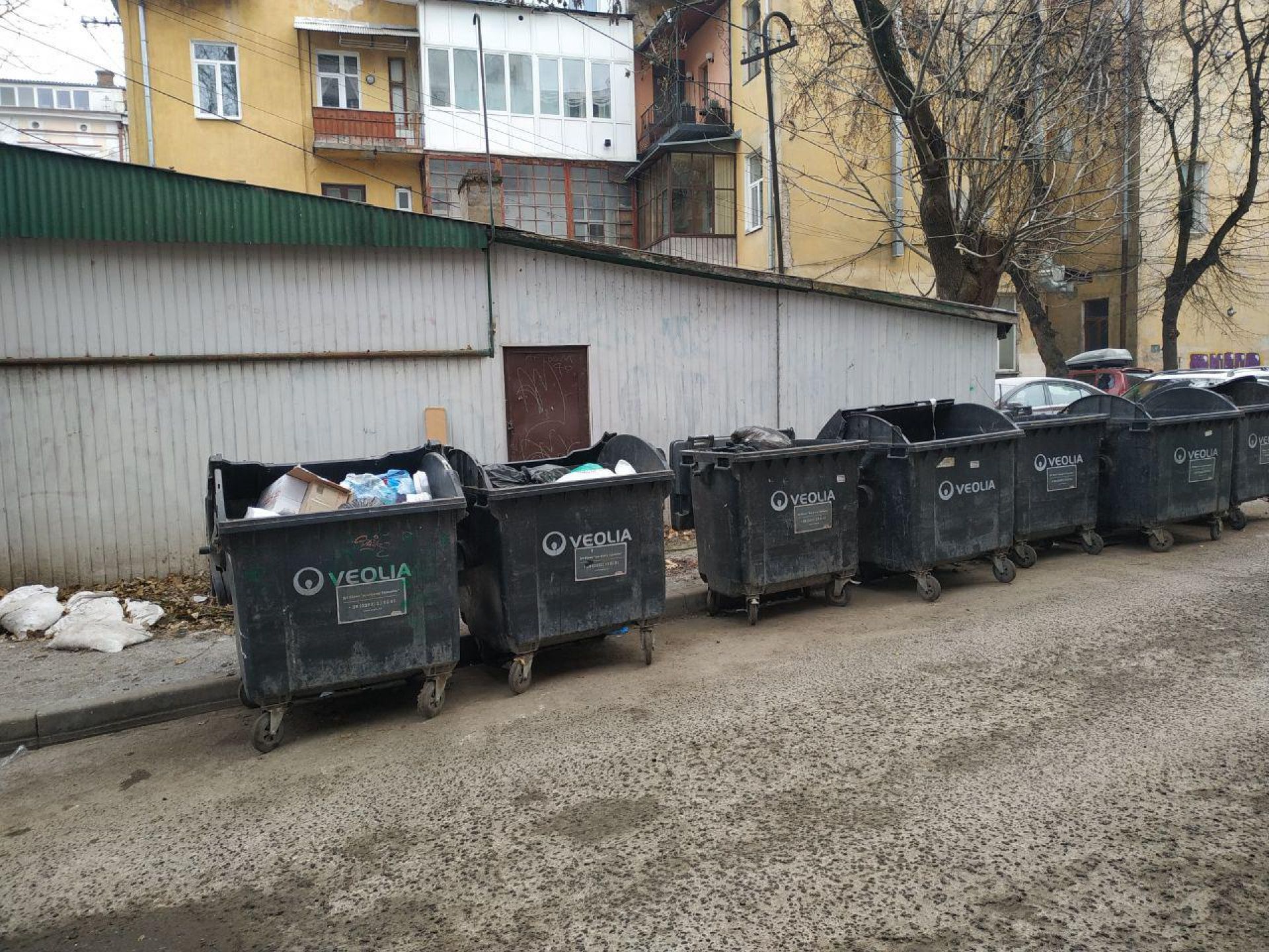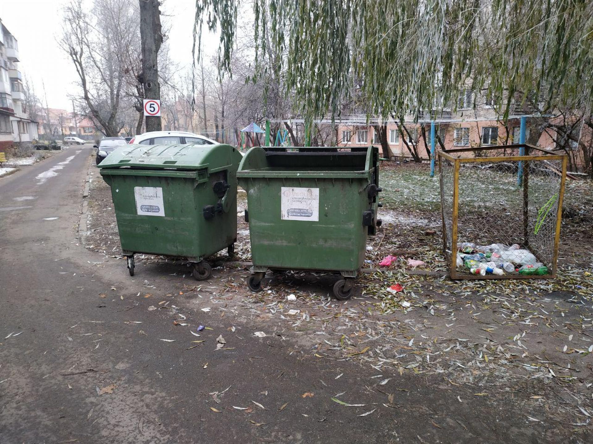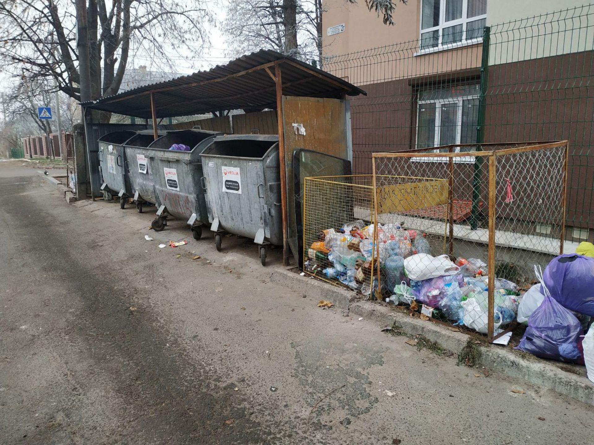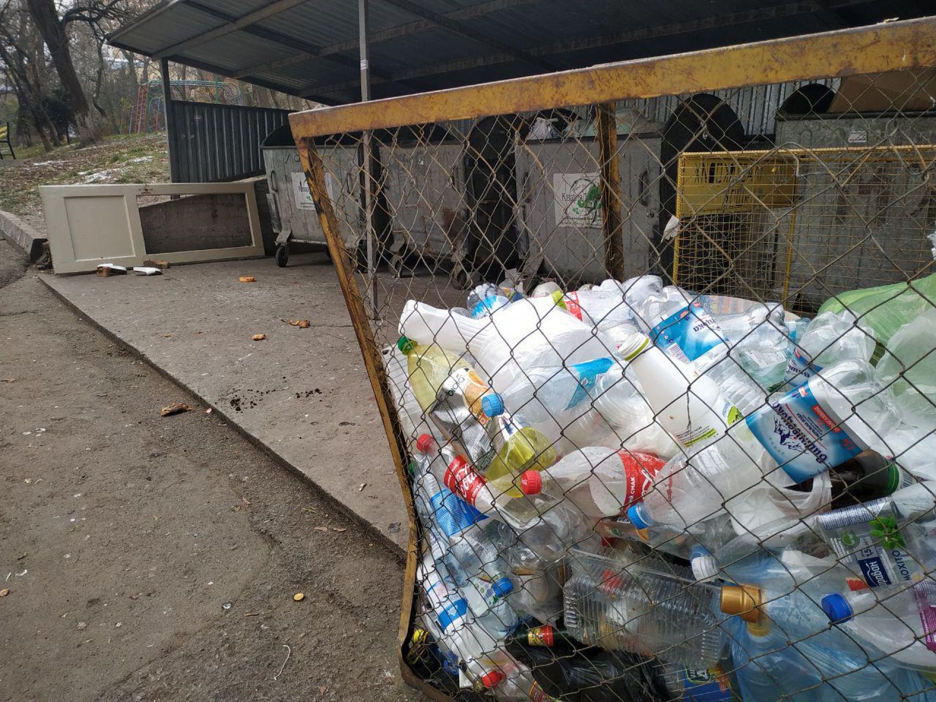 Така ж картина і біля смітників на вулиці Максима Кривоноса. Контейнери для пластику є, але не всі пластикові пляшки знаходяться саме в них.