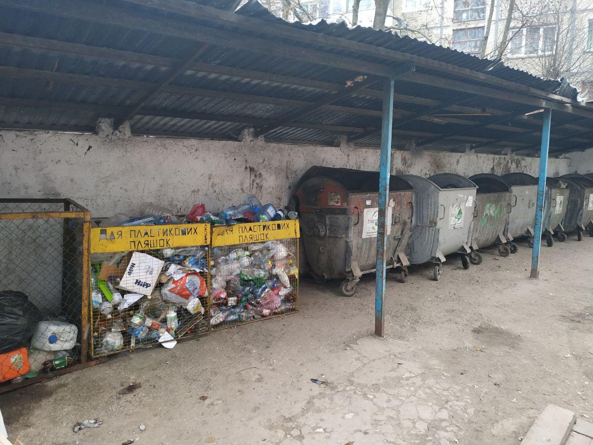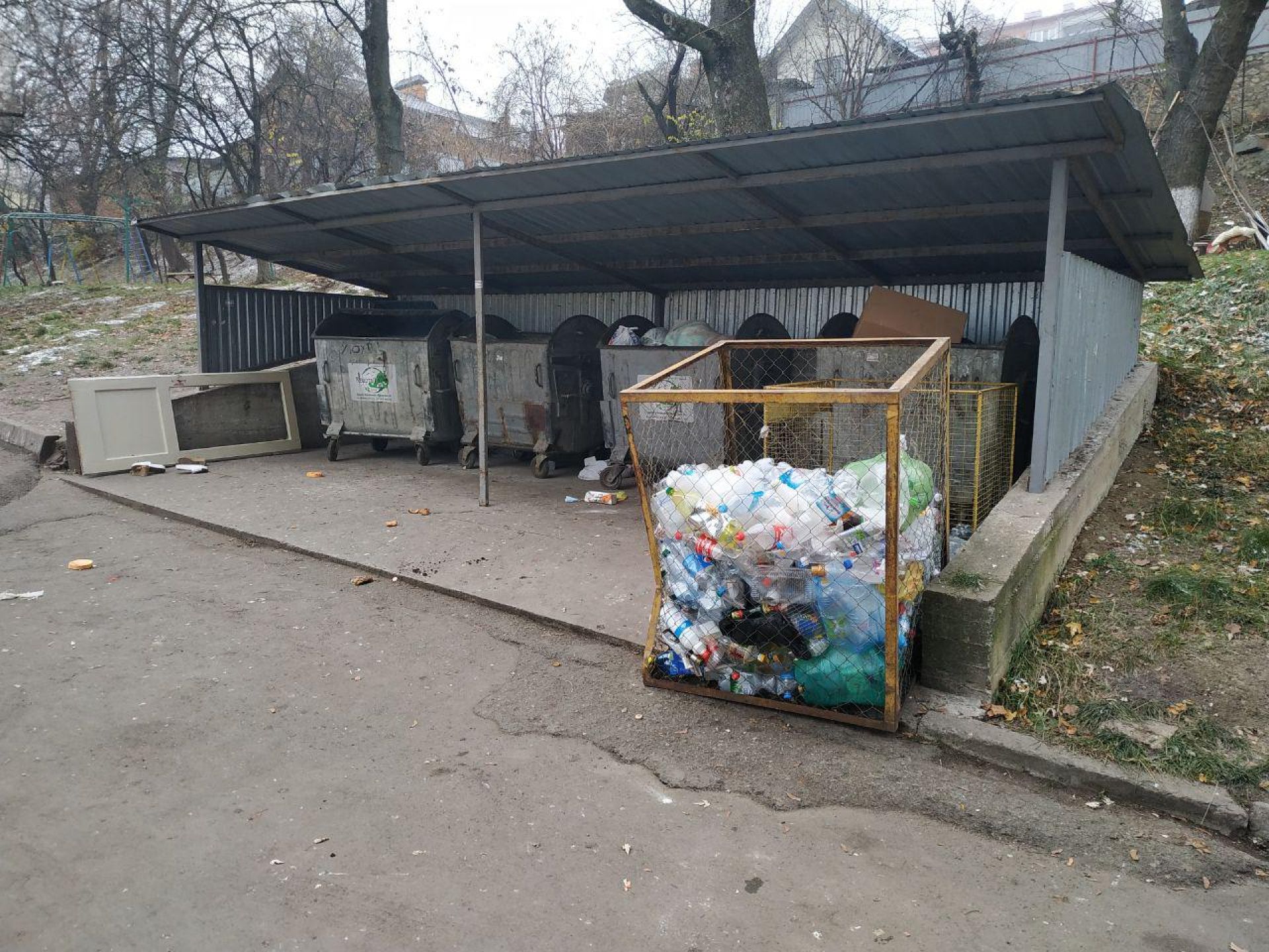 Місце для сміття на вулиці Дмитра Вітовського також обладнали контейнерами для пластику. Щоправда, сортують пластик не всі і дехто викидає його у загальне сміття.