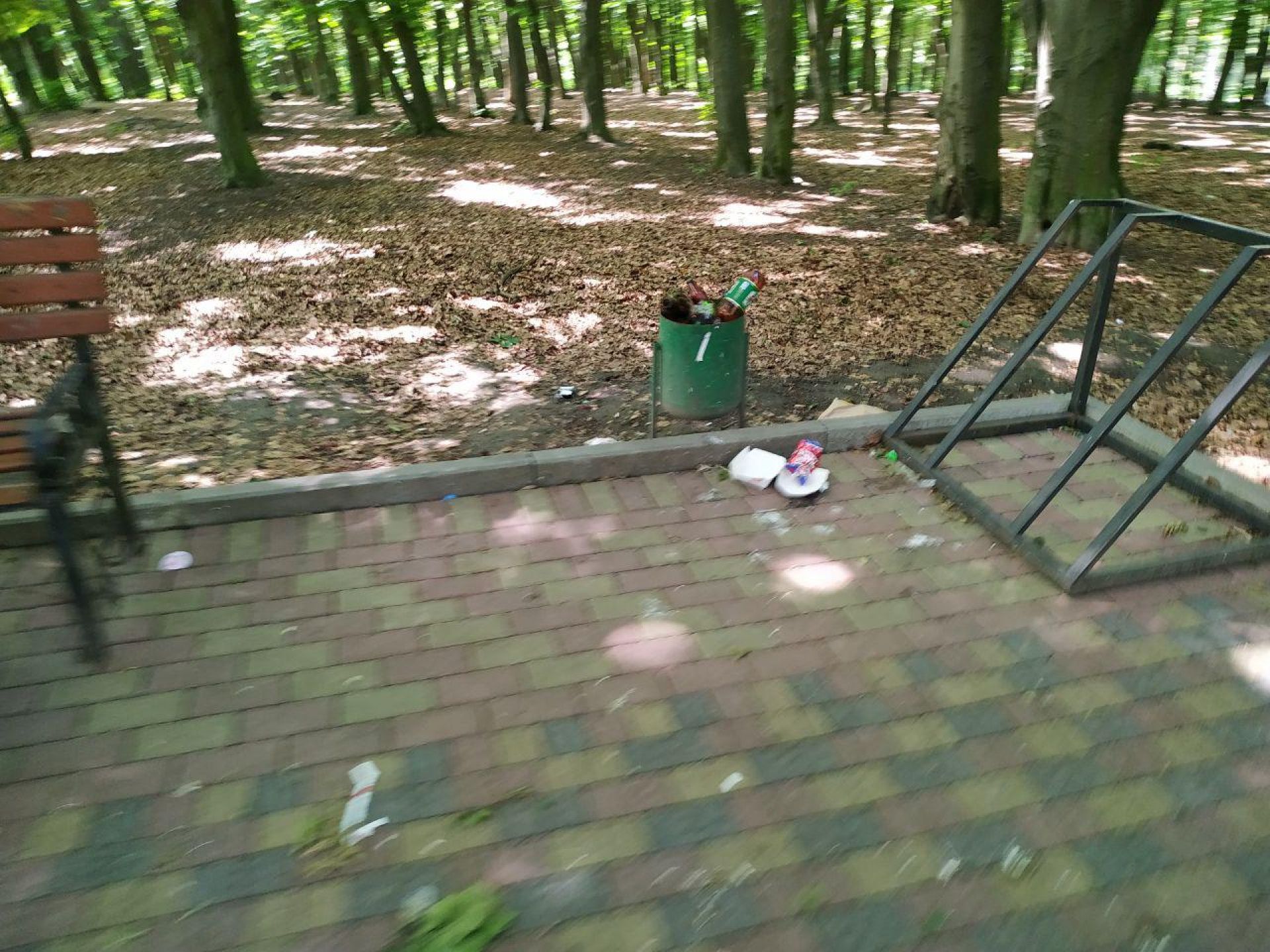 Парк є доволі чистим, але подекуди контейнери є переповненими, а сміття розкидане прямо біля них.