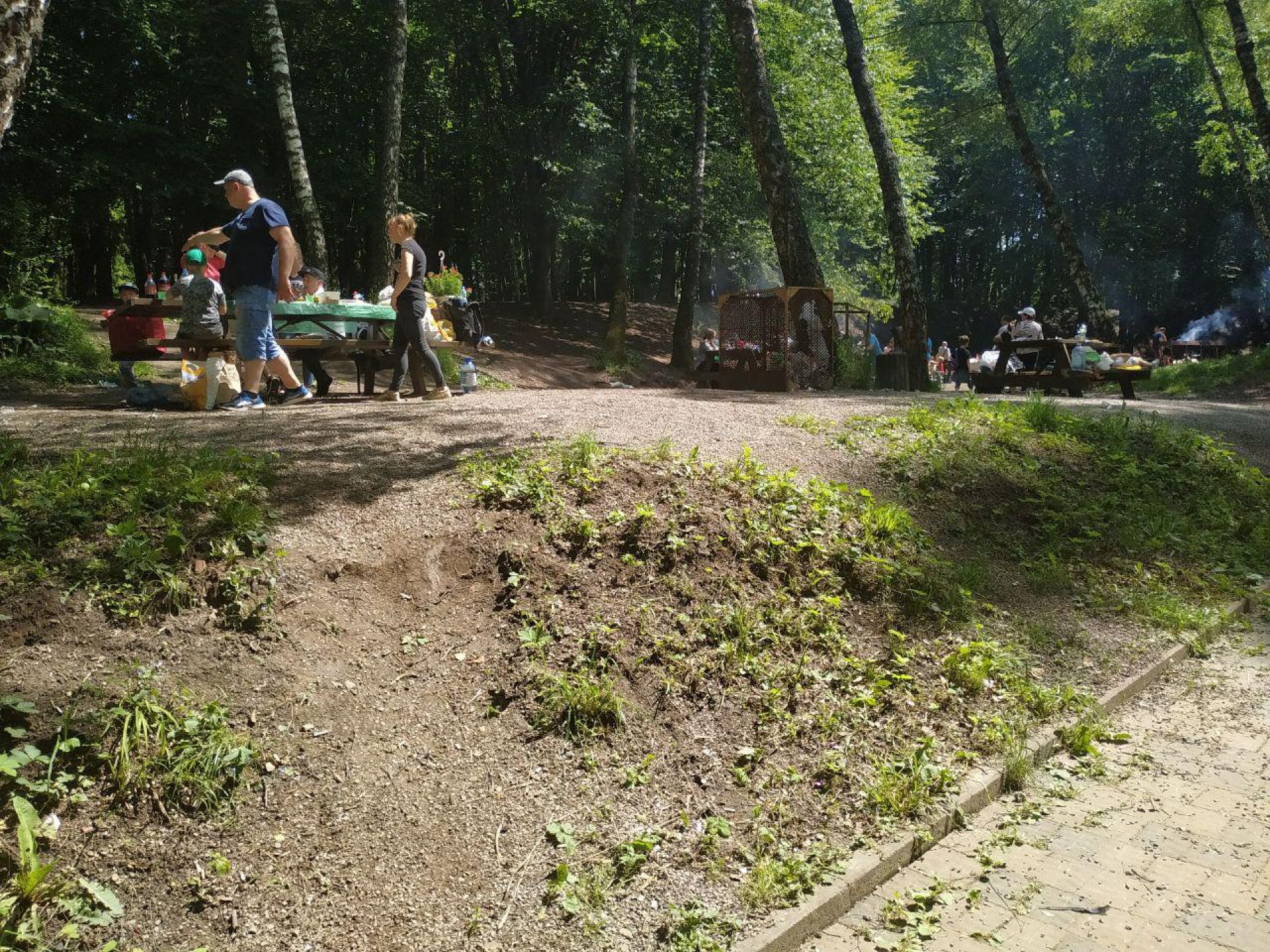 Біля місць відпочинку, де є мангали, вільних столиків годі і знайти. На Зелені свята парк «Здоров'я» став своєрідним місцем паломництва для відпочивальників. Не всі хочуть чекати, поки звільниться столик, тому облаштовують місце на галявинах. Маски в парку носять одиниці.